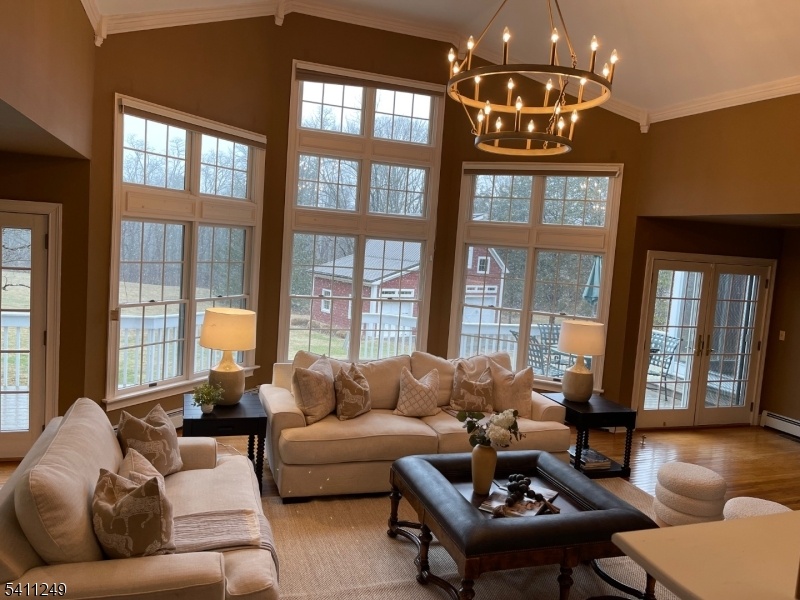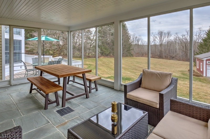 Set upon Hilltop Road in Mendham Borough, this exceptional country property showcases four gently rolling acres with captivating sunset views enjoyed both outdoors and through a dramatic wall of glass.