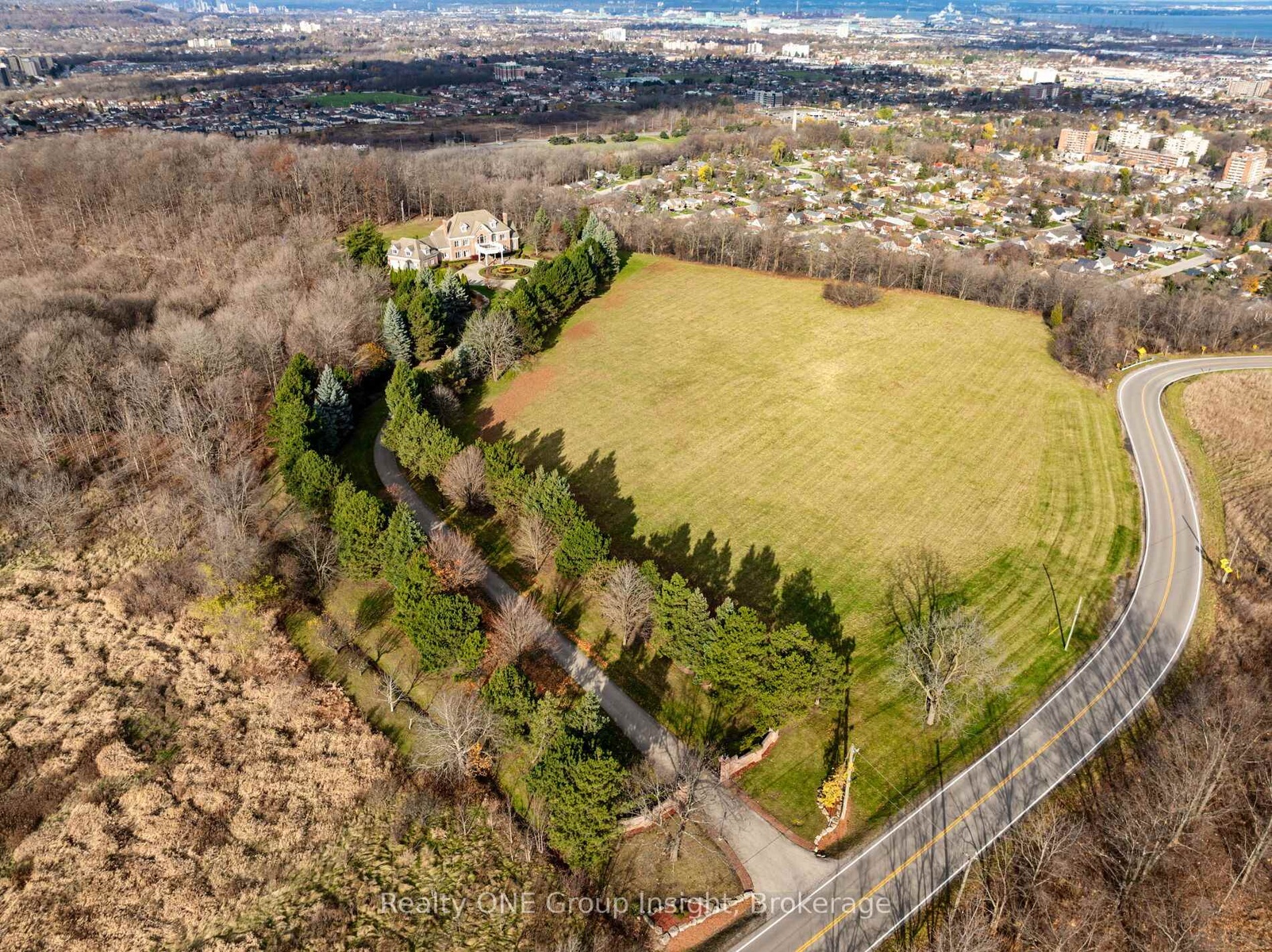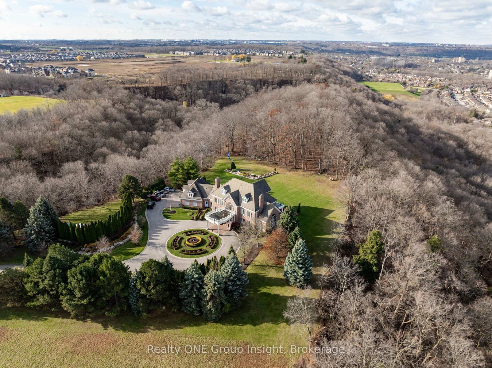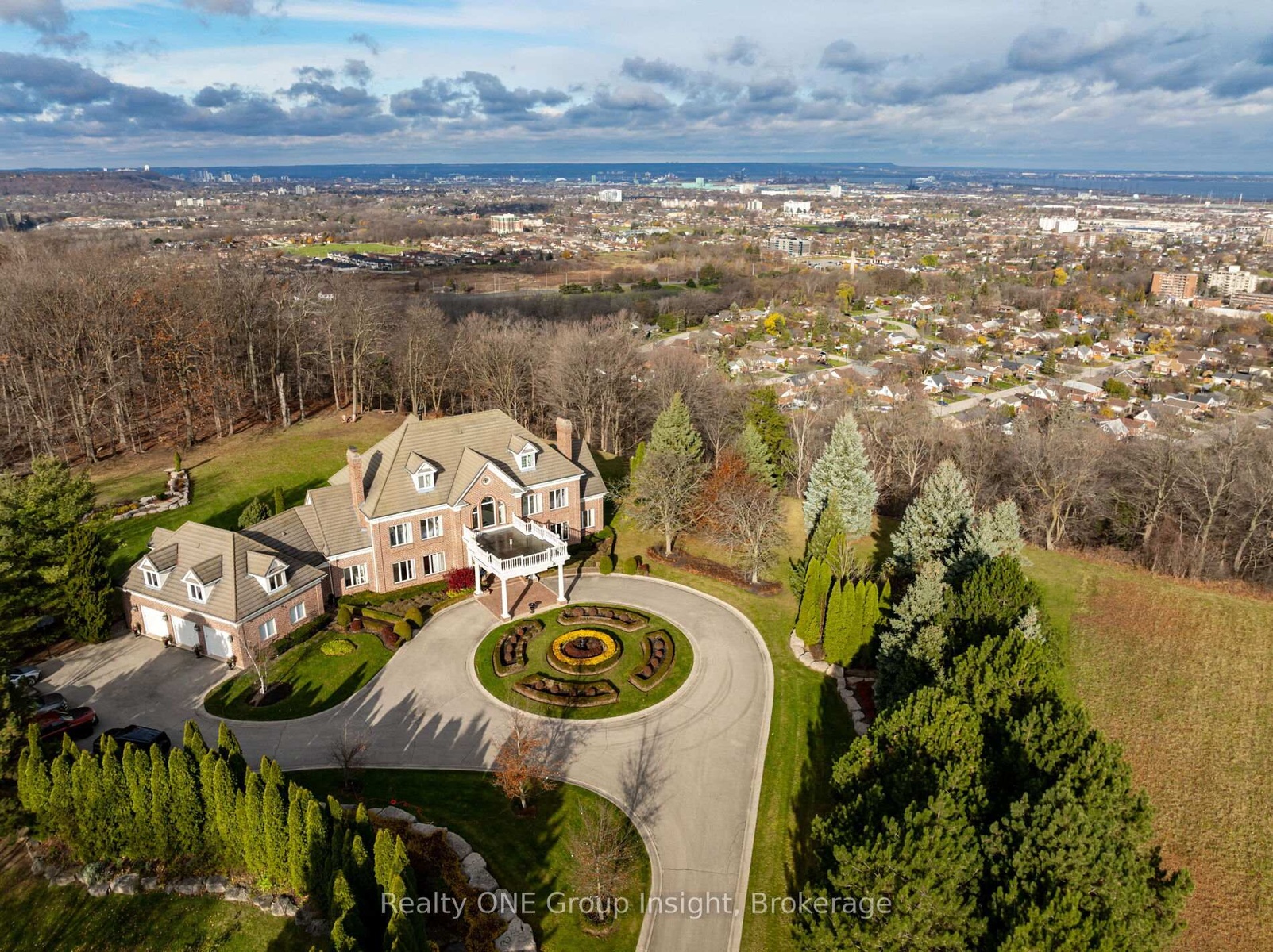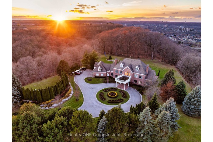 Perched atop the Escarpment and situated on a 16-acre peninsula, this stunning Georgian-style estate offers over 7,000 square feet of above-grade living space. Upon entering through the private gates and driving along the scenic driveway, you'll pass formal gardens before arriving at the impressive Porte Cochere. Stepping through the front doors, you're greeted by dual staircases and soaring 28-foot ceilings, creating an immediate sense of grandeur. The open, flowing floor plan seamlessly connects all formal rooms to the foyer. For professional needs, the oak-paneled office is conveniently located just off the foyer. The modern kitchen is equipped with high-end Thermador and SubZero appliances, perfect for both everyday meals and entertaining. At the rear of the home, the family area features expansive windows that offer breathtaking city views year-round. The luxurious primary suite includes a spa-like ensuite designed to indulge the homeowner, and a large balcony provides an uninterrupted view of the city. In addition to the Primary Suite, the second floor offers three additional spacious bedrooms, each with its own ensuite bathroom. Above the garage, the bonus room offers an ideal space for a teen retreat or in-law suite. This self-contained area includes a 3-piece ensuite and a kitchenette. The lower level features a gym and sauna, providing the perfect space to meet your fitness and relaxation needs. There's also a vast unfinished area providing an open canvas for your personal preferences. For a comprehensive list of features, please get in touch today.