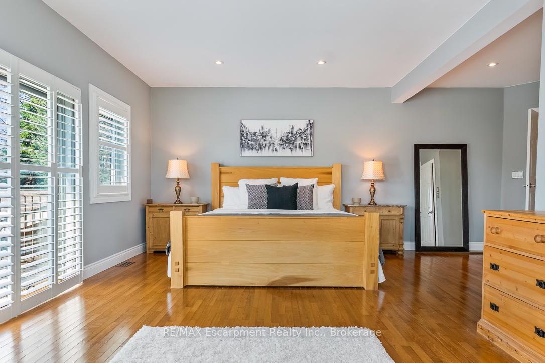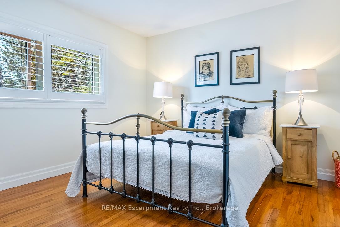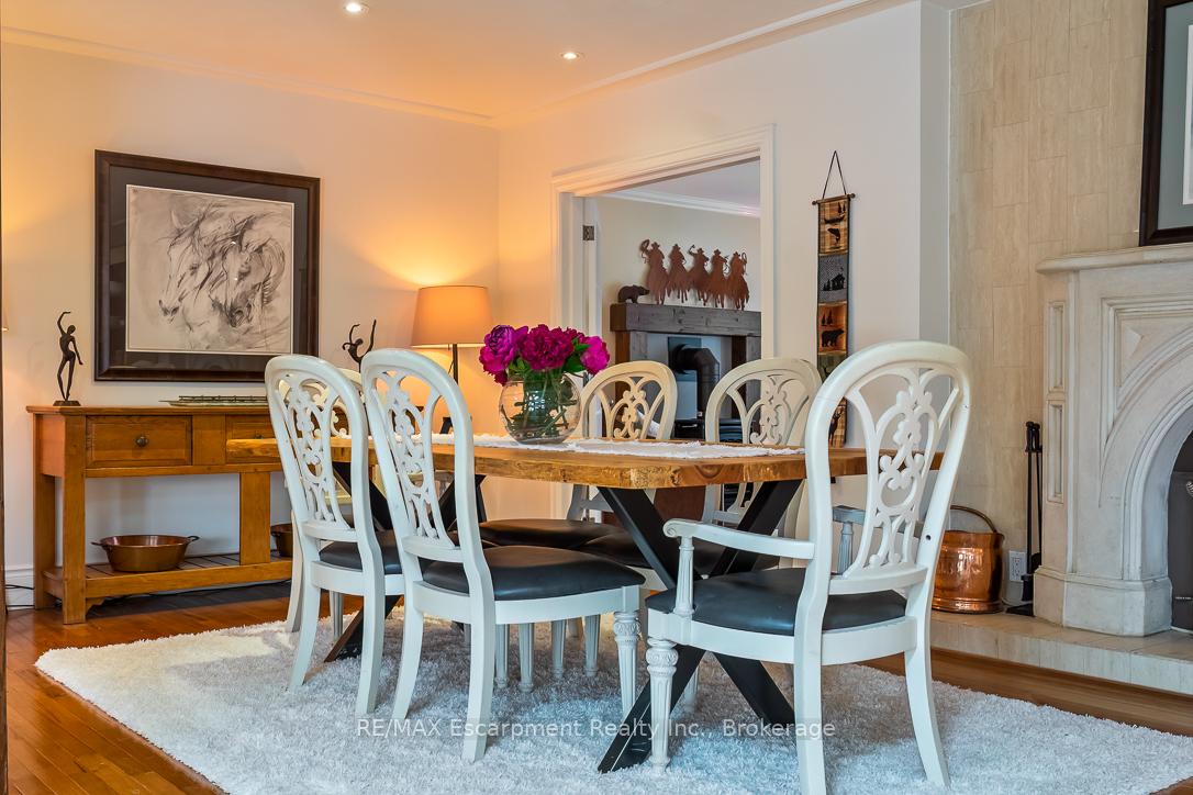 Warm, serene, and inviting, this English farmhouse-inspired residence sits on an expansive 0.42-acre corner lot, offering a rare blend of character, privacy, and natural beauty. The impressive frontage and side yard create a true estate-like presence, with generous outdoor space on all sides of the home. Inside, a double-height foyer, gleaming hardwood floors, and an airy sense of volume set the tone for the rest of the residence. To one side, an intimate living room provides a refined setting for quiet conversation or reading, while on the other, a substantial main-floor study with rich architectural details is ideal as a home office, library, or music room. Beyond these formal spaces, the home opens into a relaxed, open-concept layout designed for modern living and effortless entertaining. A sunken family room anchors the informal wing and flows into a welcoming dining room highlighted by a wood-burning fireplace that adds warmth and ambiance to gatherings with family and friends. At the heart of the home, the kitchen is bathed in natural light from overhead skylights. Stainless steel appliances, sleek countertops, generous cabinetry, and warm accents create a space that is both highly functional and inviting. Thoughtfully designed with cozy elegance, the home offers four bedrooms, three full bathrooms, and two half bathrooms. Large windows frame views of manicured corner-lot gardens and offer peek-a-boo glimpses of the lake, giving the property a tranquil, retreat-like feel. Outside, beautifully landscaped grounds wrap the home with multiple outdoor zones, including a hot tub, Scandinavian-style sauna, and enclosed swimming pool, creating a resort-like experience in your own backyard. This exceptional property offers convenient access to major highways, lakeside walking trails, and a highly regarded school catchment area, delivering an elevated lifestyle in one of Oakville's most sought-after neighbourhoods.