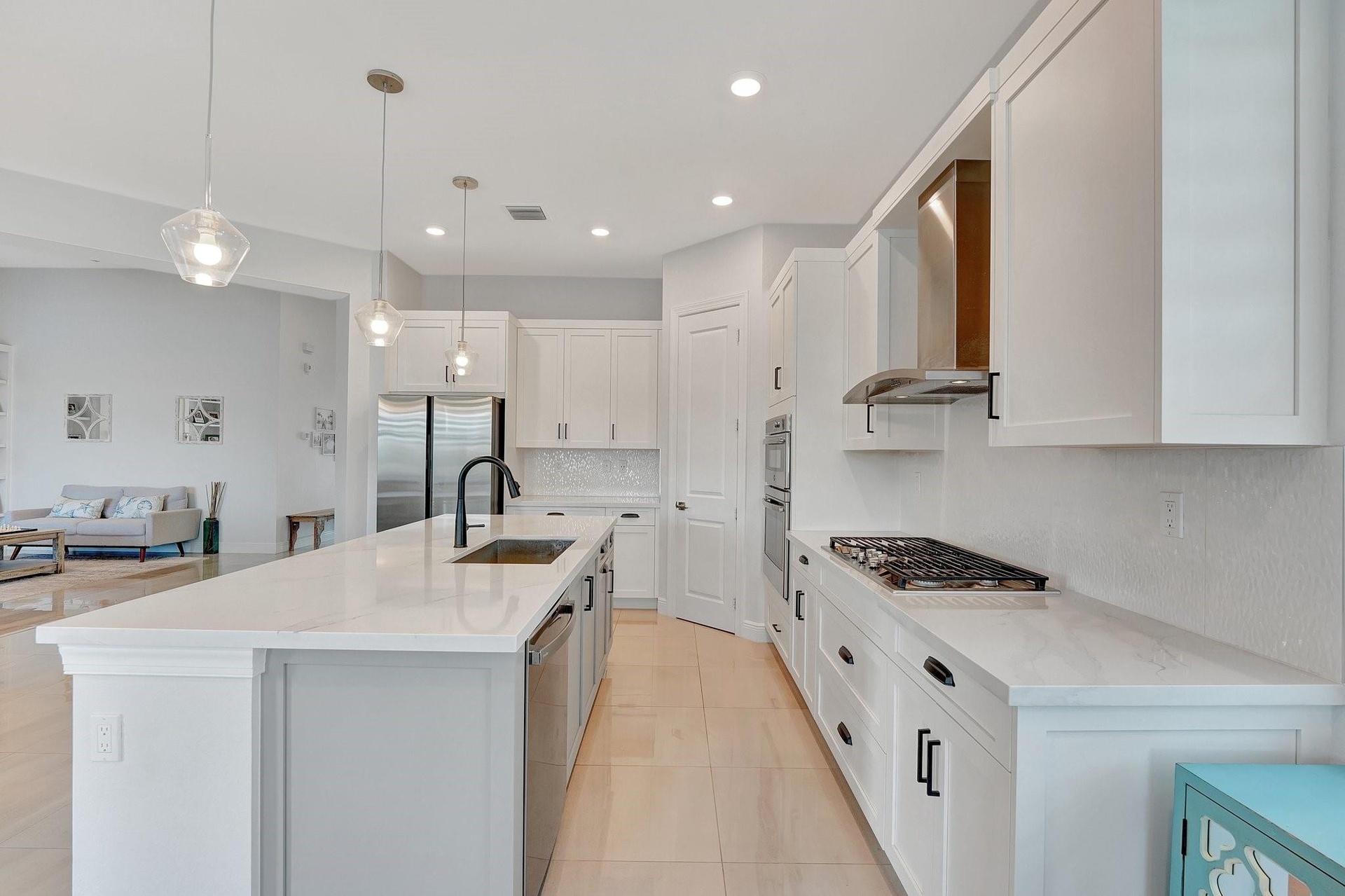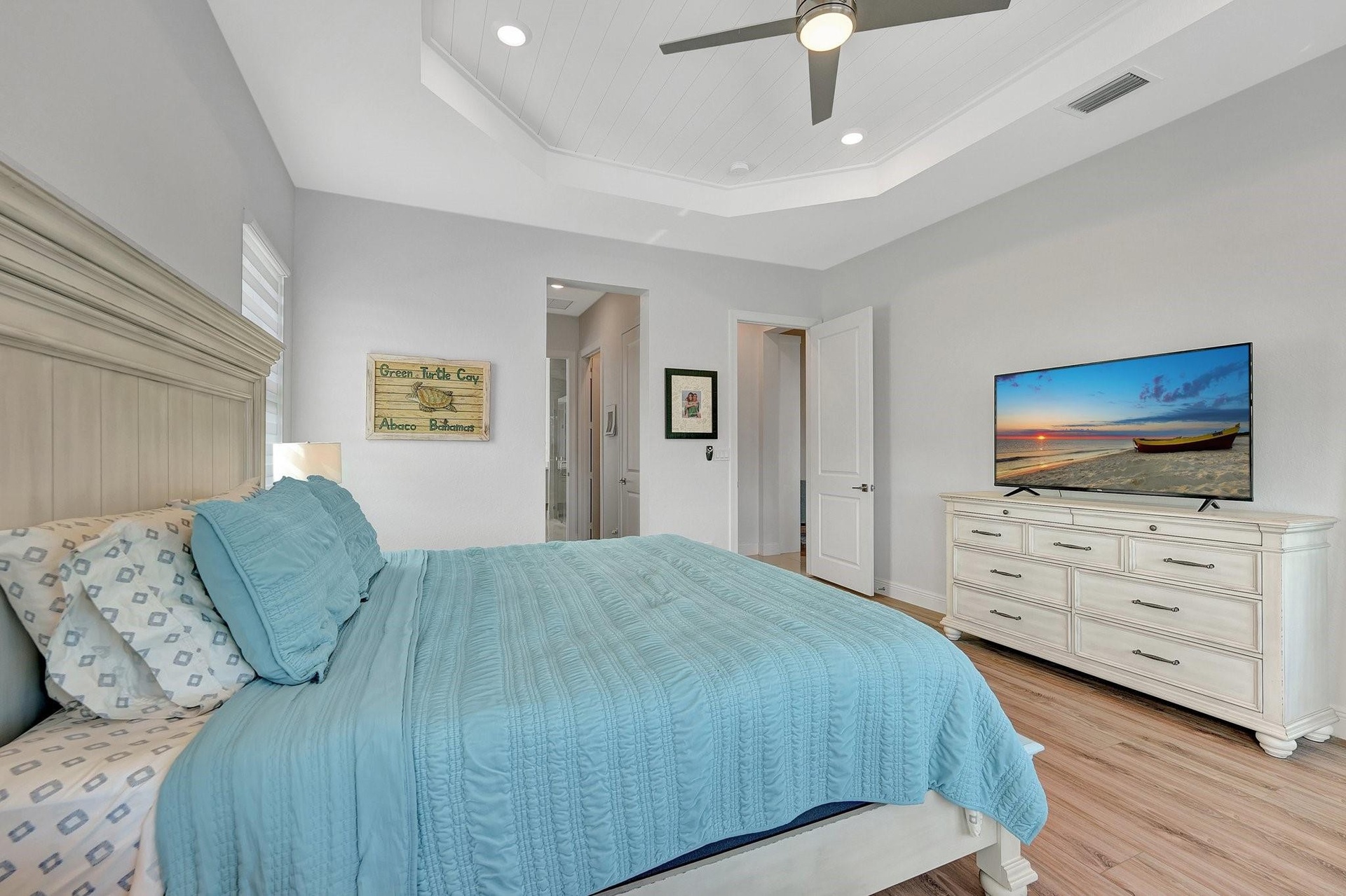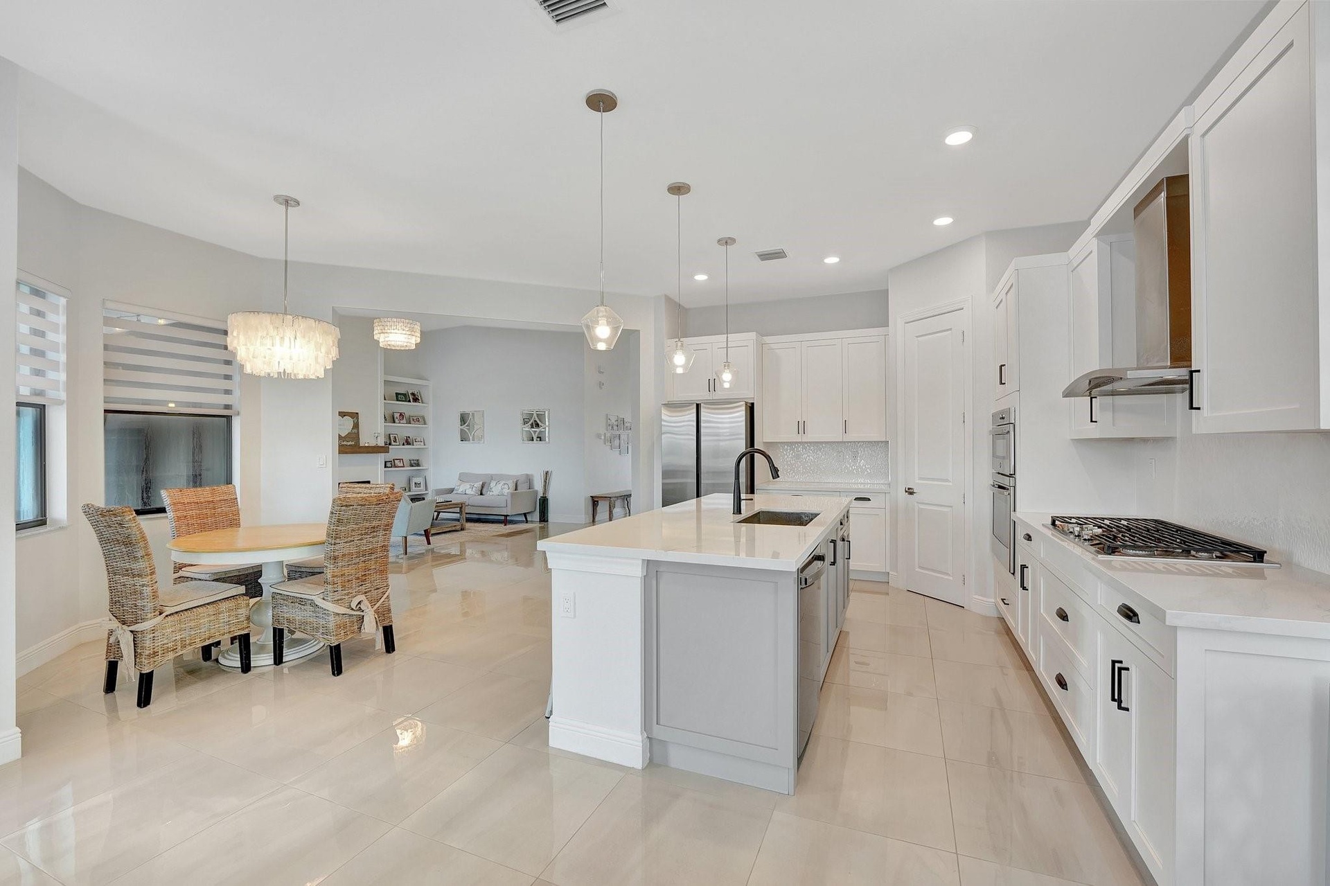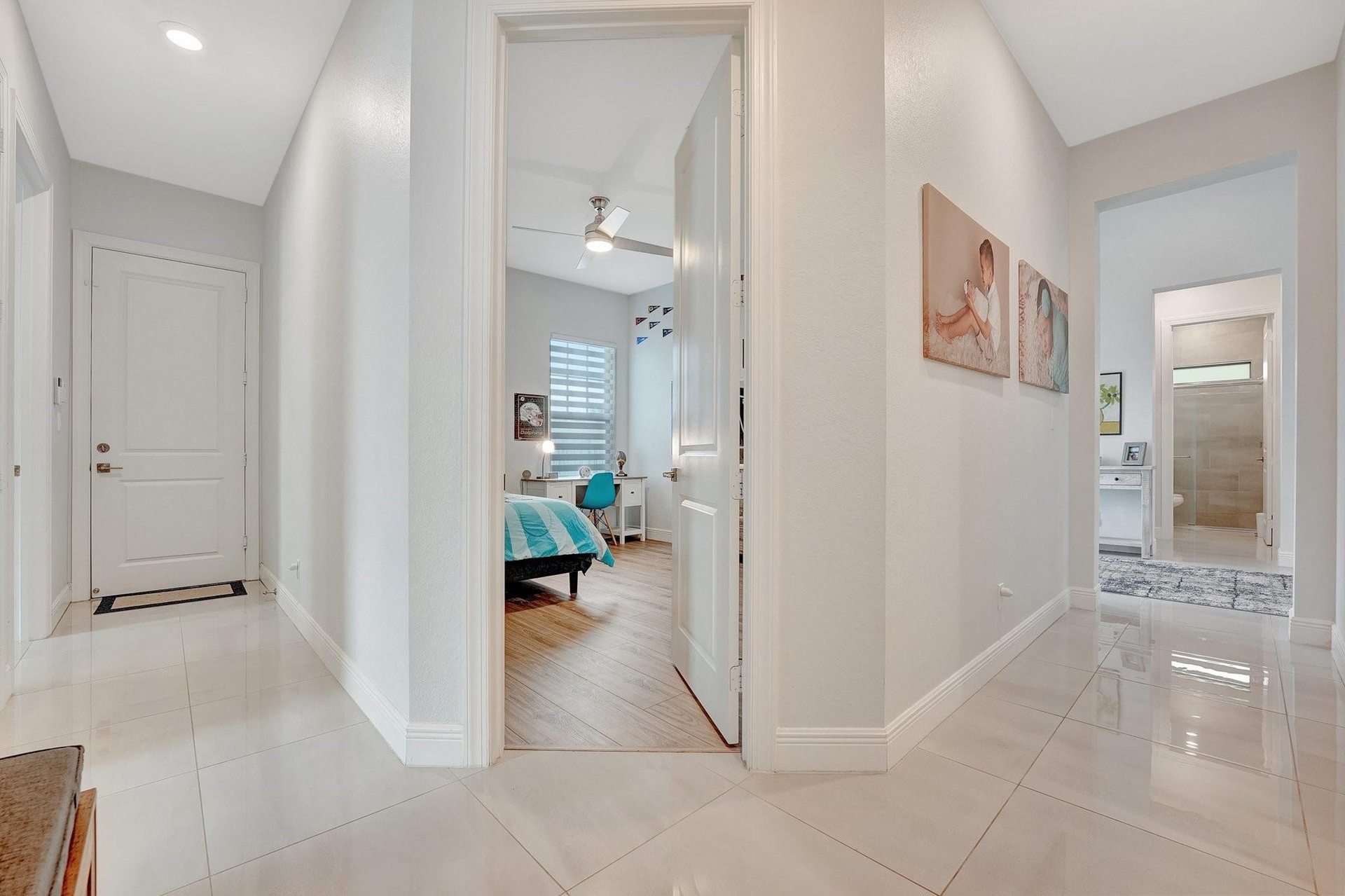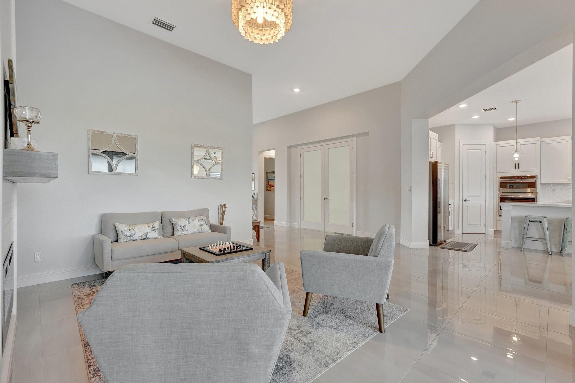 Spectacular 1-story Hibiscus model in Parkland Bay! This waterfront pool home features 4 bedrooms plus an office, and 3 full bathrooms, situated on a family-friendly cul-de-sac with an expansive 11,603 sq. ft. pie-shaped lot. The Hibiscus model masterfully balances spaciousness and comfort, combining elegance with relaxed living. Its open-concept floorplan promotes seamless flow between spaces, allowing natural light to fill the home. Enjoy the large screened-in covered terrace, perfect for experiencing South Florida's outdoor lifestyle, rain or shine. Additional highlights include shiplap coffered ceilings throughout, custom closets, a shiplap electric fireplace, and new luxury vinyl plank flooring in all bedrooms. This home is a perfect blend of