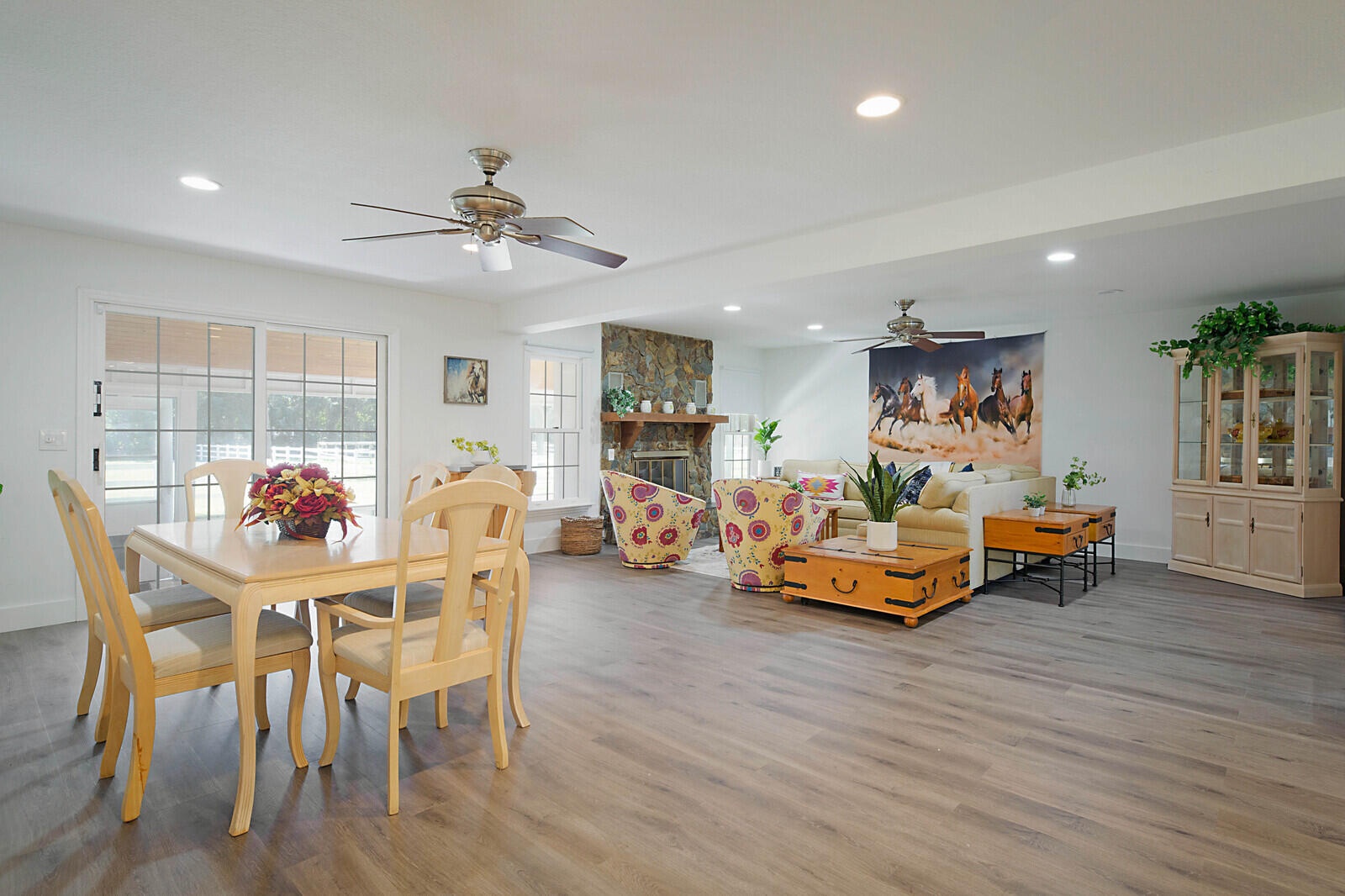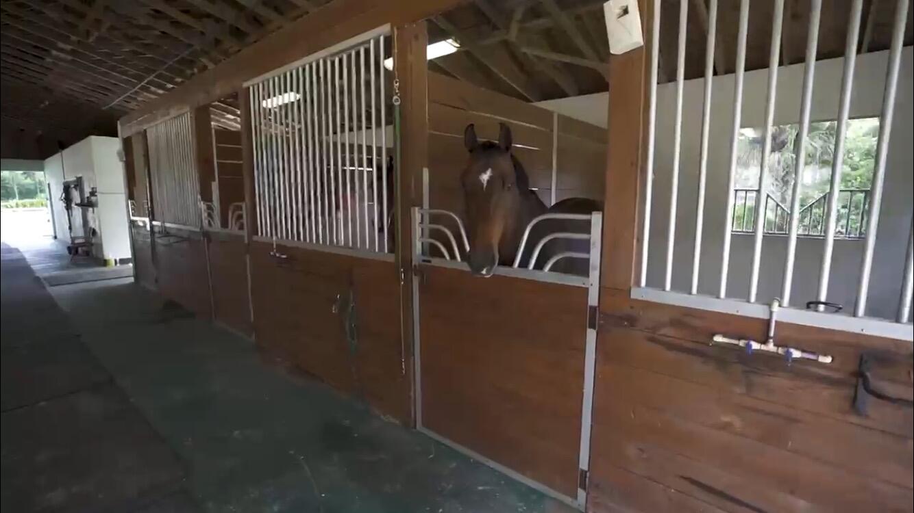 Prime 5-acre equestrian property in Loxahatchee, minutes to Wellington International Horse Show and the Polo Grounds. Fully fenced with 3-board white PVC fencing, the farm features 5 paddocks, a 250' x 125' irrigated riding arena, and 13 stalls in two barns. The main 8-stall CBS barn includes rider's lounge/grooms quarters, tack room, feed room, laundry and baths, plus a 5-stall barn behind the home. The renovated two-story home offers 4+ bedrooms plus 2 extra rooms, impact windows and sliders, all new board and battensiding, new A/C, vinyl flooring and marble baths. Enjoy a screened patio and wood-burning fireplace. Located on newly paved Casey Rd, close to Wellington shopping, dining and PBI Airport. All measurements are approximate and subject to error.