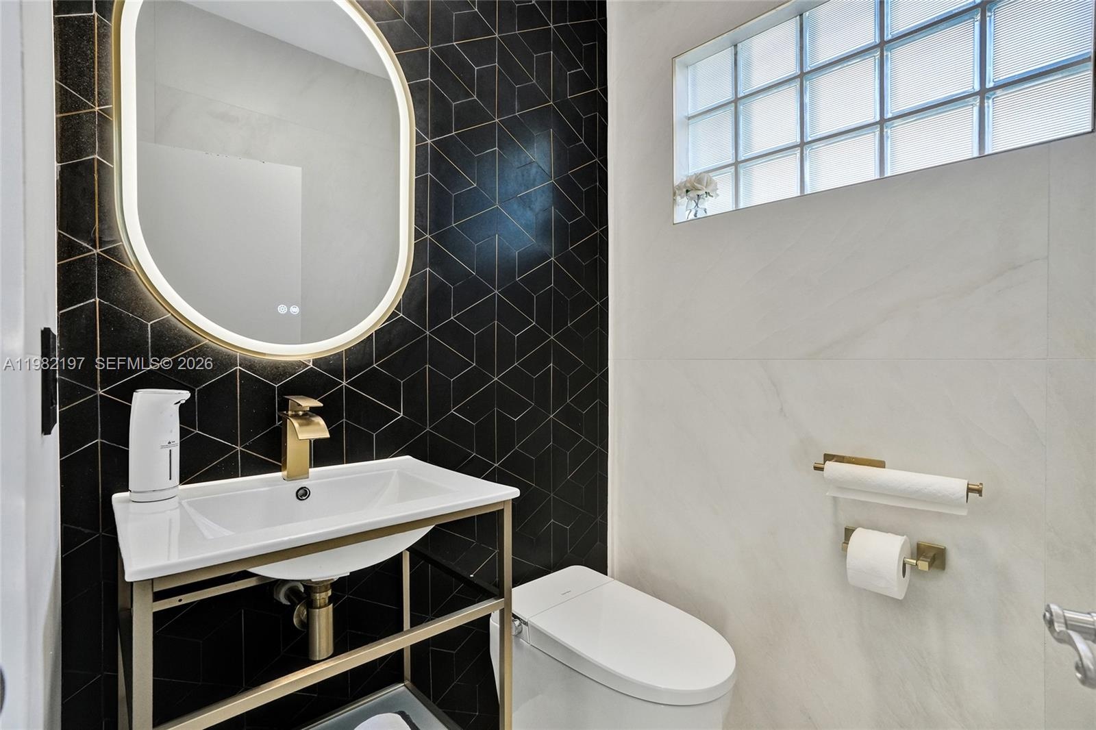 The updated kitchen features granite countertops and a stylish backsplash, while the modernized bathrooms include smart toilets and sleek LED mirrors. Major upgrades include a BRAND NEW ROOF, new HVAC system, hurricane-rated accordion shutters on both floors.