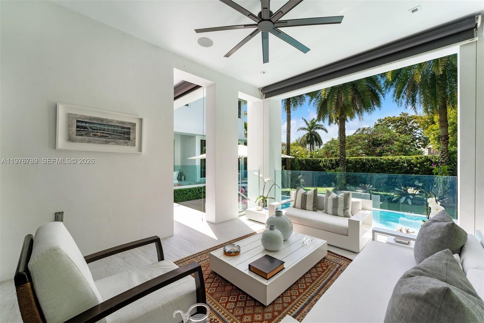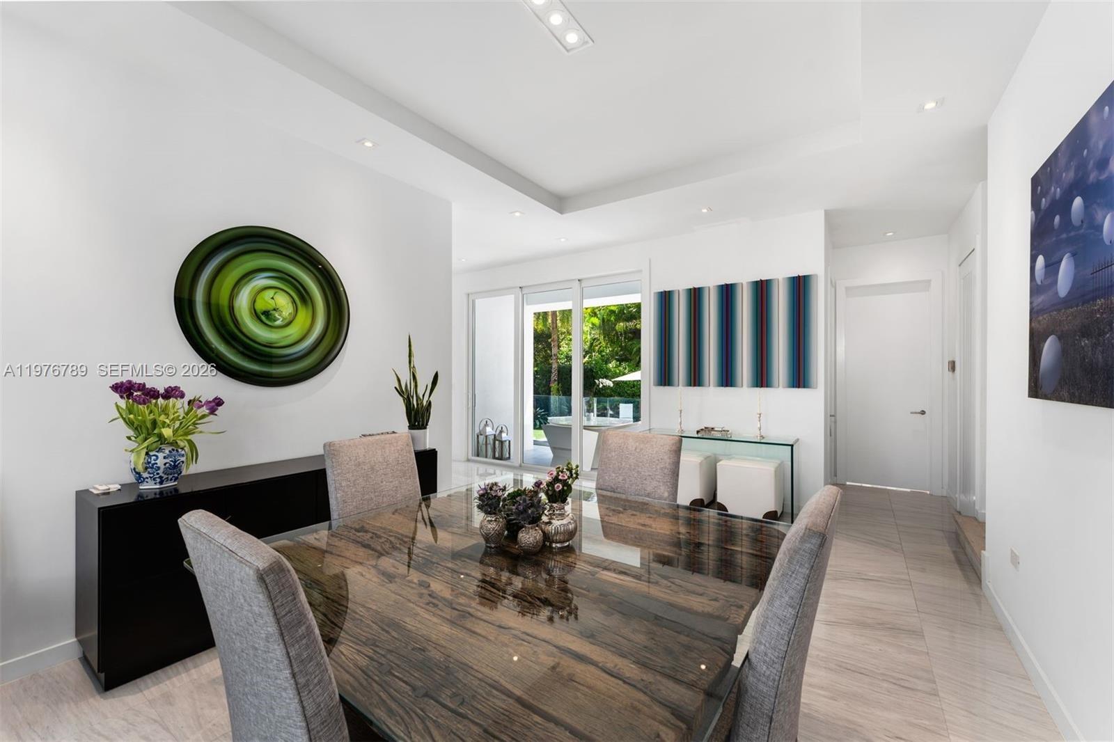 Refined 3-story modern contemporary residence on an oversized, beautifully landscaped corner lot along Key Biscayne’s prestigious Harbor Drive, just 15 minutes from the Brickell Financial District, and featuring a spectacular rooftop terrace. This 5,328 total SF home offers 6 bedrooms, 4 full baths, and 3 half baths, thoughtfully designed for both elegant living and effortless entertaining. A grand entry with a stylish pivot door welcomes you into light-filled interiors with soaring ceilings, marble floors in the social areas, and wire-brushed white oak flooring upstairs. Panoramic impact windows and multiple terraces create seamless indoor-outdoor flow. The resort-style backyard features a heated saltwater pool with waterfall and inviting lounge areas. The Mia Cucina chef’s kitchen anchors the main living space with a marble waterfall island, custom cabinetry, and premium appliances including Wolf induction cooktop/ovens, Sub-Zero refrigeration, and Asko dishwasher. Smart home technology includes Savant automation, Lutron lighting, whole-home audio, and integrated security. The expansive primary suite offers a sitting area, private balcony, covered terrace, beverage station, custom walk-in closets, and a spa-inspired marble bath. A dedicated office, upstairs family room, staff quarters, and laundry room add flexibility. The rooftop entertainment deck includes a summer kitchen with Wolf grill, Sub-Zero refrigeration, lounge areas, and a half bath—ideal for sunset gatherings.