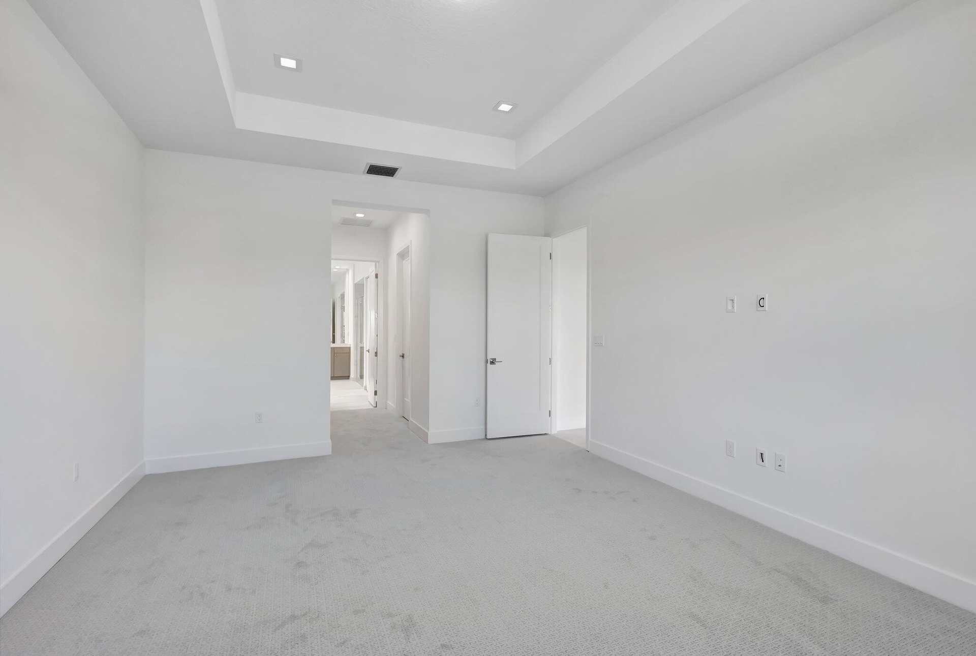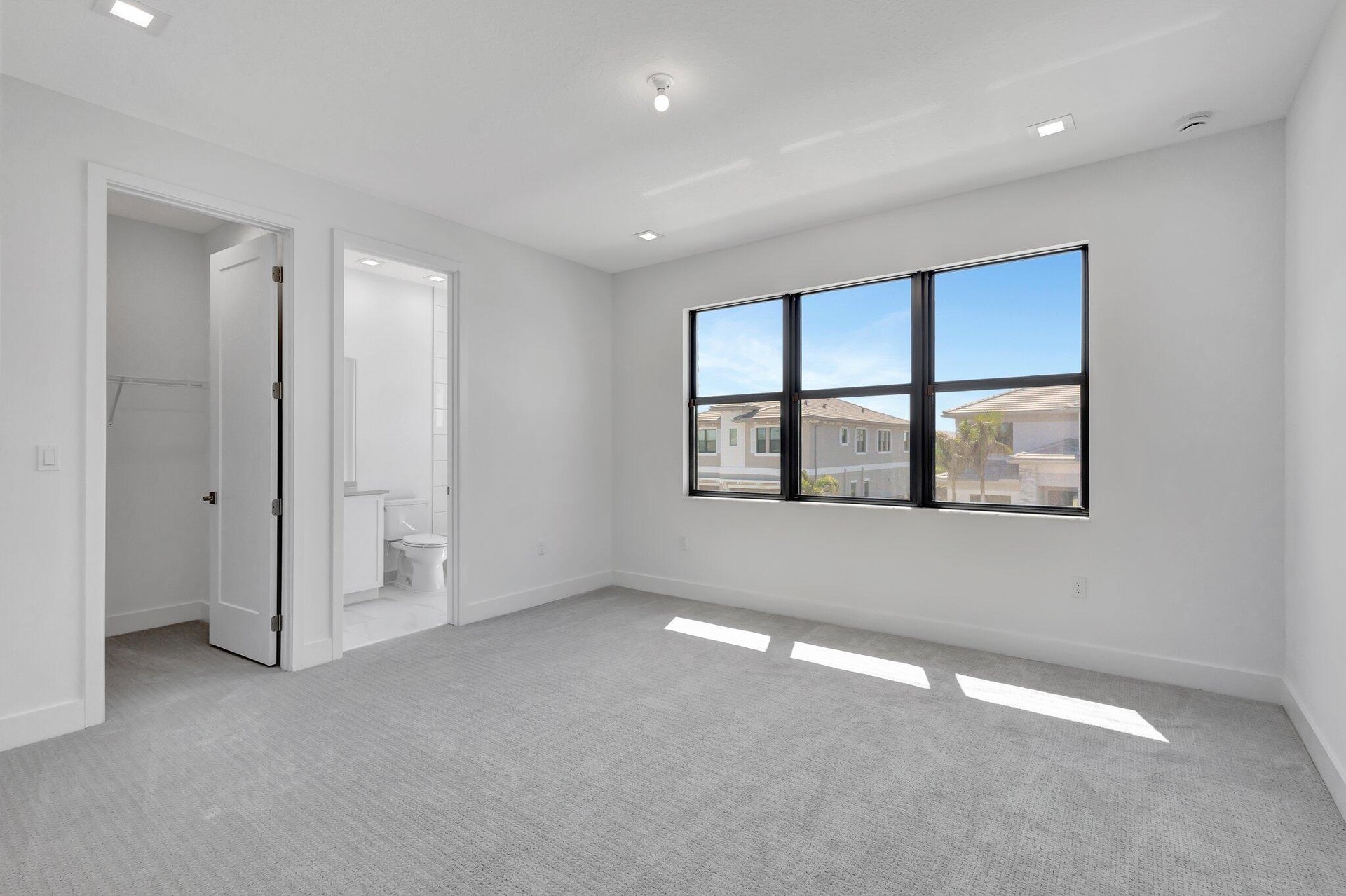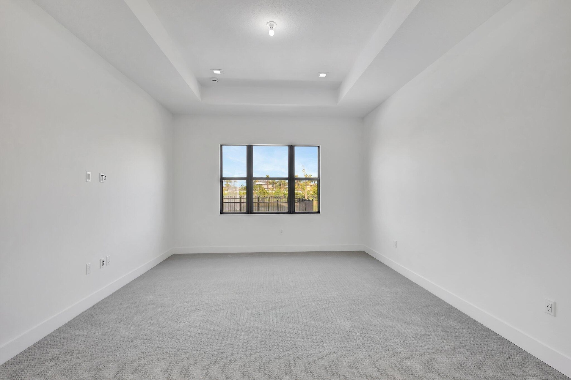This residence in Avenir features a modern layout with open living spaces and lake views.