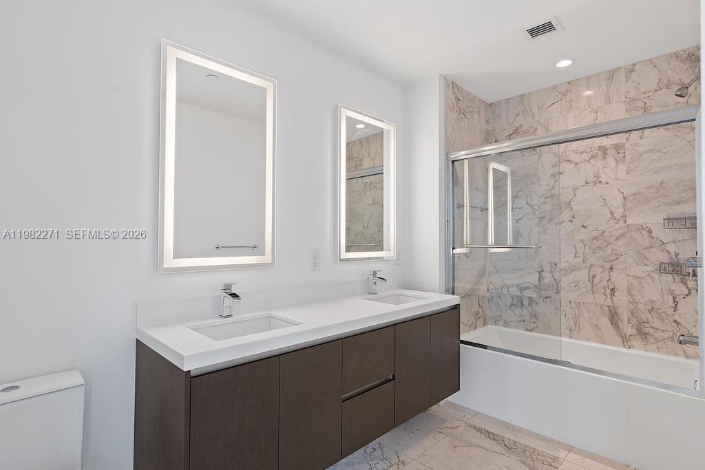 It time to BUY! Best value in the building, Vacant and ready for immediate occupancy for new owners or tenants. Price firm. Hi-quality Spanish blinds installed! Built-in closets installed for the new owners' benefit! WiFi+TV included. Bathtub with glass sliding door. 1 Bed + DEN /One full plus one half Baths @ PARAMOUNT MIAMI WORLD CENTER. PRIVATE Elevator to Unit, White ceramic floors throughout, balcony with tile, Sunset views of Miami, 2 Car spots (1 Valet & 1 Assigned spot), Internet and Cable included. Steps away from Brightline Train Station, AA Arena, Bayside, Museums, Etc. The building was nominated for the Most Amenities in the World, featuring a basketball court, 5 pools, a Spa, a Gym with a boxing area, BBQ kitchen, Virtual Golf, a Recording Studio, Racquetball, a Yoga Studio, and a kids' Play Area. City Observatory to view stars with telescopes, Tennis courts, Jacuzzi, 53rd floor overlooking the city.