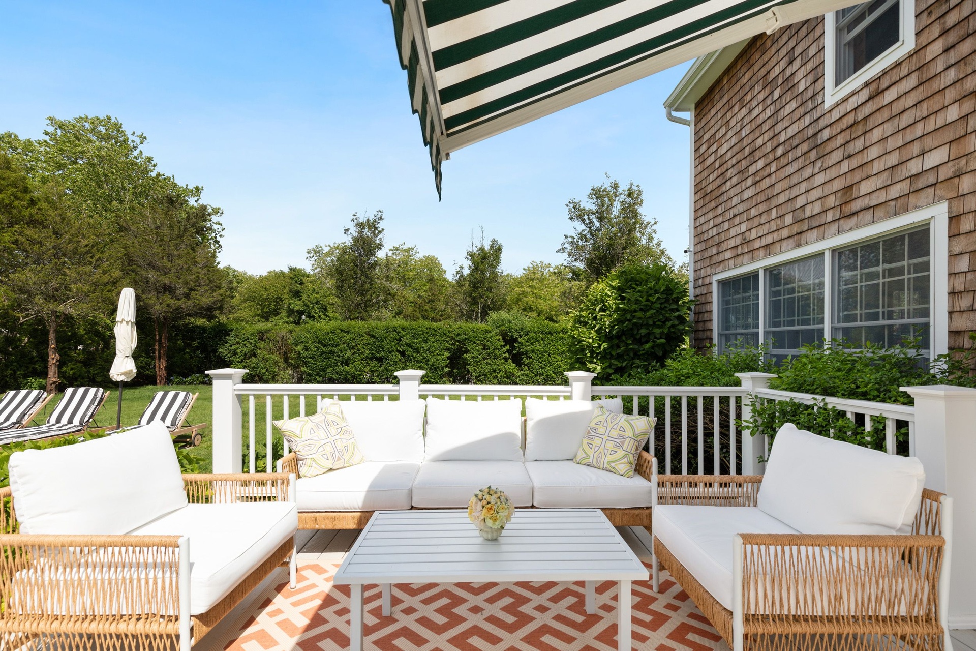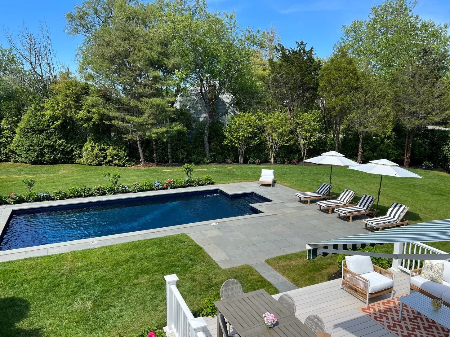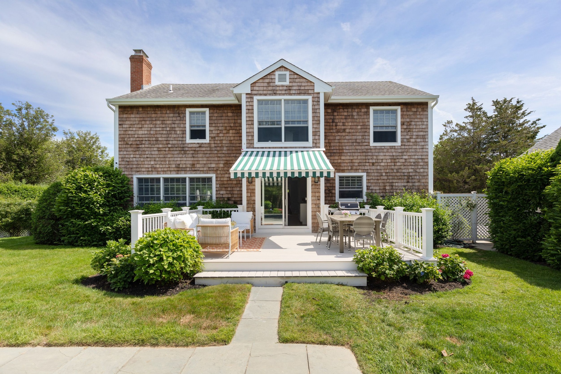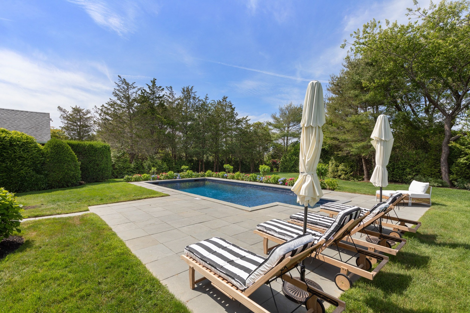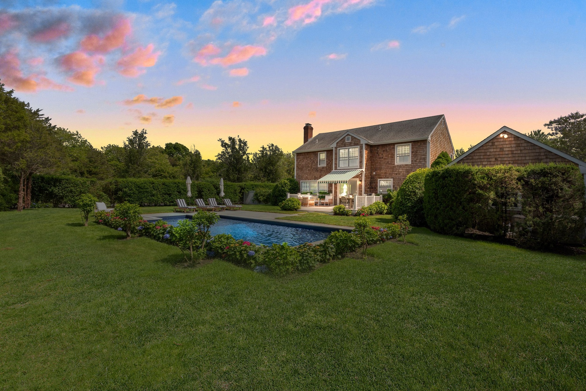 Avail July 11-31 Southampton Village Five bedroom pristine rental, this immaculate, perfectly maintained approximately 2,400 sq.ft., 5 bedroom 4 bath cedar shake home with a heated saltwater pool bordering village owned land affording a quiet setting. The expansive windows have views of the lush landscaping from all of the living areas. The first floor includes beautiful hardwood floors, a gracious 2 story foyer, bright and cheery kitchen, cozy den, dining area, open living room with fireplace, a powder room and laundry/mud room. On the second floor, all of the bedrooms have wonderful light and the primary suite has vaulted ceilings plus a beautiful ensuite bathroom. In addition, there is full lower level and a detached one car garage. Outside, on the over 1/2 acre of well landscaped grounds which include flowering hydrangeas and mature privet hedge, enjoy a cocktail on the terrace, take a swim in the heated saltwater pool, lounge on the bluestone terrace in your lush setting or if you want to leave this oasis, find yourself super close to top restaurants, the best shopping, and of course the world renowned ocean beaches, in this highly convenient Southampton Village location. Best Village Home in this price range.