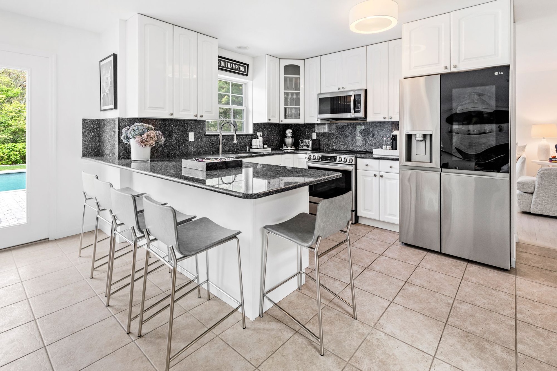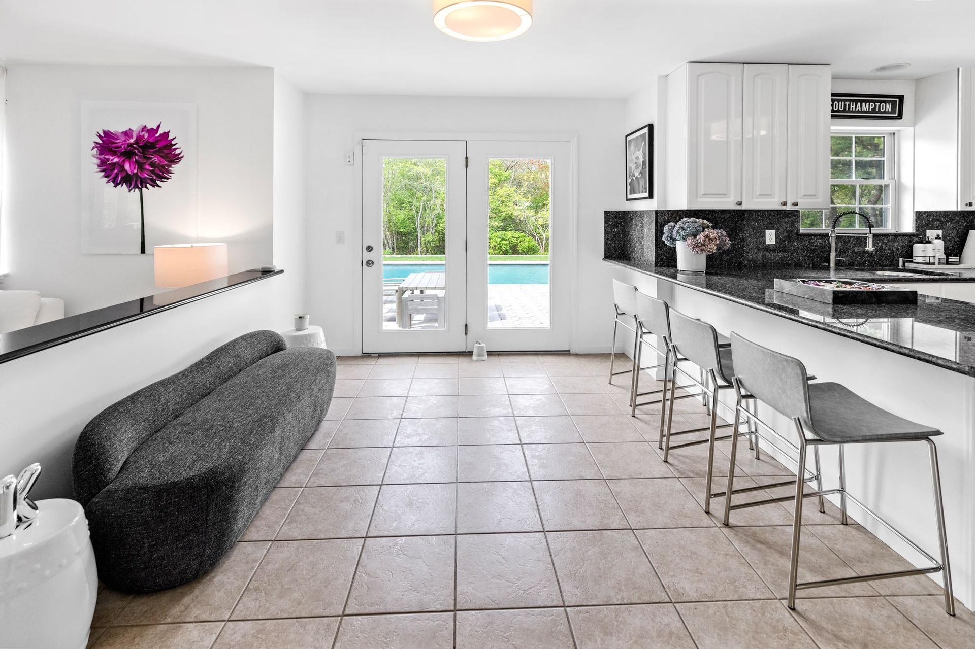 Blending contemporary elegance with classic Hamptons charm, this exceptional home is just minutes from Southampton’s renowned shopping, dining, beaches, and cultural attractions—yet feels worlds away in its peaceful, secluded setting.