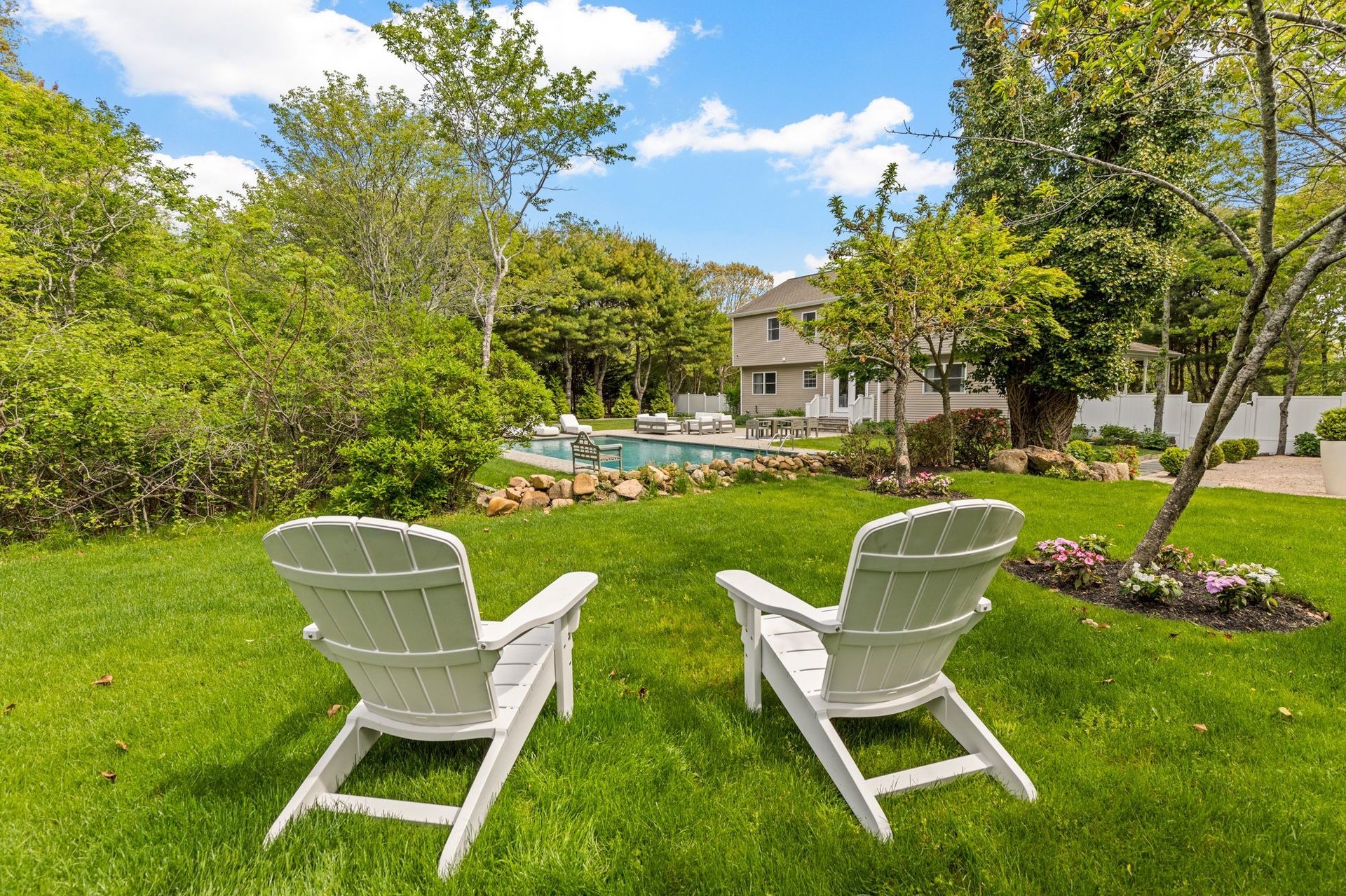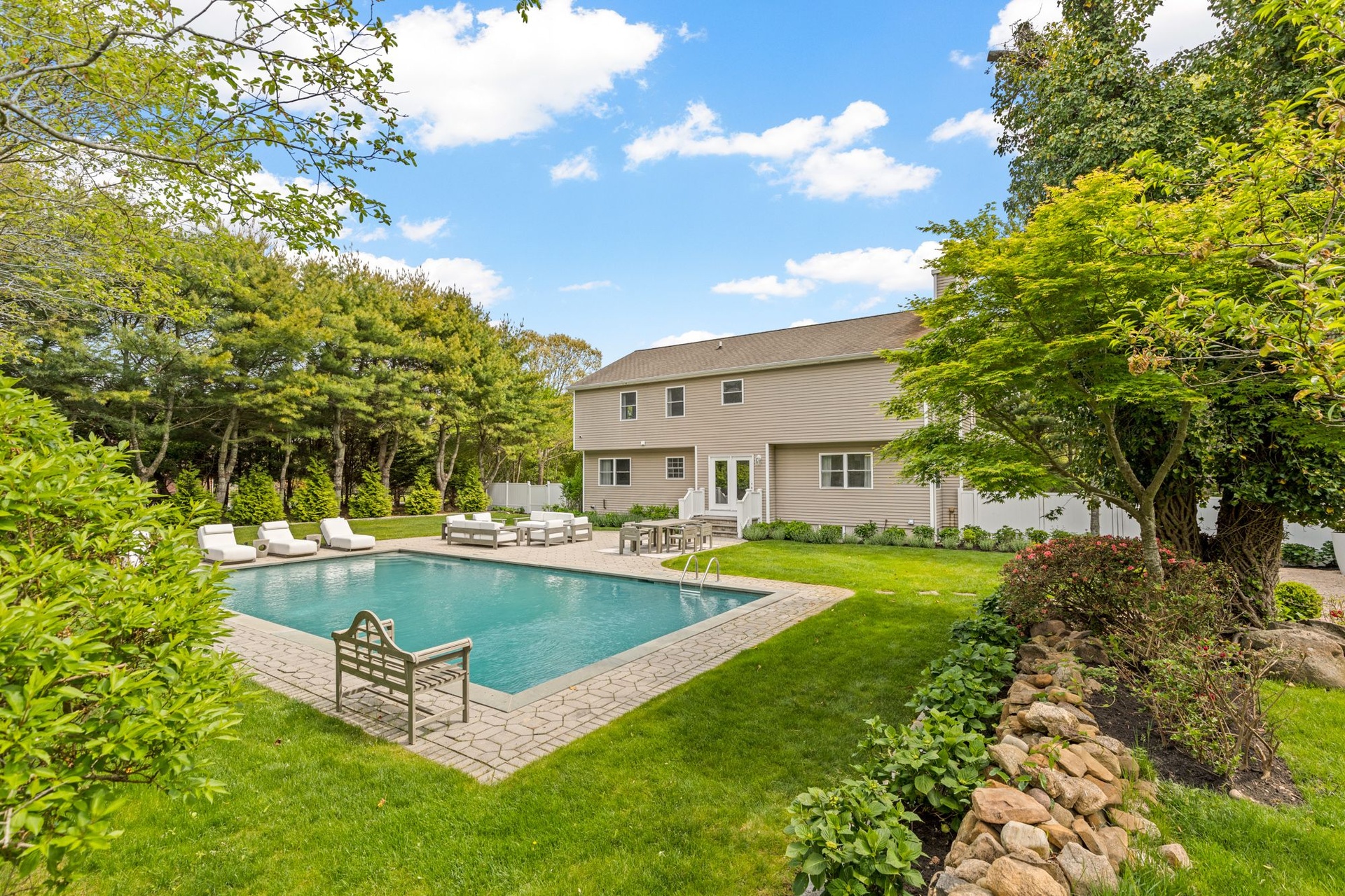 Chic Southampton Summer Retreat with Pool on Private Flag Lot