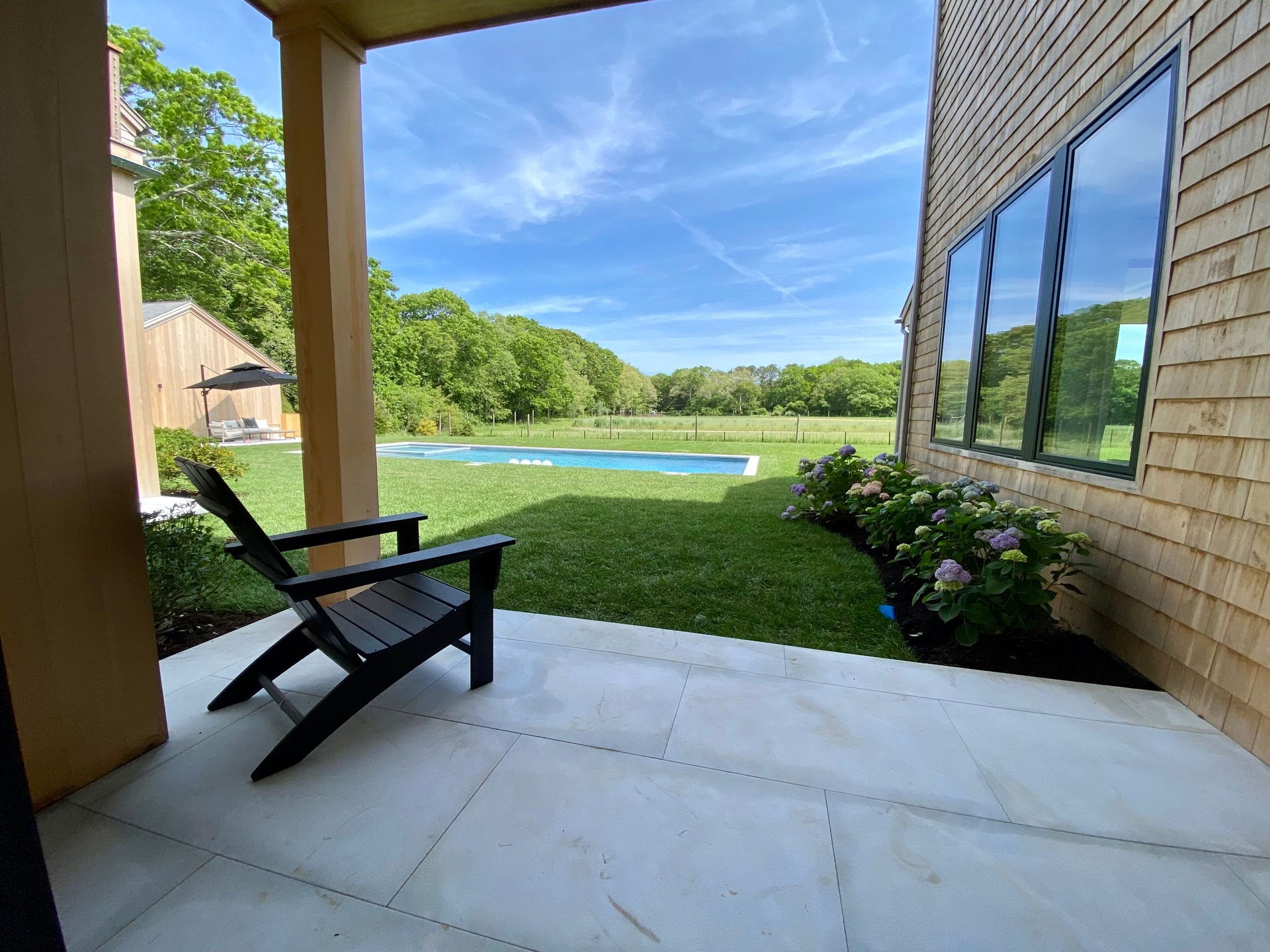Brand new construction with all the latest design features this 6 bedrooms 7.5 bathrooms home is immaculate in build, design, and function. Sited on .82 acres in the perfect setting with open field vistas. Every room is completed and furnished to perfection. Exterior features include the garage (supplied with electric car charger), outdoor shower, inground gunite pool and spa, spacious patio areas, and ample room for outdoor activities, and entertaining. Interior features include large living room, dining room, spacious kitchen with state of the art appliances, and a bonus room that can be used in a multitude of ways--from office to meditation room In addition there is a gym, wine room, and bedroom on the lower level of the home. Just minutes away from the village and ocean beaches
