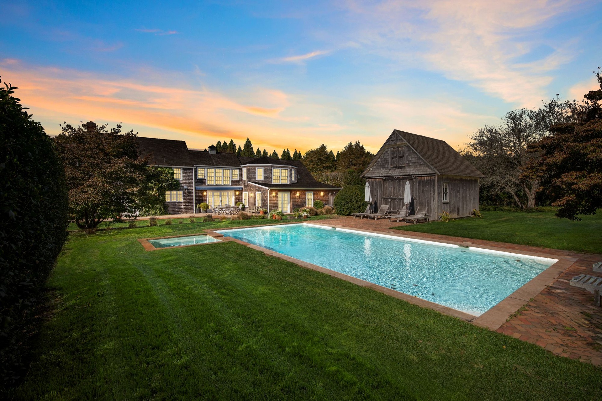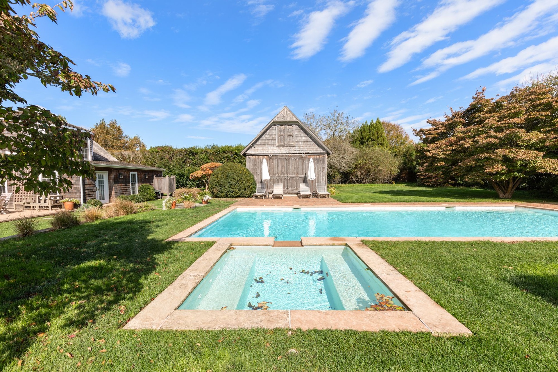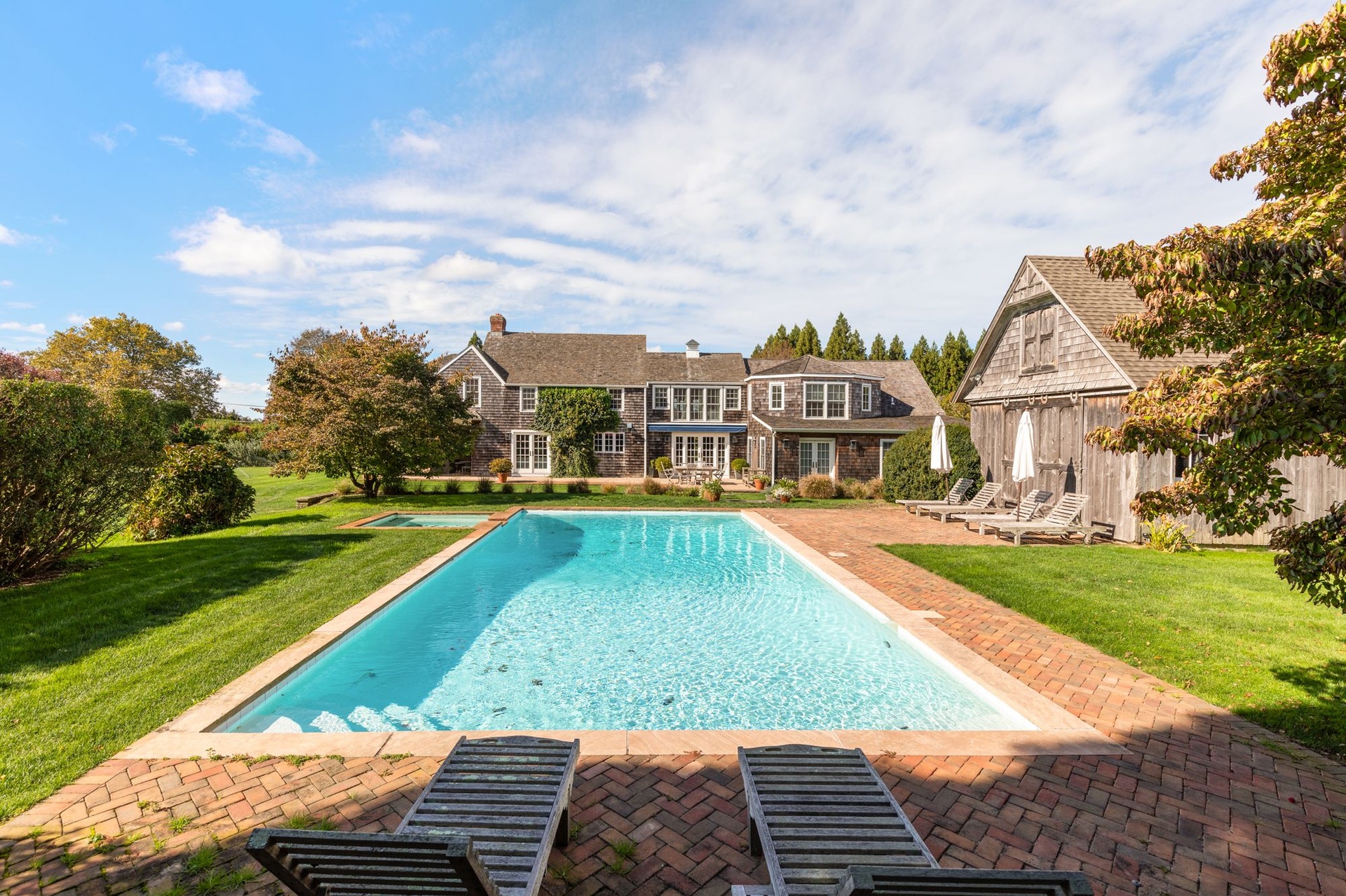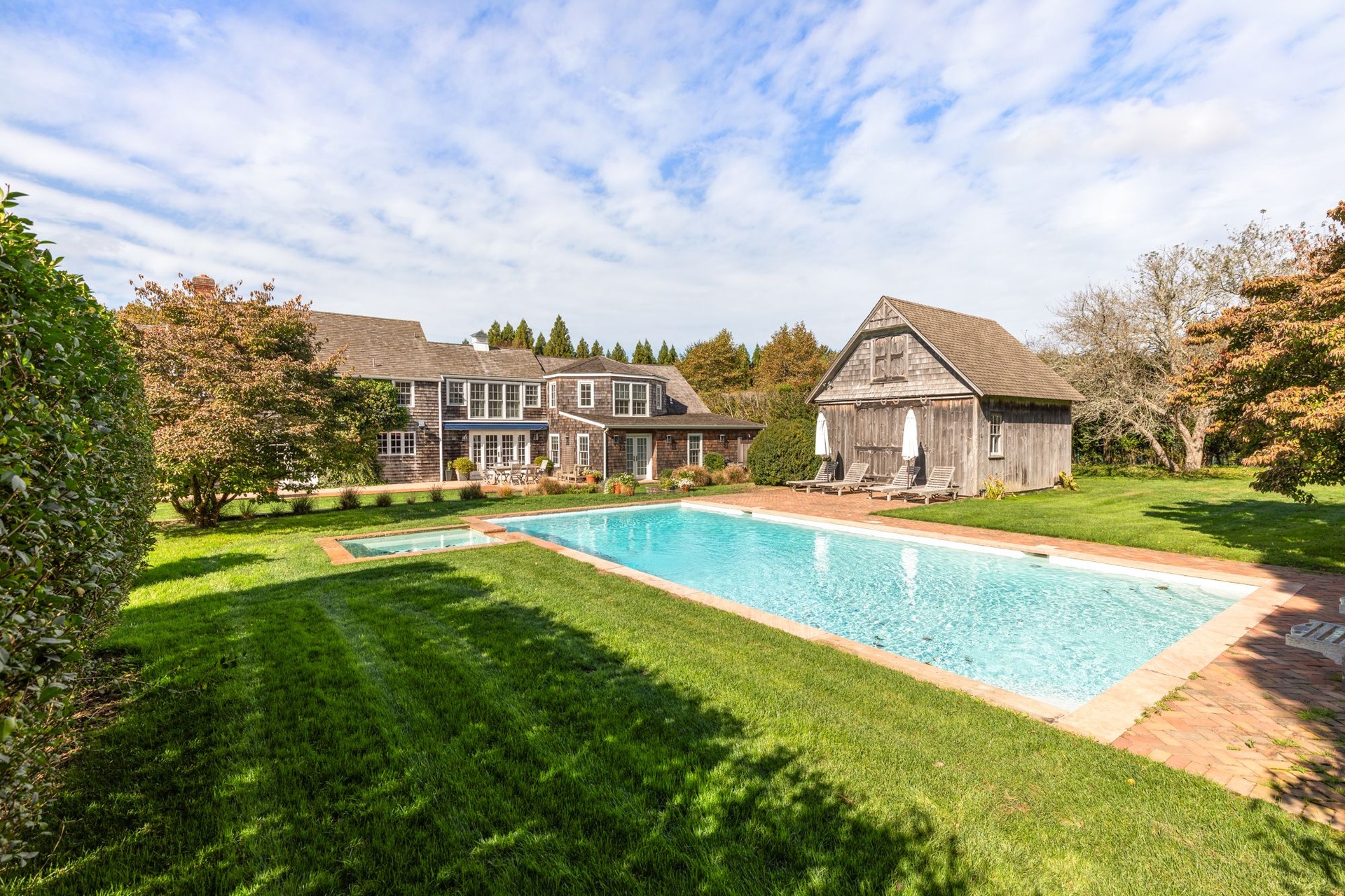 Gorgeous traditional home and cottage on 2 acres. Main house has 4 bedrooms and cottage has 3 bedrooms so perfect for your guests to have privacy and you to have own space! Recently renovated kitchen, living area, dining - lovely use of color throughout the naturally lit home. Beautiful lawns and incredible landscaping. Heated pool and barn converted to pool house.... come lose yourself this summer at this fabulous home close to Sagg Main Beach.