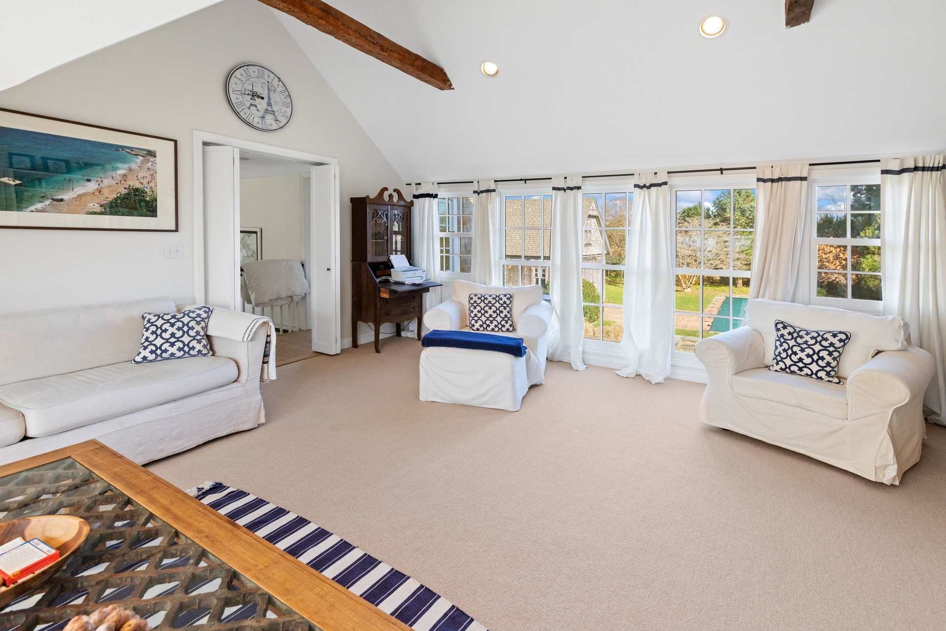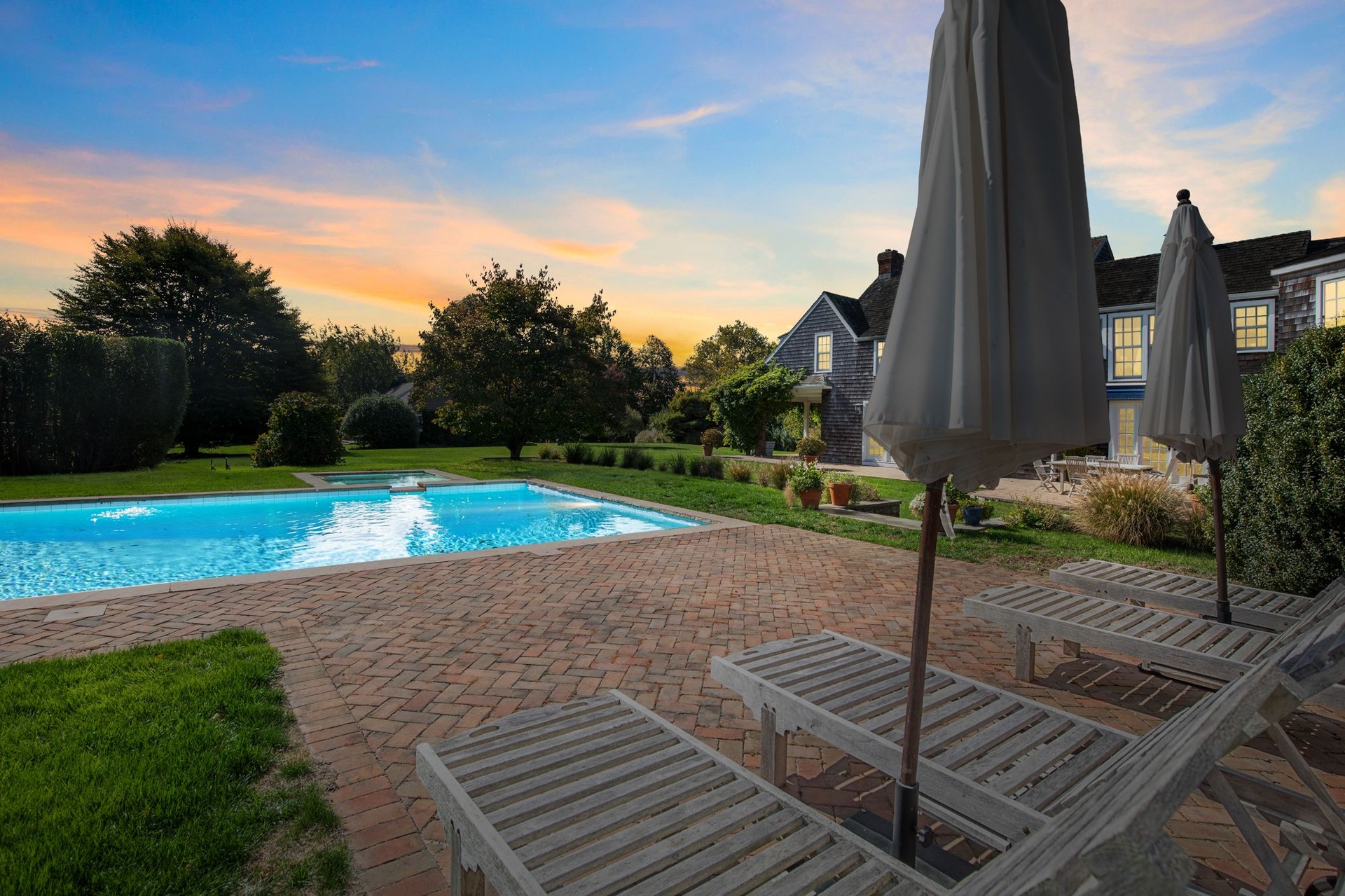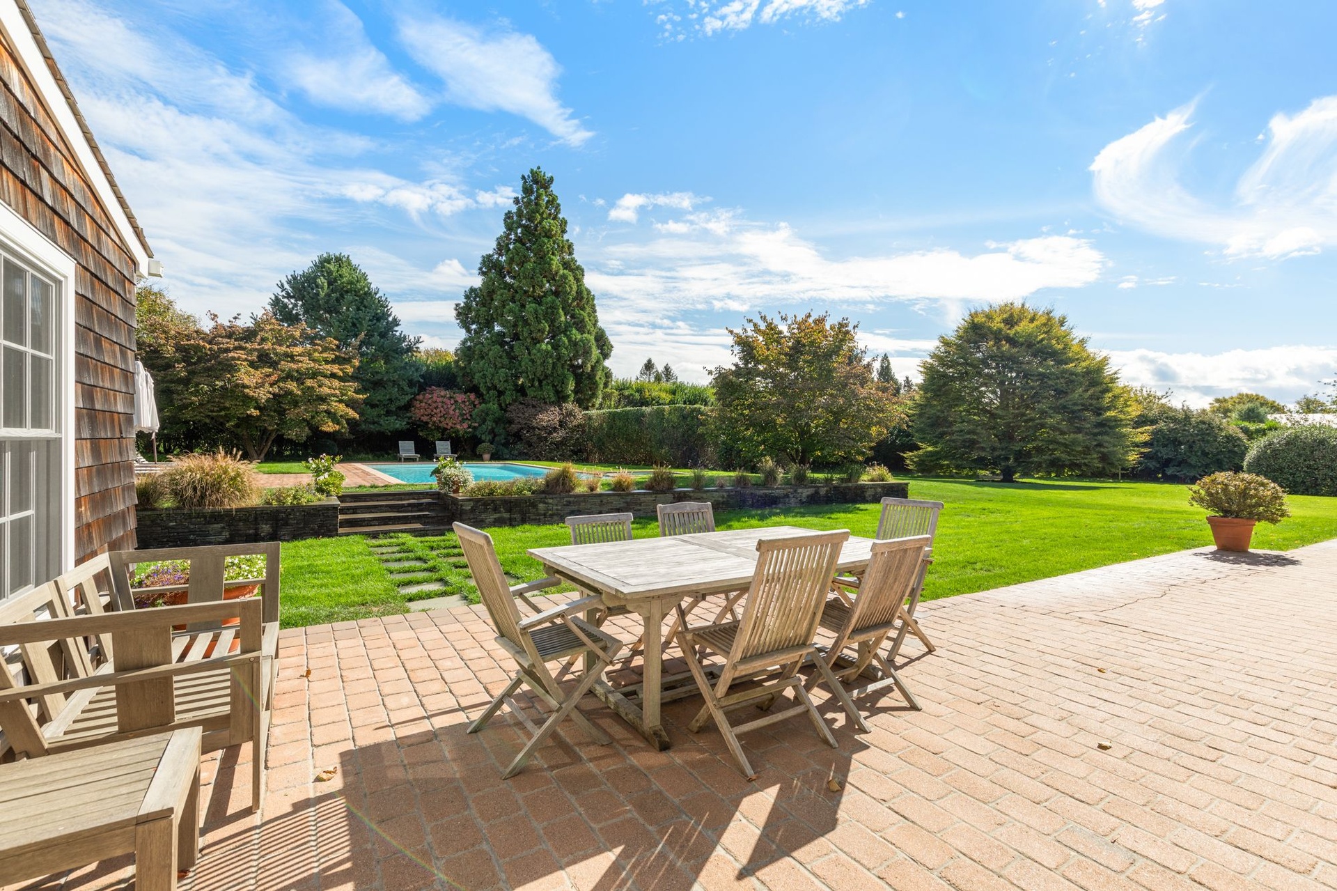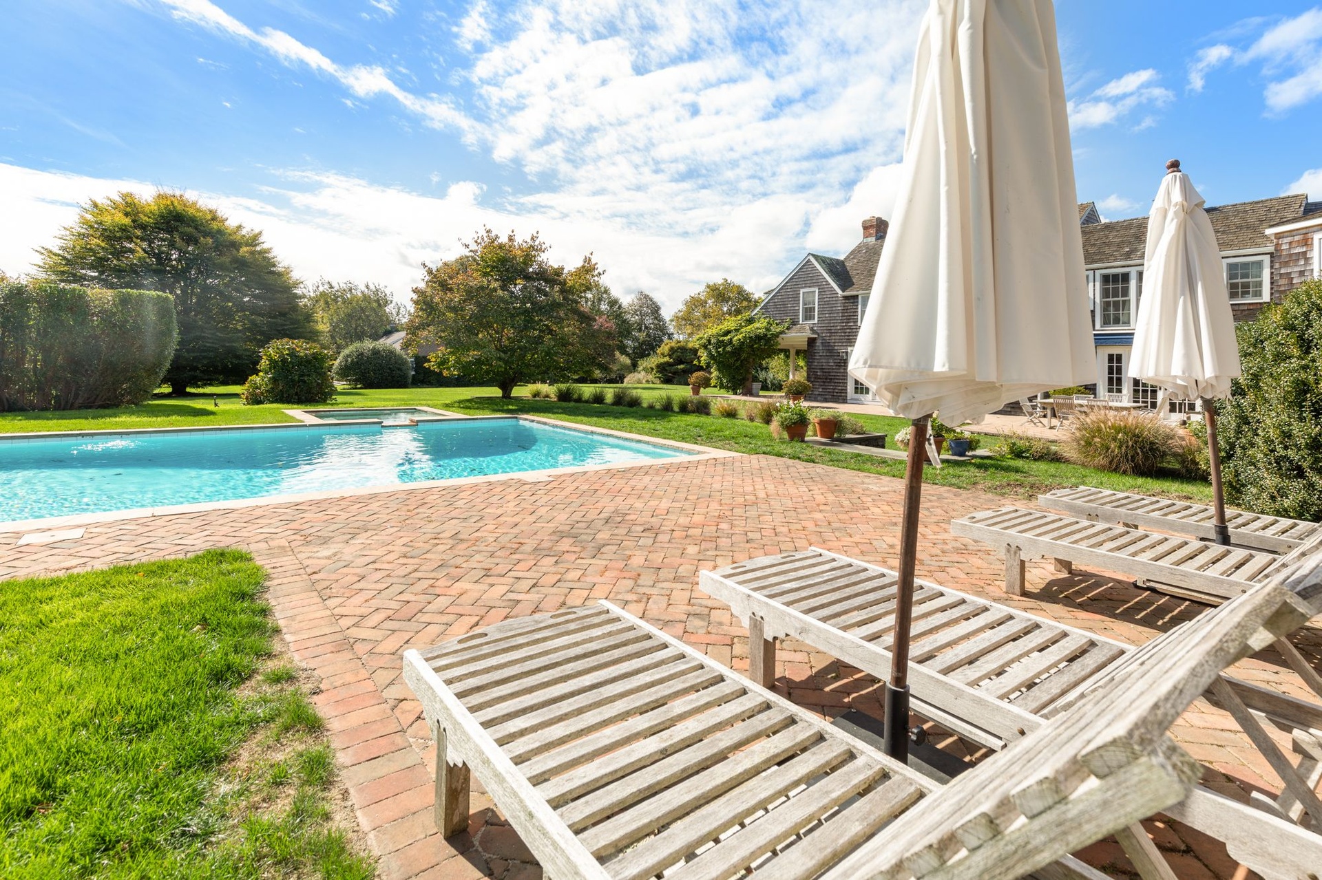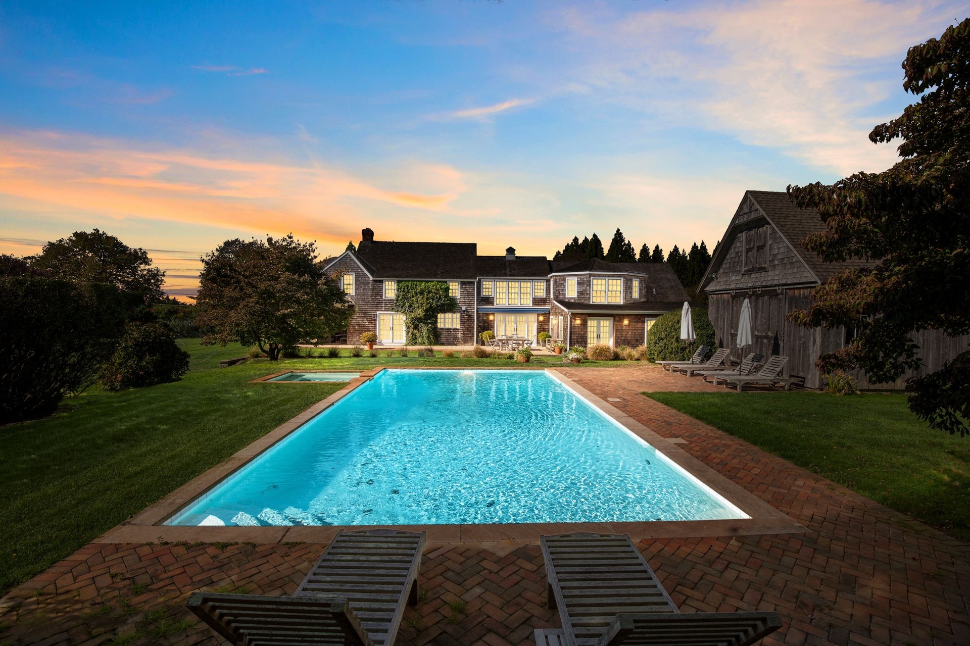 Gorgeous traditional home and cottage on 2 acres. Main house has 4 bedrooms and cottage has 3 bedrooms so perfect for your guests to have privacy and you to have own space! Recently renovated kitchen, living area, dining - lovely use of color throughout the naturally lit home. Beautiful lawns and incredible landscaping. Heated pool and barn converted to pool house.... come lose yourself this summer at this fabulous home close to Sagg Main Beach.