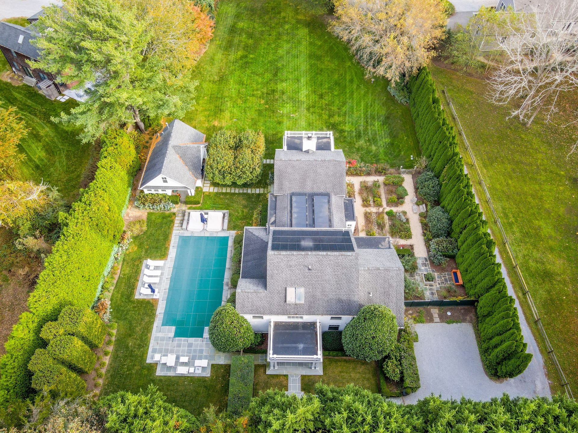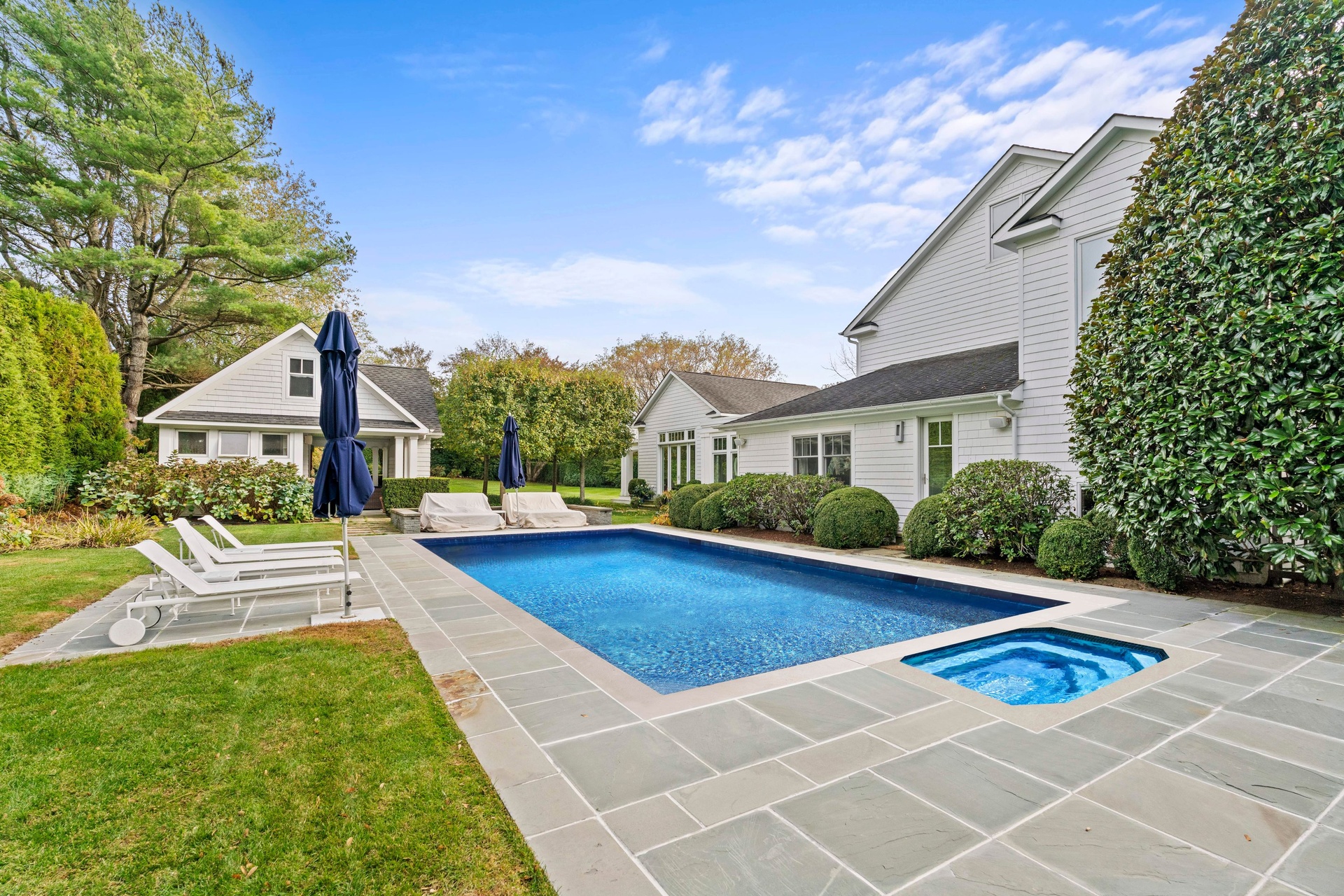 This private shy acre lot boasts impeccable landscaping and gardens as well as a pool house and pool. Truly a must-see!
