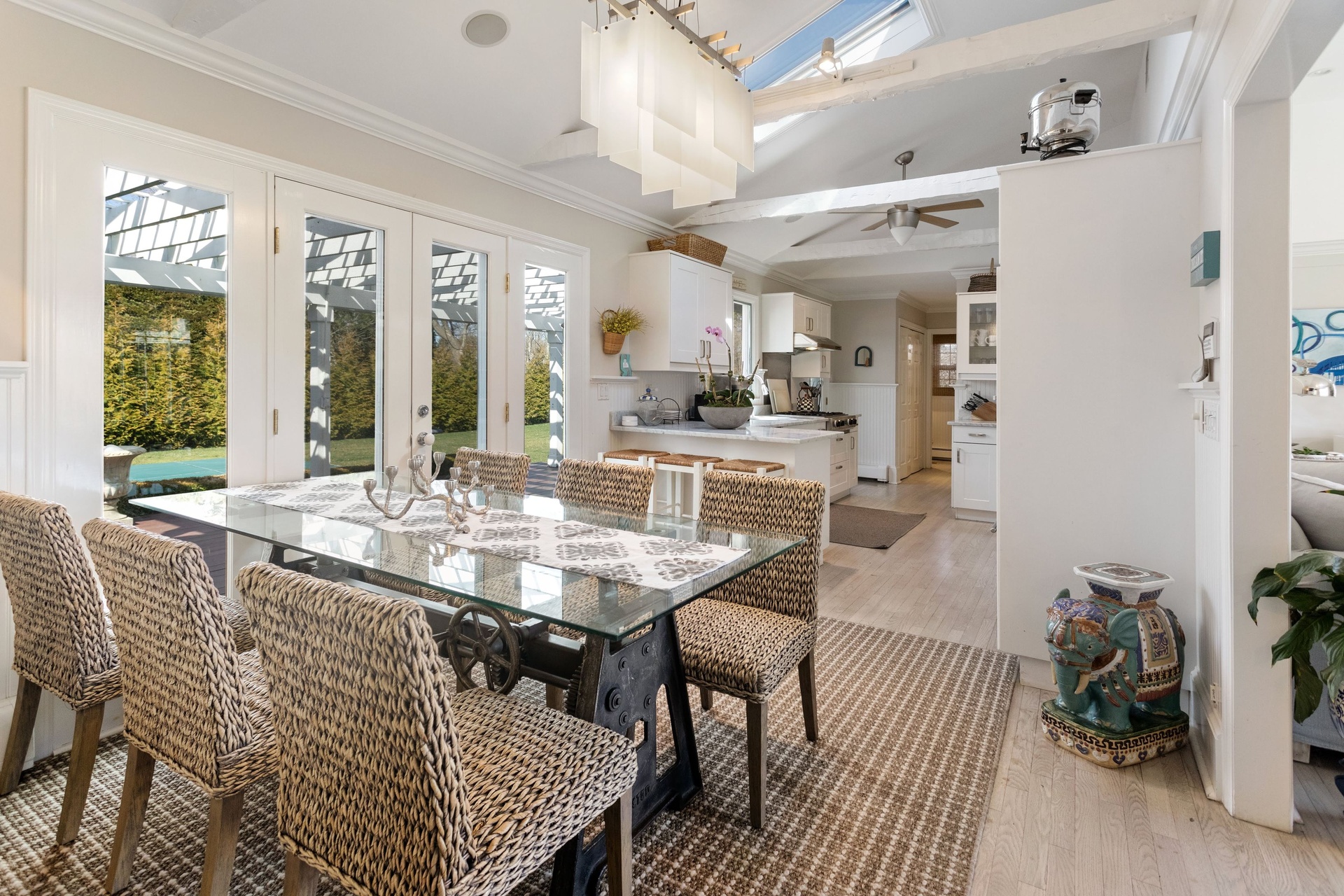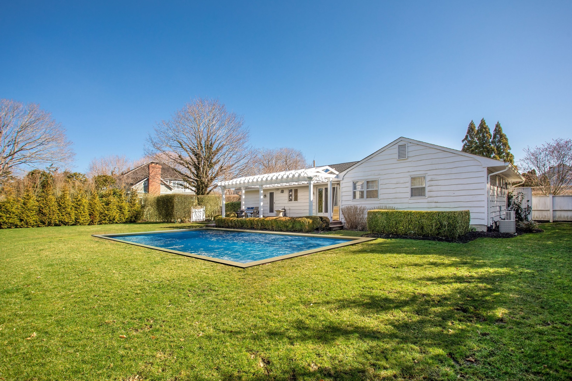 Polish Village Cottage south of the highway in Southamptons' coveted Village district. Completely renovated yet the classical essence and charm still lingers. Pro-beach, designer-chic decor compliments light-filled interiors. Featuring four bedrooms and three and a half baths, including a first floor master suite. Open first floor living areas are ideal for entertaining, flowing among great room with fireplace and wet bar, formal dining room and bright kitchen with central island, generous counter space. Bedrooms and baths are inviting and immaculate. Set amid broad, manicured lawns is a heated gunite pool.