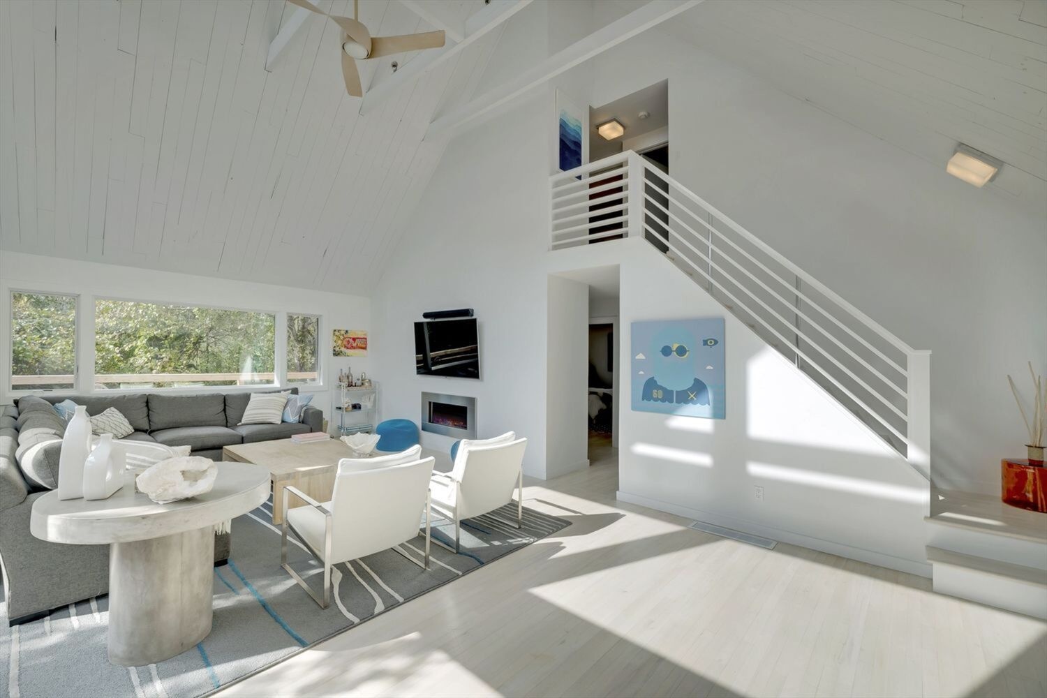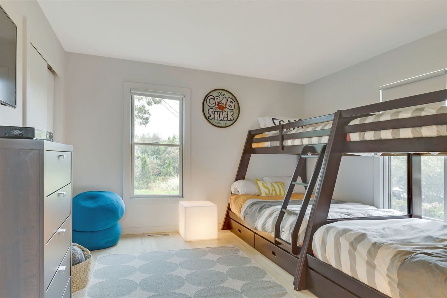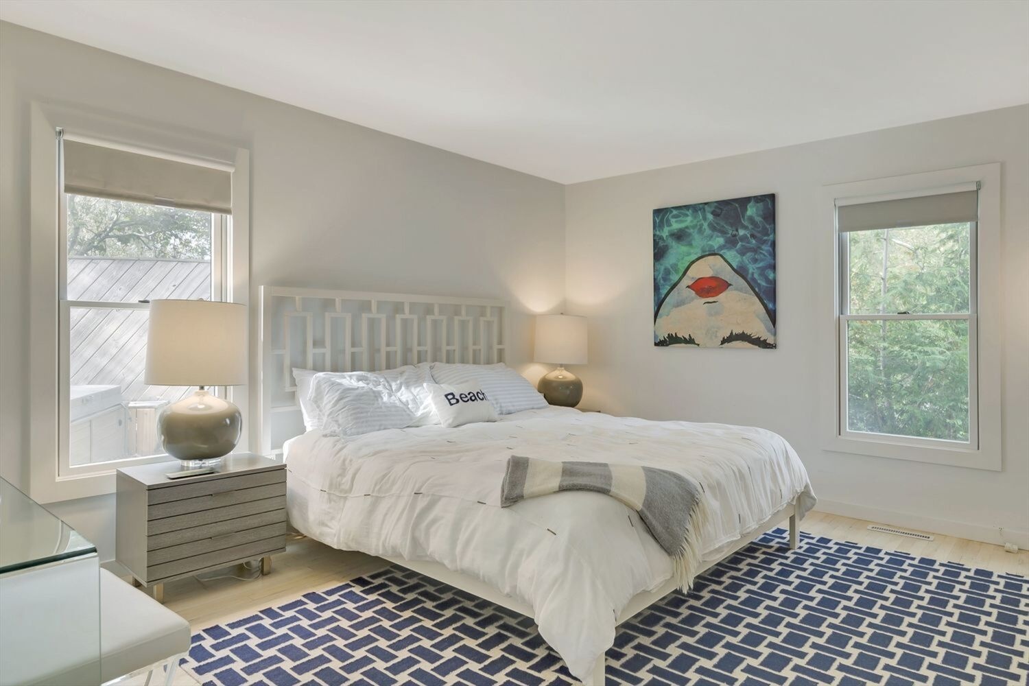 Light and bright modern home about 2 blocks from the ocean beach. Open Concept living plan, with redone kitchen, open to dining room, living room with huge TV and sliders to large deck with outdoor dining space, gas grill, seating area, and chairs and firepit below. Deck wraps around to hot tub and outside shower. Completely new bedroom with en suite bath. Two guest bedrooms down stairs and Guest bedroom and bonus room upstairs as well. Easy Summer rental.
