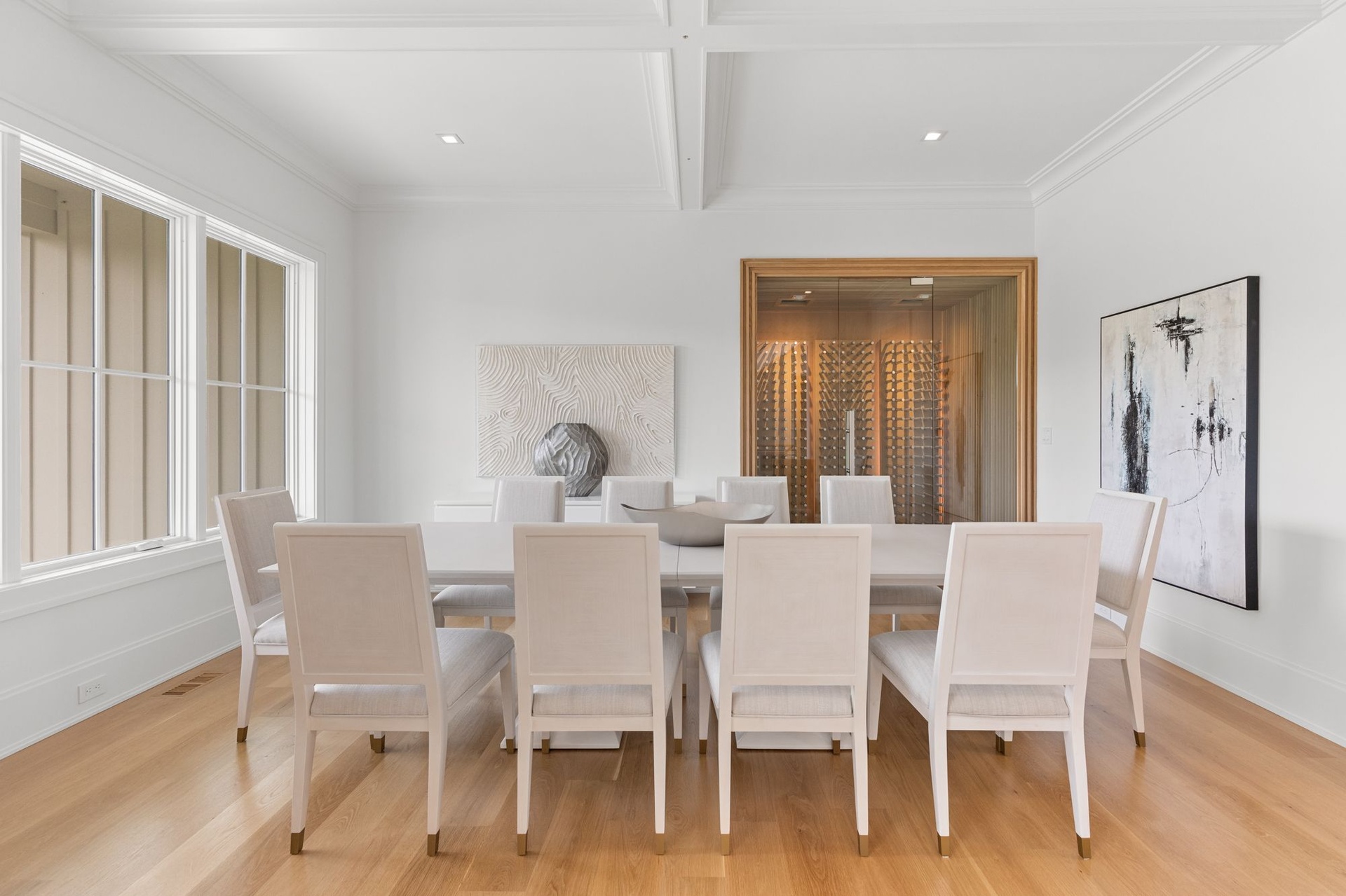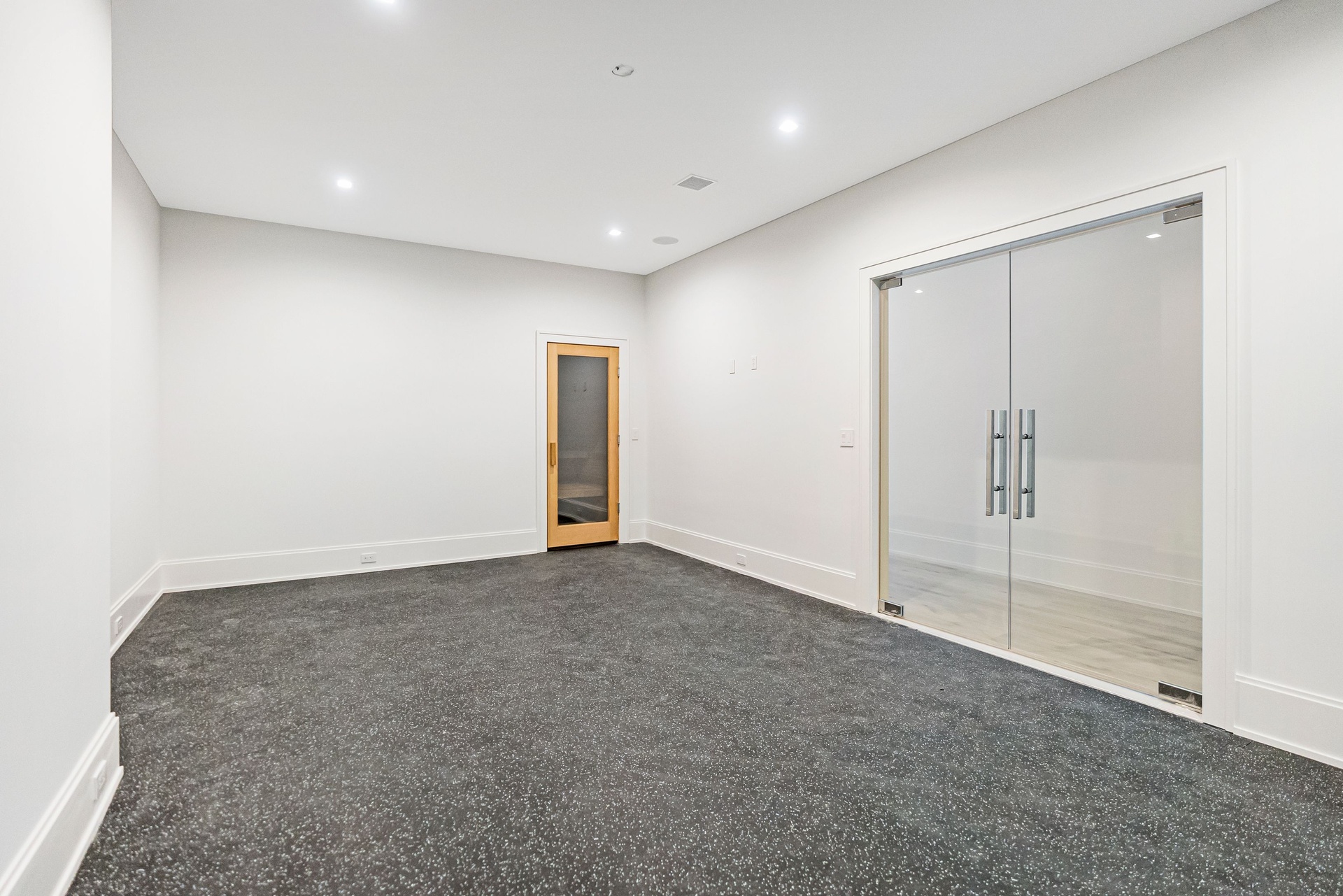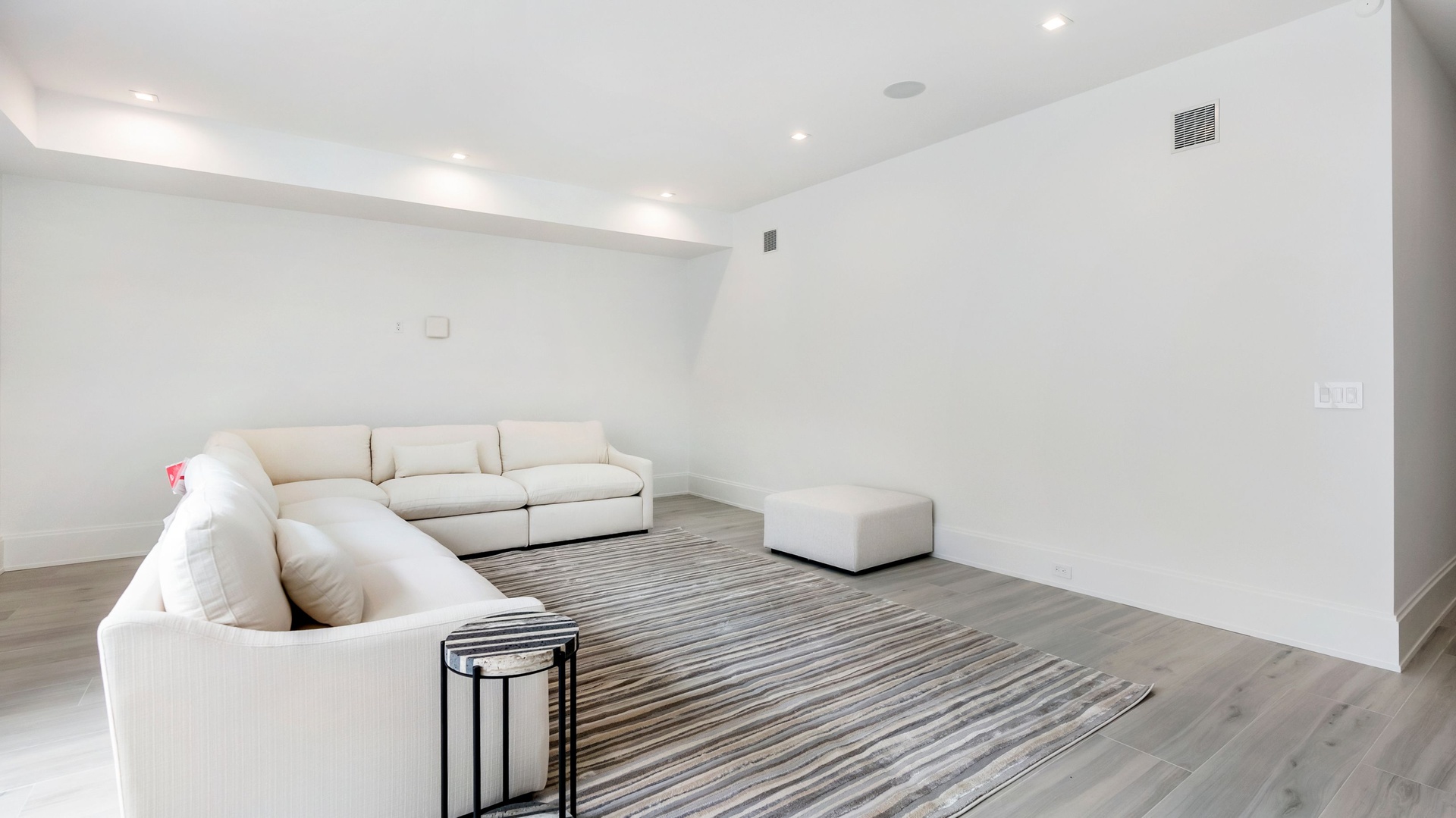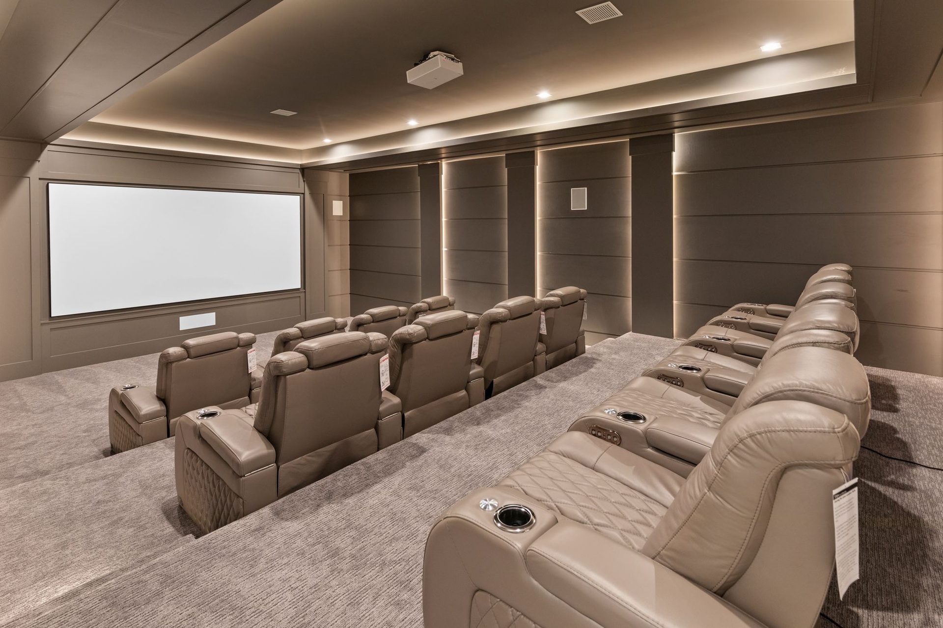 The expansive open living areas include formal dining and living rooms, perfect for both everyday living and entertaining. The finished lower level offers a large gym with a sauna and private terrace, a custom terraced theater room, and a spacious recreation space.