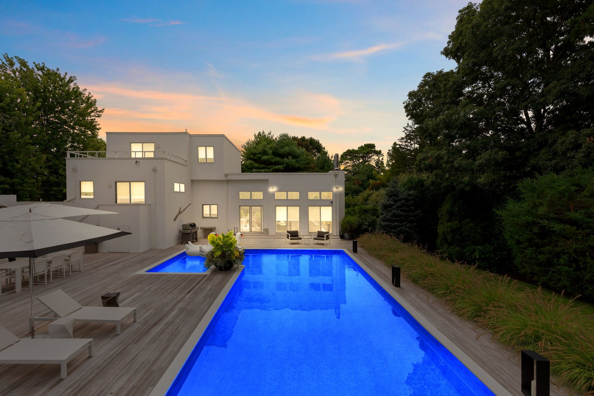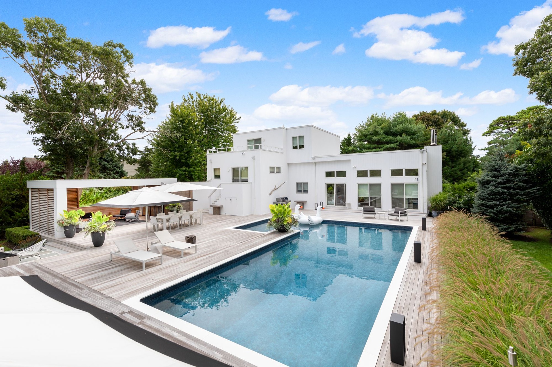 Breathtaking ocean beaches and views of the bay with the Atlantic Ocean around the corner, all with easy access, this property offers the perfect blend of tranquility and luxury. Enjoy sun-soaked days by the oversized pool surrounded by mahogany decking, entertain guests inside or out, savor the coastal lifestyle. This impeccably maintained home in East Quogue, has a gourmet kitchen which boasts high end Bosch and Thermidor appliances elegant custom glass counter tops. The four large bedrooms, (two en-suite), three newly renovated bathrooms, has you and your guests enjoying life in comfort. The second floor bay views from the Trex Decking outside the bedrooms are truly relaxing. A perfect opportunity to greet the sunrise as your day begins or sunset as the day ends. This recently updated home has great features, new appliances and oak floors. The living room has a 14 foot high ceiling and wood burning fireplace. The home's attached garage has an additional ample storage room. All this rests on a full acre of mature beautifully landscaped grounds with a Hunter Hydrawise remote access irrigation system making for perfect living. The salt water heated pool, large deck, outdoor shower and outdoor cedar closet, with a full entertainment area, fire pit, pergola, with special lighting around the grounds are ready for you and your guests to enjoy with exceptional Hamptons style. Triple zone environment remote control for year round living. An automatic, propane powered Kohler generator system keeps you confident in case the power fluctuates. Don't miss this opportunity to own a piece of paradise! Viewing is by private appointments with 24 notice.