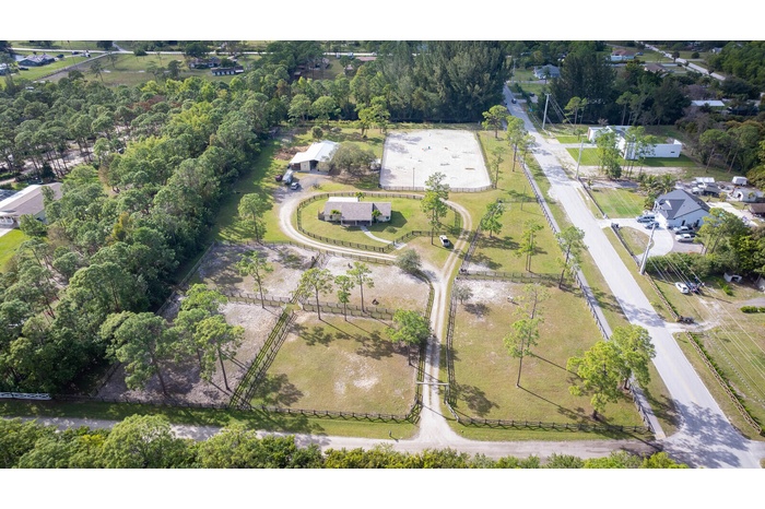Super location, move right in for the 2026 EQUESTRIAN SHOW SEASON! Fabulous 5.50 acre farm with CBS 3/2 home with office. Home has a 2021 ROOF, remodeled kitchen with farm sink and large prep/snack bar island, office & 30 x 15' screened porch, home has wood plank vinyl flooring throughout. Center aisle barn has 13 stalls also a separated 2 RUN-IN stall barn with small paddocks, 15 STALLS TOTAL. Air conditioned Tack & Feed rooms. LIGHTED ARENA is 230' X 140', perfect for regulation dressage ring or all weather jumping arena. 6 large paddocks, Barn has separate electric meter and RV hookup. Property is perfect for a riding school as there are over 30k families within a 10 mile radius including the Westlake community. All measurements are approximations and subject to error