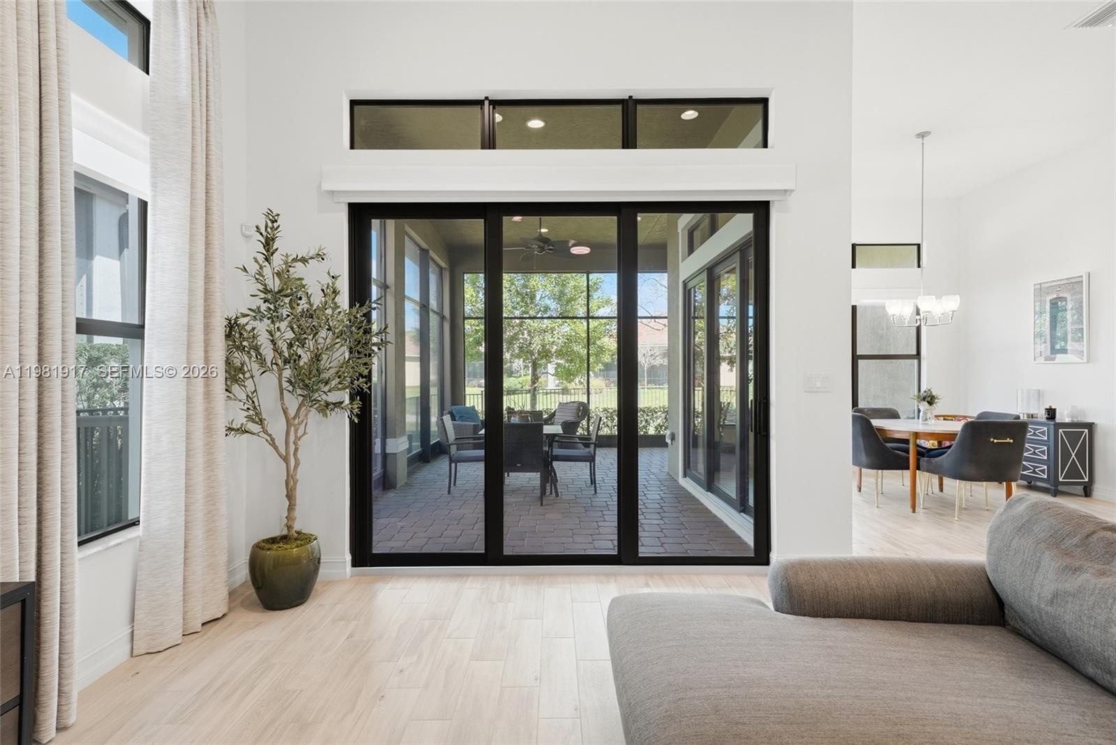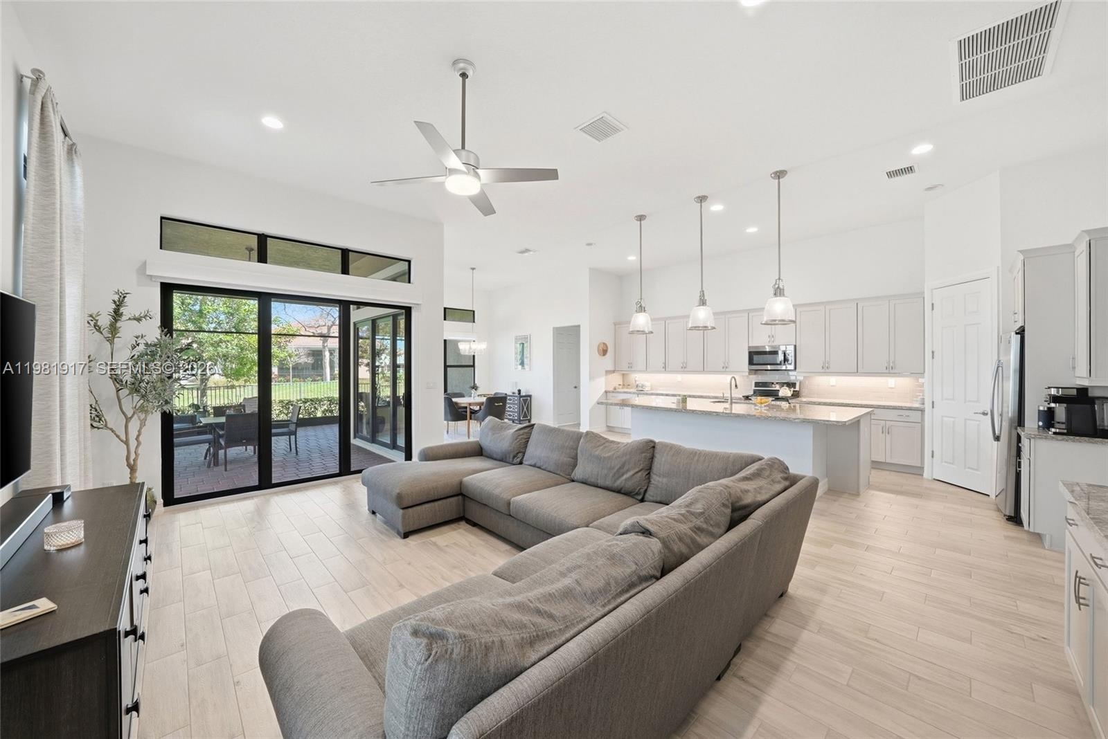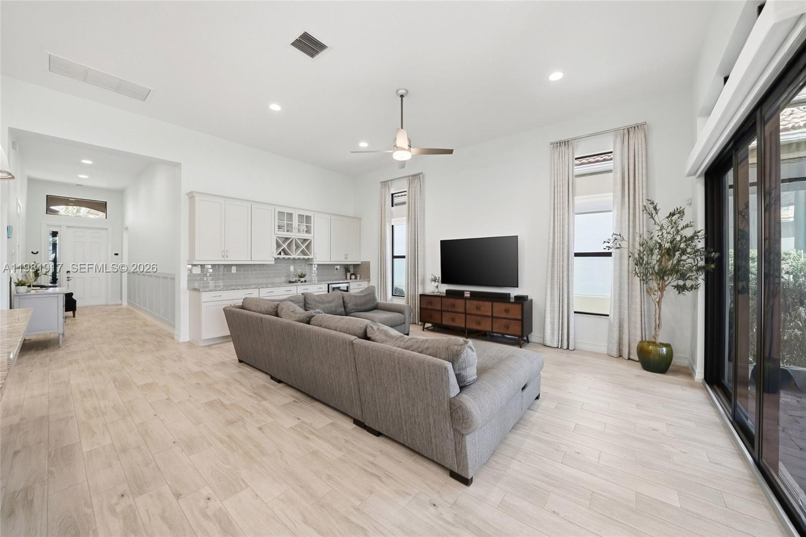 Interior highlights include a Generous Kitchen Island, Upgraded Custom Wet bar with a Wine refrigerator, and triple pocket sliding glass doors from both the living and dining areas, creating seamless indoor-outdoor living. The Primary Suite features Multiple windows that capture peaceful water views!
