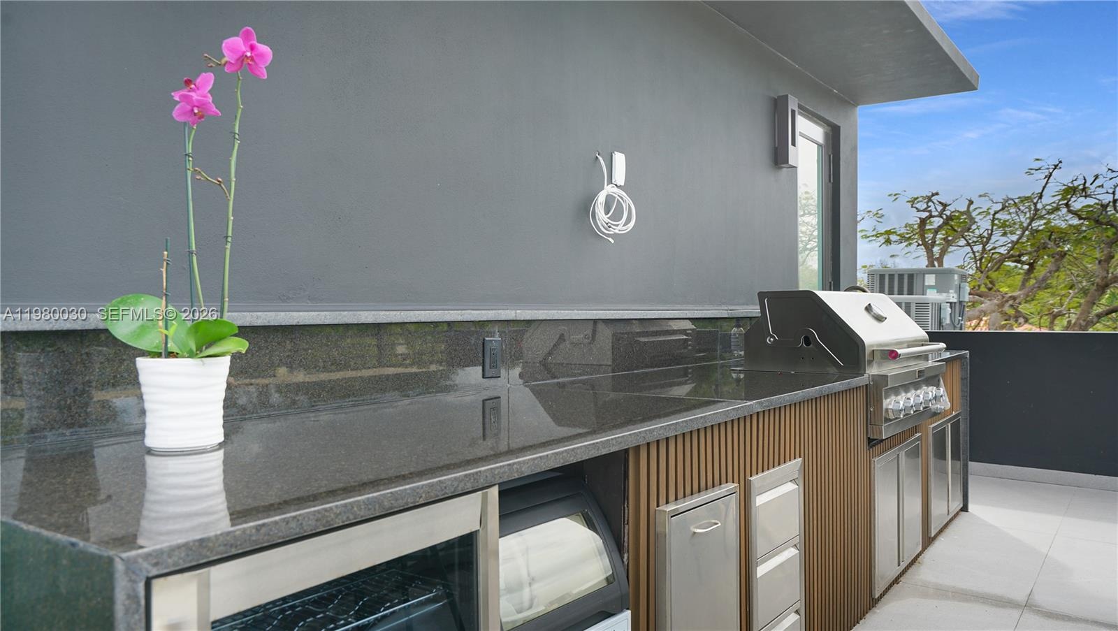 The home offers custom millwork and high-end finishes. Enjoy great indoor-outdoor living with a swimming pool, patio, and barbecue area. Stunning private rooftop terrace with summer kitchen and full bathroom, offering beautiful sunset views and city lights. Includes 1-car garage plus 2 additional parking spaces and exterior parking. Prime central Grove location just a short walk to the village center and marina, near CocoWalk and Coconut Grove Marina.