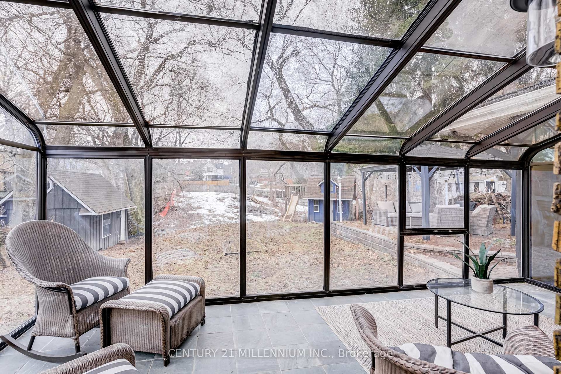 Step into timeless charm with the comfort of modern living in this beautifully updated early-1900s home nestled in the heart of the picturesque village of Inglewood. Full of character yet thoughtfully renovated throughout, this home offers the perfect balance of historic warmth and modern upgrades that allow buyers to move in and enjoy without the hassle of major updates. The main level welcomes you with a spacious living room featuring a cozy gas fireplace and large windows that fill the space with natural light. From here, step into the bright three-season sunroom, surrounded by windows and overlooking the expansive backyard-an ideal space to relax and take in the peaceful setting. At the heart of the home is the fully renovated eat-in kitchen, complete with stainless steel appliances, granite countertops, a double sink, a convenient walk-in pantry, and beautiful wood shelving that enhances the charm and character of the home. The formal dining room provides an inviting space for gatherings, featuring three large windows, crown molding, and built-in shelving. Just off the kitchen, an additional family room offers even more living space and direct access to the sunroom, creating an easy flow for everyday living and entertaining. A newly renovated two-piece bathroom completes the main floor. Upstairs you will find four well-sized bedrooms and a four-piece bathroom, offering plenty of room for family, guests, or a home office. Outside, the large backyard is designed for both relaxation and fun, featuring a pergola, a charming playhouse, and a shed with power-perfect for hobbies, storage, or a workshop. Extensive updates provide peace of mind, including a new furnace and air conditioner, all new electrical, new interior doors throughout, new windows and blinds, a durable metal roof with new eavestroughs, and a new septic pump. Located in the highly desirable village of Inglewood, this home offers a lifestyle that blends natural beauty with community charm.
