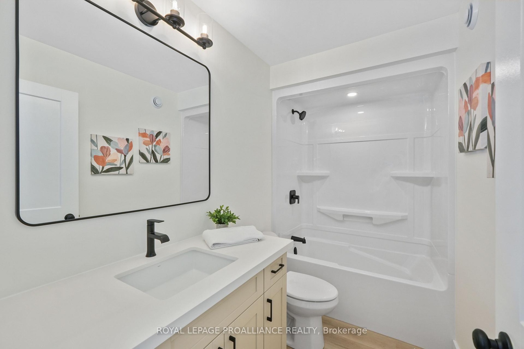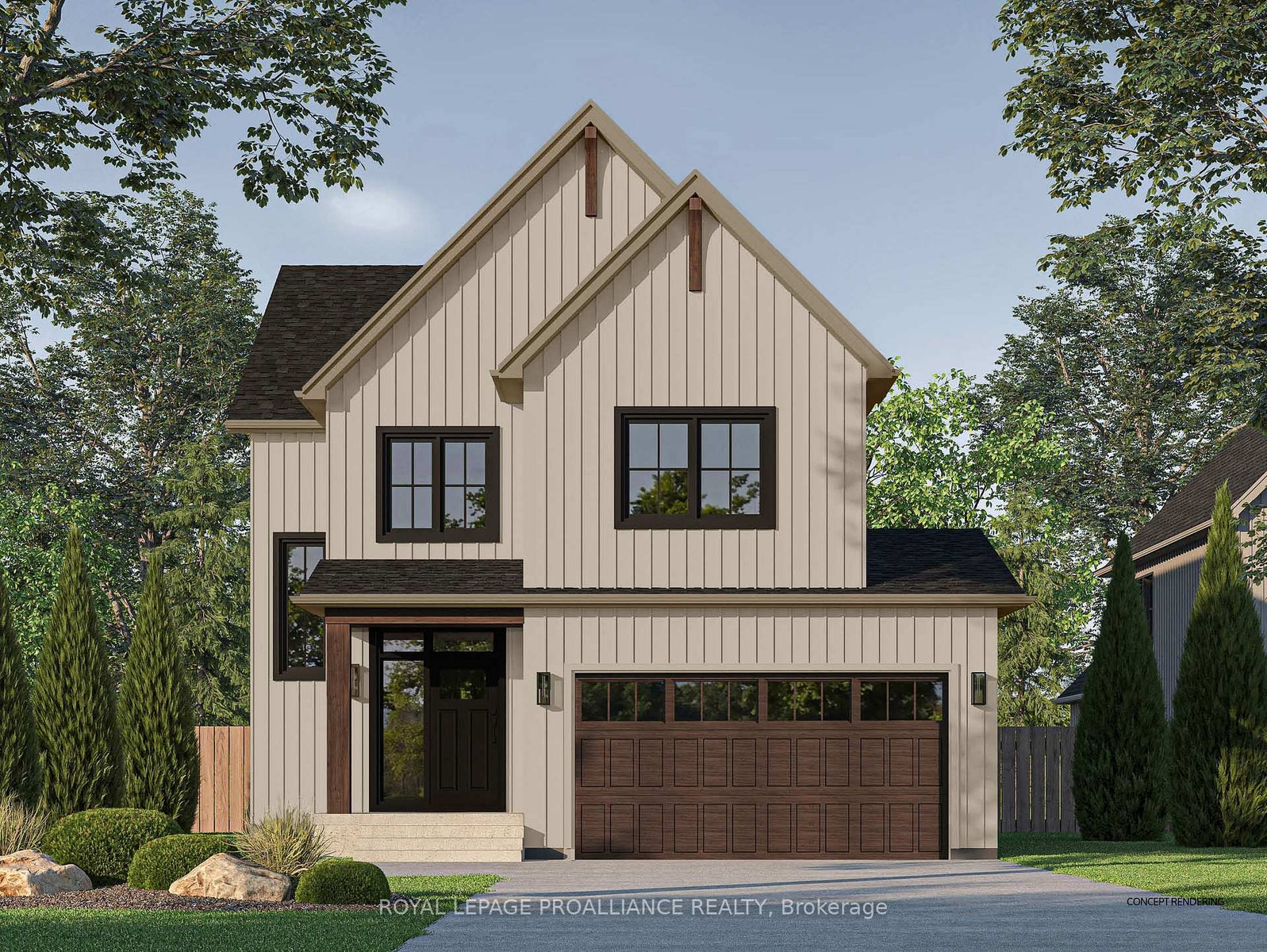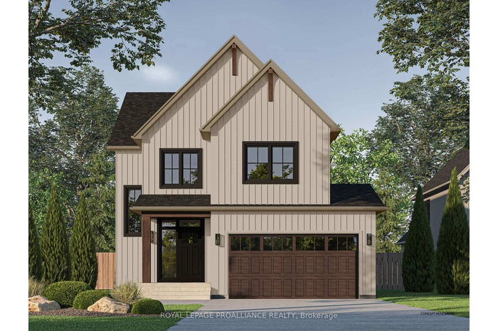 Nestled in the quaint village of Colborne and crafted by Fidelity Homes, this exquisite modern farmhouse combines contemporary elegance with rustic charm. Ideally located just minutes from downtown and 5 minutes south of the 401, this 2,391 sqft, 2-storey detached home boasts 4 bedrooms, 2.5 bathrooms, and thoughtful touches to enhance your living experience. Step into a private foyer with a convenient closet for all your storage needs. The main hallway leads to the heart of the home-a bright, open-concept kitchen, living, and dining area designed for effortless entertaining and family gatherings. A sliding door from the living room opens to a spacious back deck, perfect for outdoor relaxation. The main floor also features a mudroom with a second closet for additional storage, conveniently located off the 2-car garage entry. A powder room provides easy access for guests and family. The upper level includes three generously sized bedrooms, a flex space ideal for a home office or playroom, and a well-appointed primary suite featuring a large walk-in closet and a luxurious ensuite bathroom. A full bathroom and a conveniently located laundry room complete this family-friendly floor plan. This home comes packed with quality finishes including: Maintenance-free, Energy Star-rated North Star vinyl windows with Low-E-Argon glass; 9-foot smooth ceilings on the main floor for a spacious, airy feel; Designer Logan interior doors with sleek black Weiser hardware; Craftsman-style trim package with 5 1/2baseboards and elegant casings around windows and doors; Premium cabinetry; Quality vinyl plank flooring; Moen matte blackwater-efficient faucets in all bathrooms; Stylish, designer light fixtures throughout & a 7 Year Tarion New Home Warranty LISTING PRICE REFLECTS EXPANDED HST NEW RESIDENTIAL REBATE FOR ELIGIBLE PURCHASERS