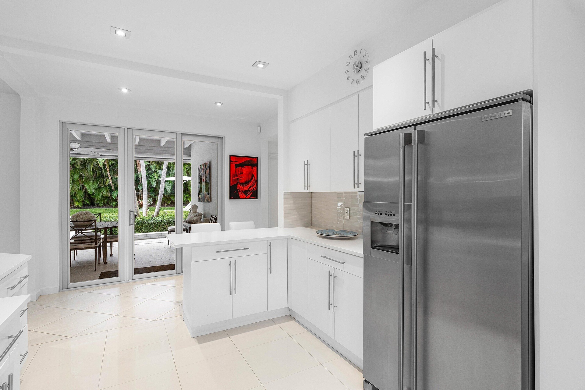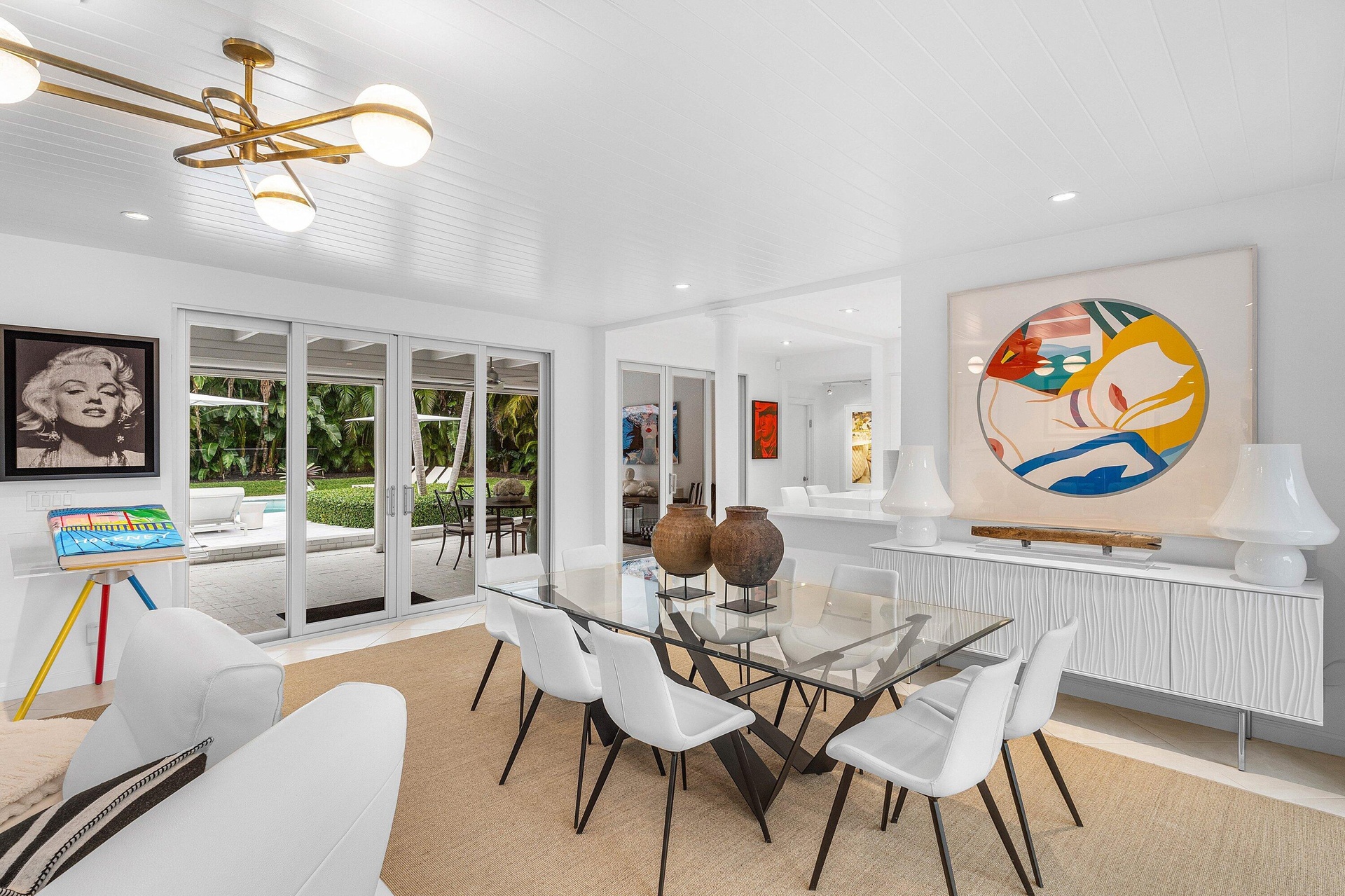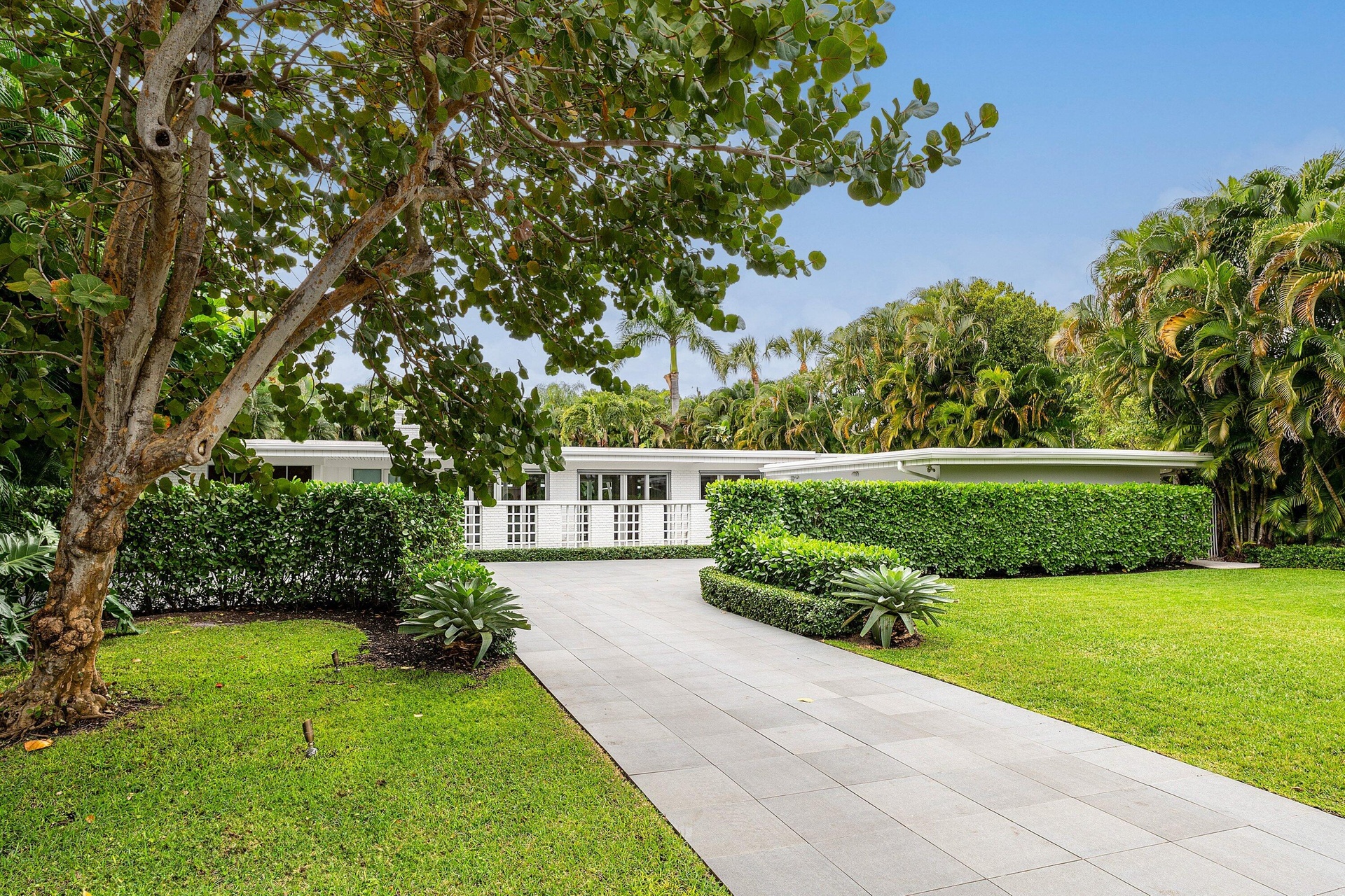 Live the South Florida dream on the barrier island of Hypoluxo Island—home to only 315 single-family residences and one of the best coastal values in all of South Florida. Perfectly positioned between Palm Beach and Delray Beach, this rare Mid-Century Modern estate is not just a home—it's a piece of art. Set on an oversized .36-acre double lot surrounded by lush tropical landscaping, this 3-bedroom, 2.5-bath single-story residence with a 2-car garage blends timeless architecture with thoughtful modern updates. The spacious living room with fireplace opens through a dramatic wall of glass to an oversized loggia with beamed ceilings, seamlessly connecting indoor and outdoor living. The private backyard retreat features a sparkling new pool, expansive deck, and beautifully redesigned landscaping, creating a tranquil setting for entertaining or relaxing in total privacy. The open gourmet kitchen offers quality appliances and a gas range, ideal for everyday living or hosting guests. The serene primary suite overlooks the gardens and features a newly renovated bath with luxurious soaking tub and separate shower. Recent upgrades include newer roof, impact doors and windows, electric floor-to-ceiling screens for cross-ventilation, a porcelain tile driveway, new pool, and refreshed landscaping. Moments from the ocean and minutes from the world-class amenities of Eau Palm Beach Resort & Spa, this exceptional residence offers the rare opportunity to own a true architectural gem in one of Palm Beach County's most coveted island communities.