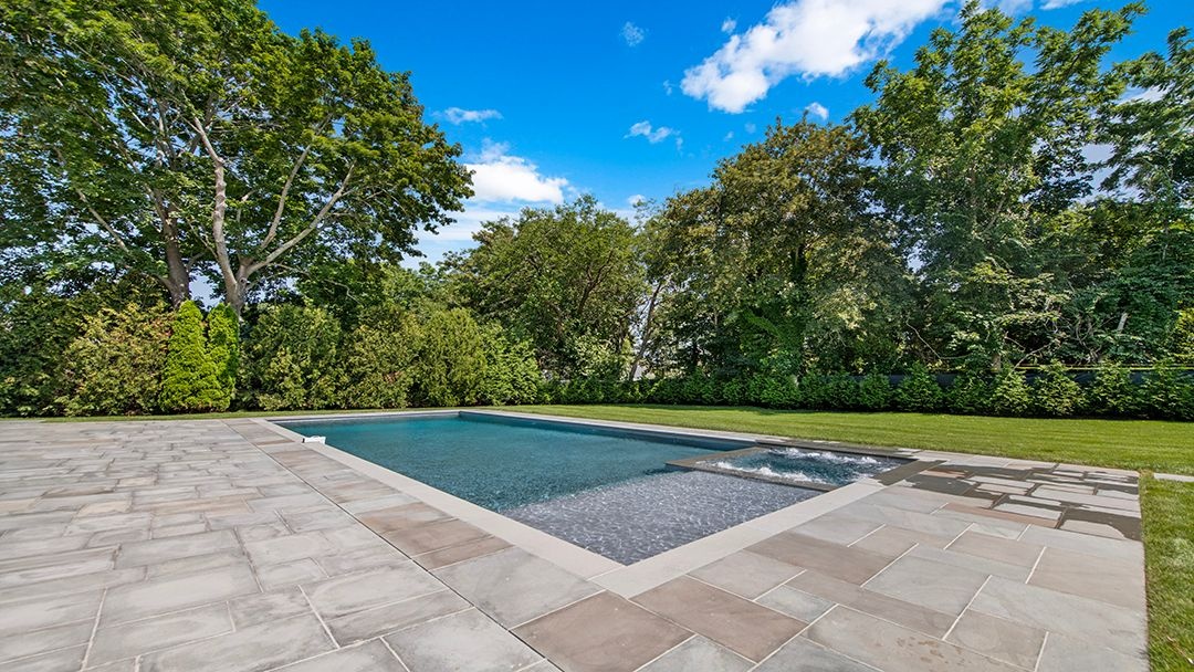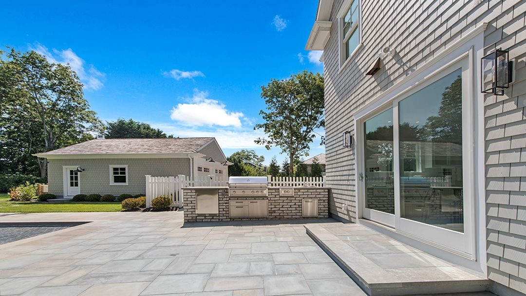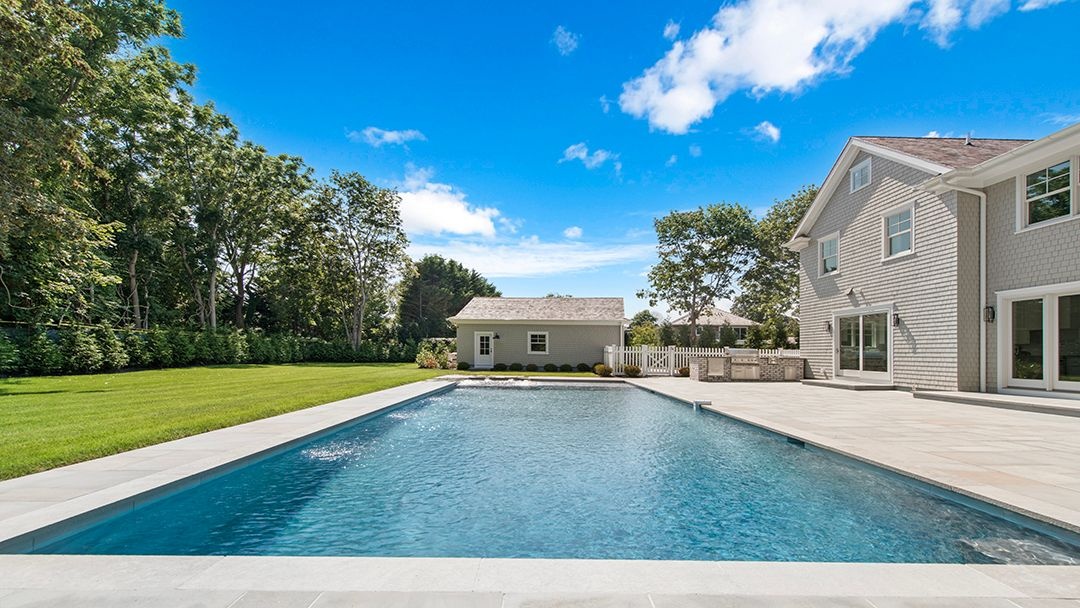 Stepping outside, an outdoor oasis awaits, featuring a covered porch and a bluestone patio. An outdoor kitchen provides the perfect setting for al fresco dining and entertaining. Completing the outdoor amenities is a 20*50 heated gunite pool with a spa, offering relaxation and enjoyment year-round.