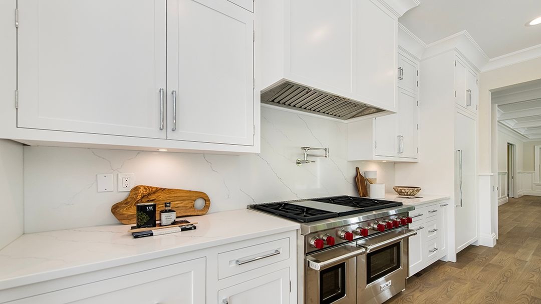 Upon entering the residence, the double-height entrance foyer immediately captivates with its elegance and charm. The well-appointed gourmet kitchen takes center stage, featuring a generously sized center island adorned with top-of-the-line Subzero and Wolf appliances. Abundant counter space and cabinets provide both practicality and style.