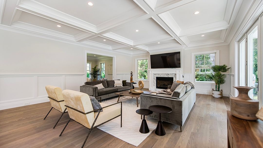 The main level also offers a guest ensuite bedroom, thoughtfully designed to accommodate family and friends. A custom family room further enhances the space, providing a comfortable and inviting area for gatherings.