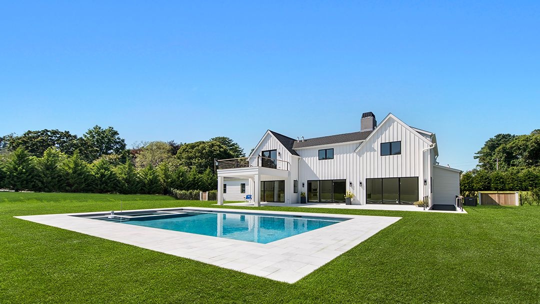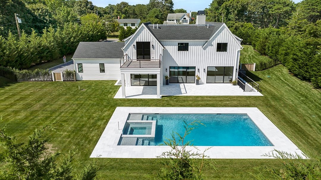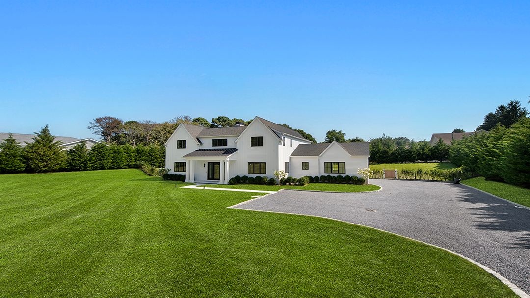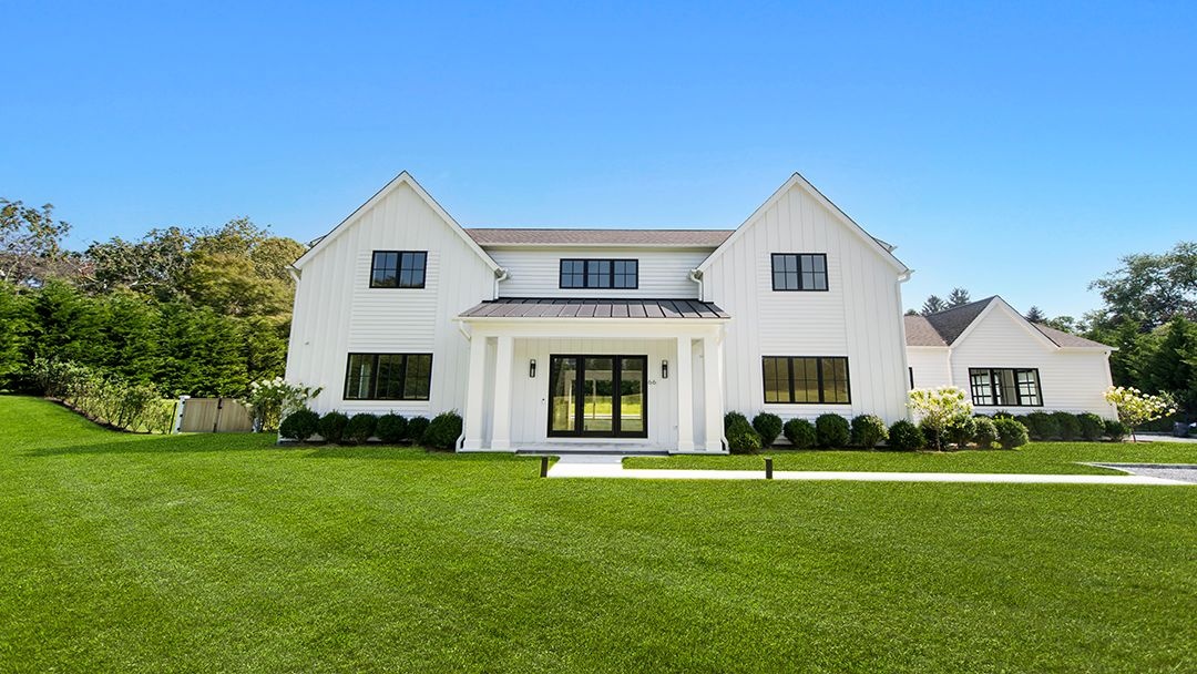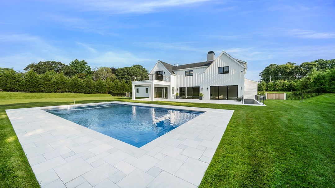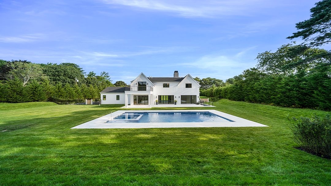 Introducing an extraordinary opportunity in the coveted Southampton neighborhood - the newly constructed Southampton Modern Farmhouse. This ultra-luxurious residence, sprawled across .97 acres, offers incredible value just moments away from Southampton Village's world-class restaurants and beaches. Boasting approximately 5,800 square feet, the innovative design showcases a double-height foyer, double-sided marble fireplace in the great room, fully equipped chef's kitchen, formal/informal dining, first-floor junior suite, and two-car attached garage. The second level features a primary suite with a walkout terrace and three en suite guest bedrooms. The stunning lower level offers a glass-enclosed gym, sunken theater room, recreational area, and two guest bedrooms with a full bath. Outdoors, indulge in the heated Gunite swimming pool surrounded by lush greenery on the stone patio. This turnkey residence awaits the Summer Season, delivering the epitome of Southampton living