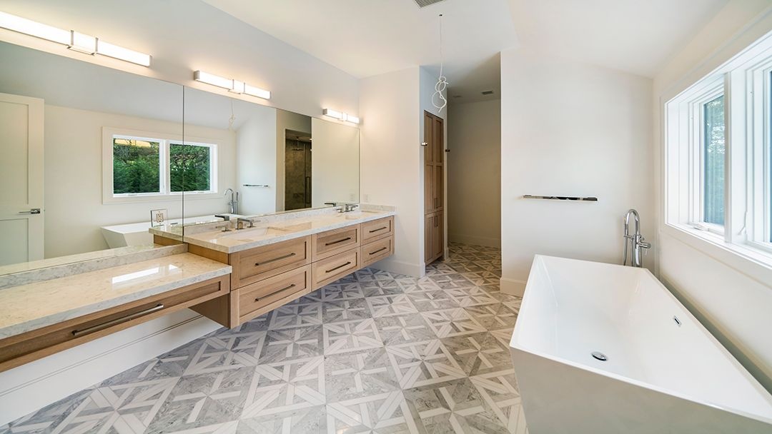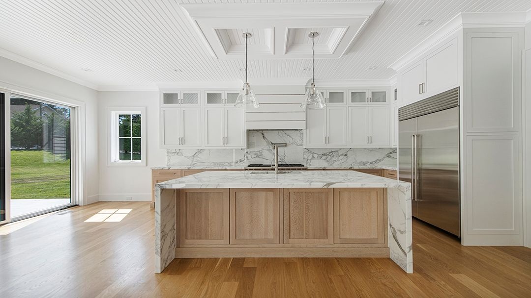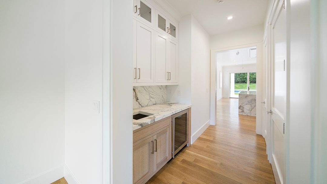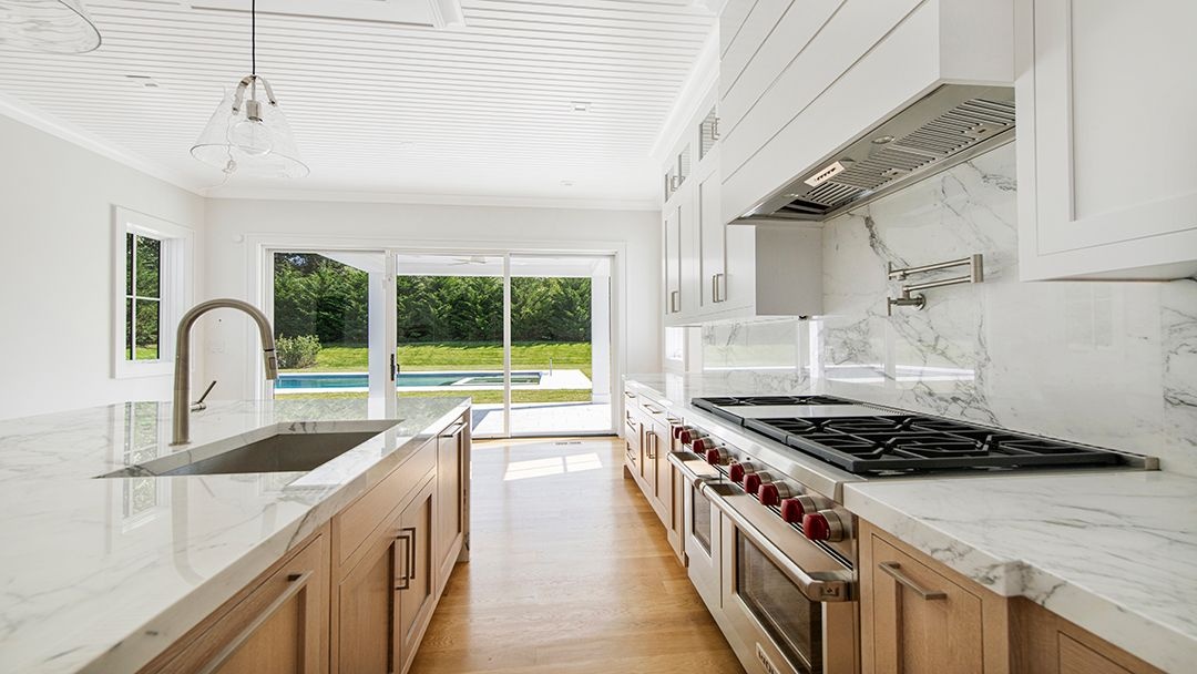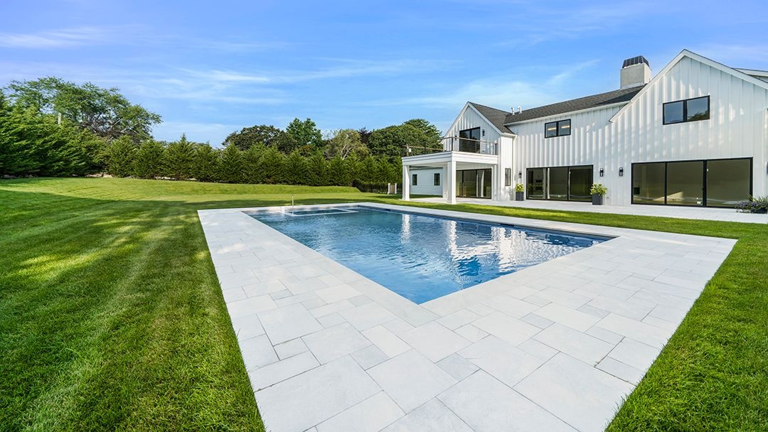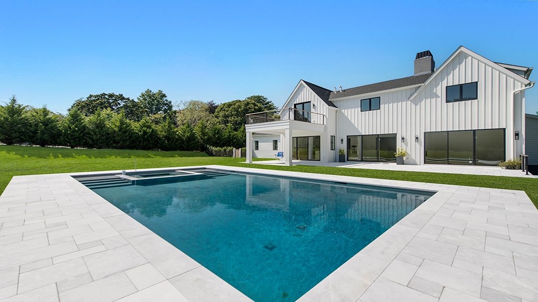 Introducing an extraordinary opportunity in the coveted Southampton neighborhood - the newly constructed Southampton Modern Farmhouse. This ultra-luxurious residence, sprawled across .97 acres, offers incredible value just moments away from Southampton Village's world-class restaurants and beaches. Boasting approximately 5,800 square feet, the innovative design showcases a double-height foyer, double-sided marble fireplace in the great room, fully equipped chef's kitchen, formal/informal dining, first-floor junior suite, and two-car attached garage. The second level features a primary suite with a walkout terrace and three en suite guest bedrooms. The stunning lower level offers a glass-enclosed gym, sunken theater room, recreational area, and two guest bedrooms with a full bath. Outdoors, indulge in the heated Gunite swimming pool surrounded by lush greenery on the stone patio. This turnkey residence awaits the Summer Season, delivering the epitome of Southampton living
