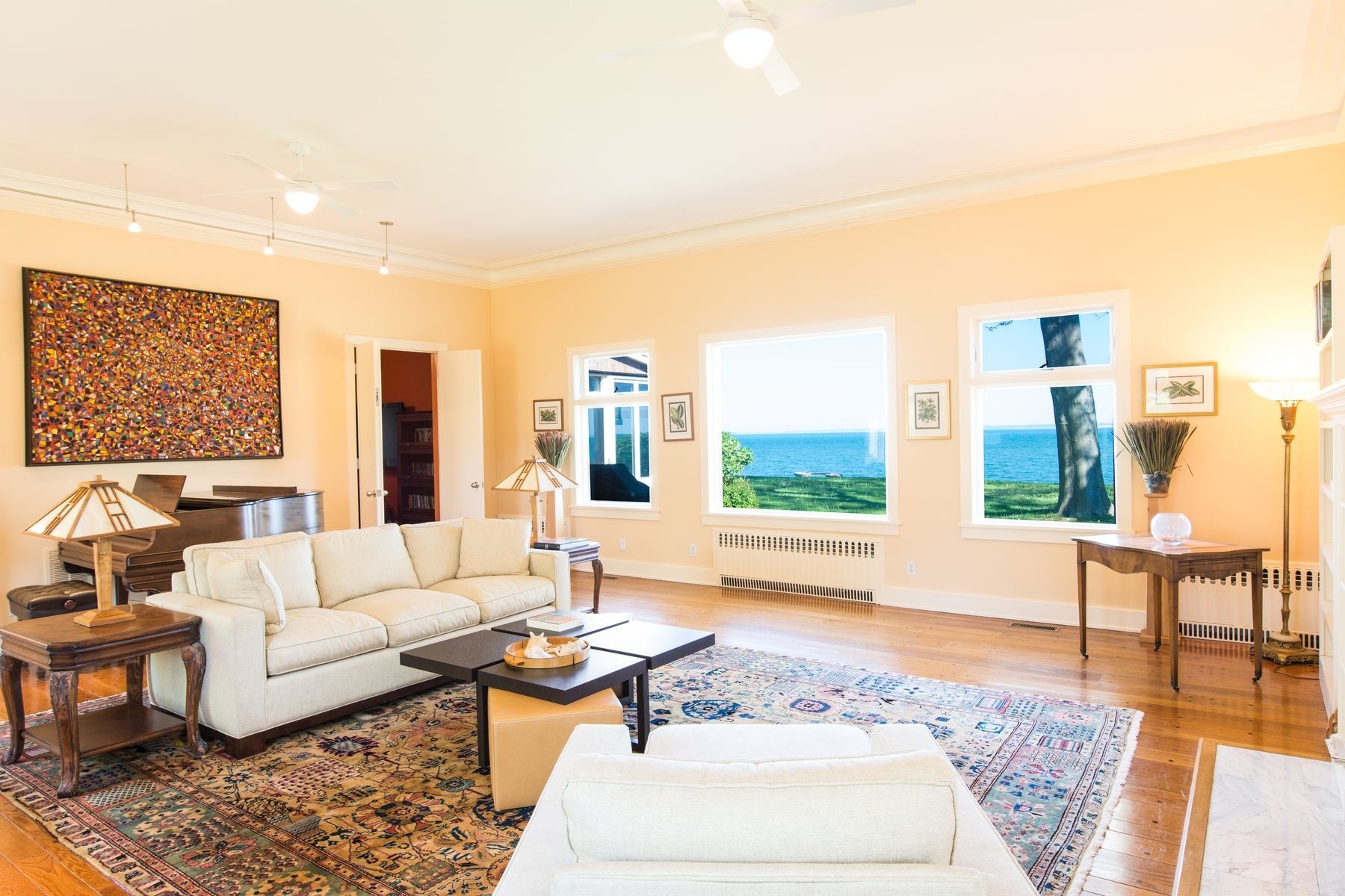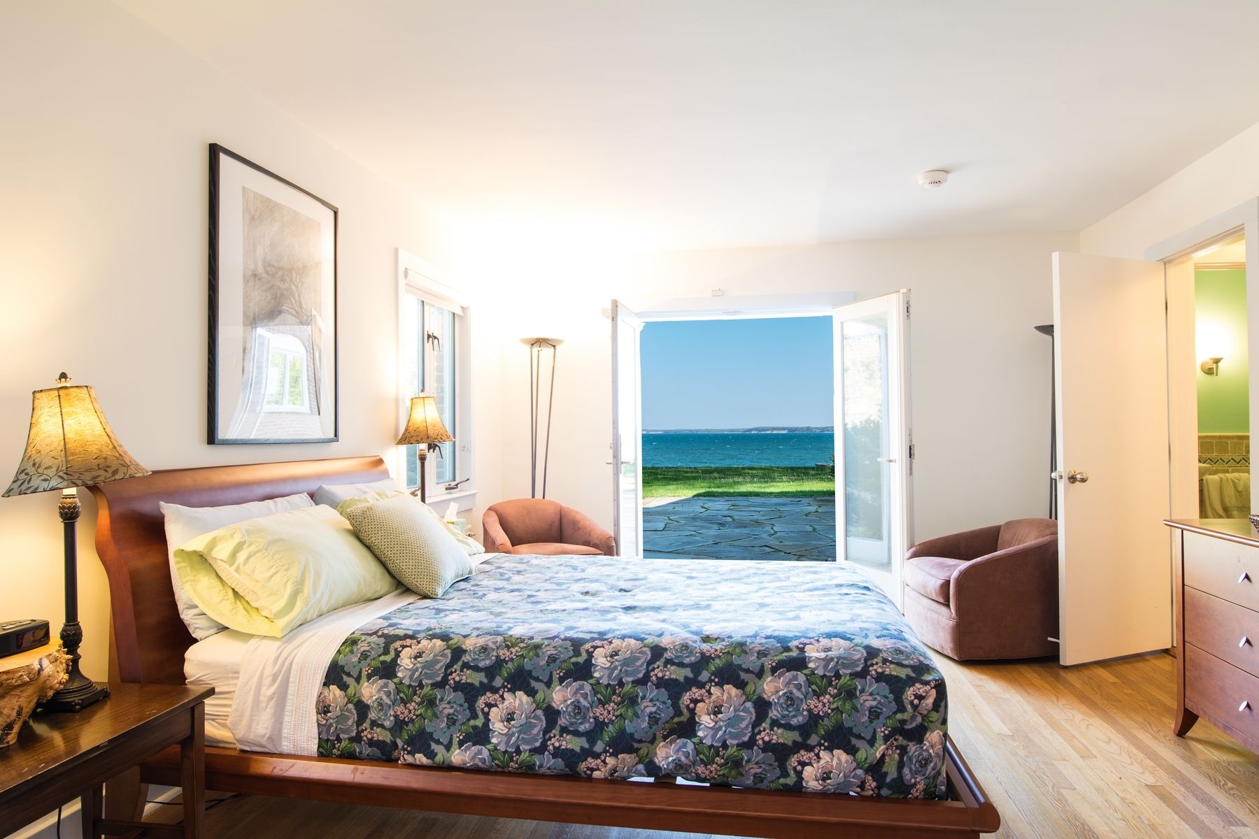 Sprawling and sumptuous first floor living spaces, along with a warm and inviting open floor plan and sweeping Bay views, are quick to greet you when entering this cozy waterside retreat.