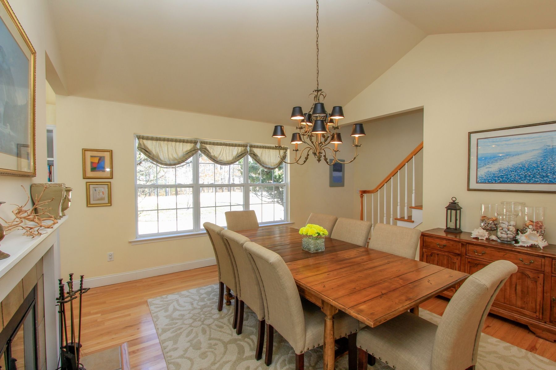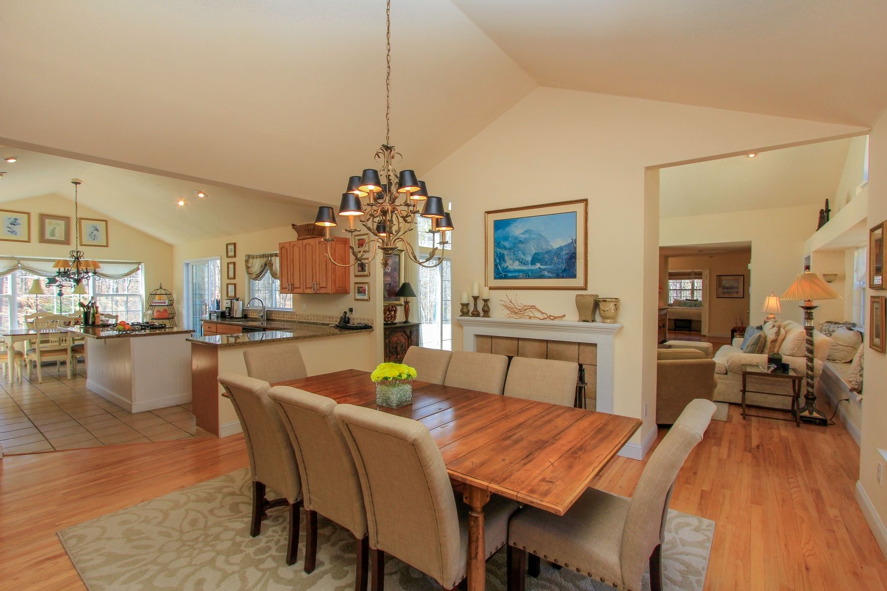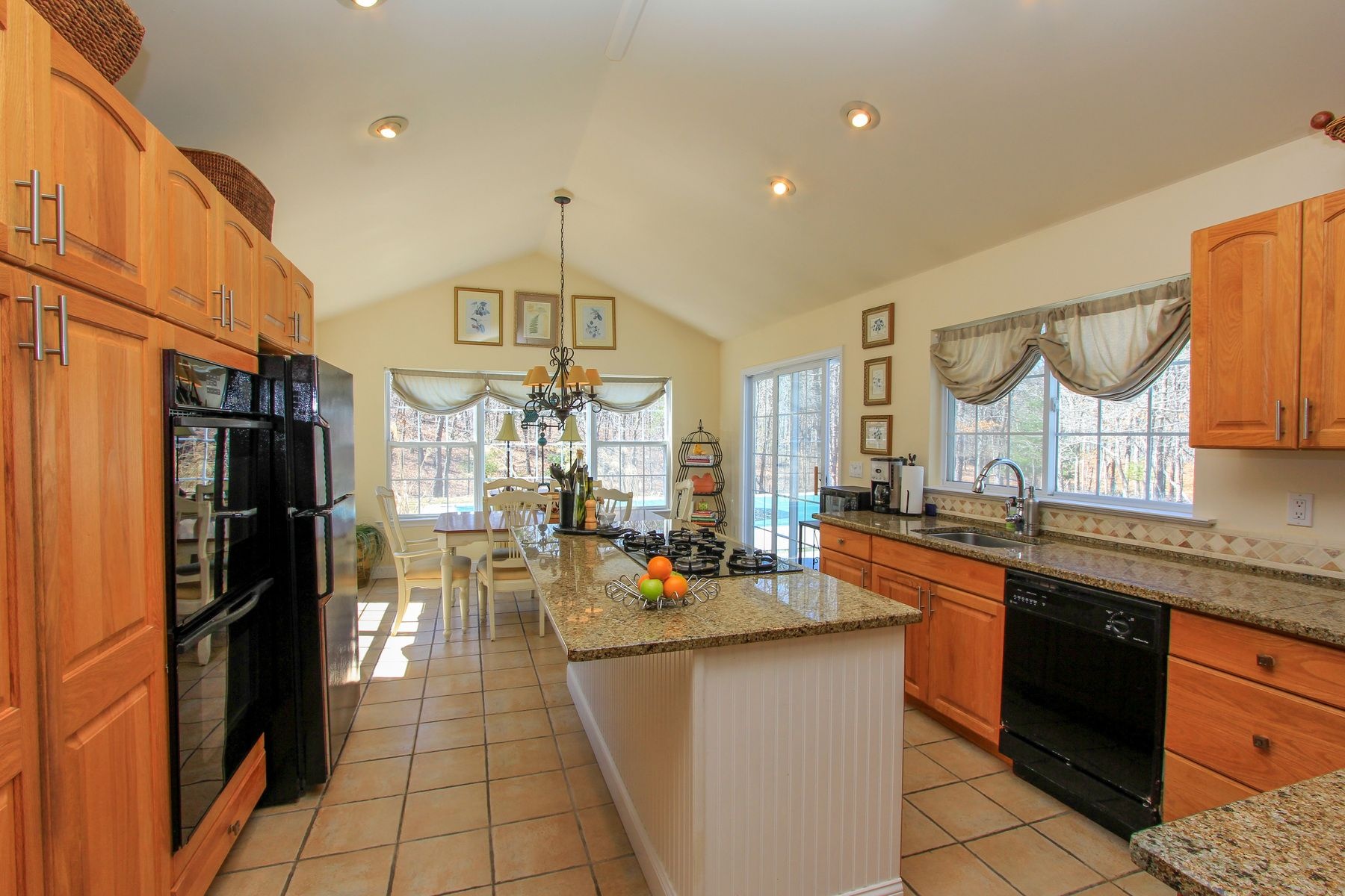 Recent changes have made this wonderful 4-bedroom, 3-bath post modern on 1.55 +/- serene acres. CAC, heated pool, open eat in kitchen even better. We have opened up the kitchen to most of the living area. This home is as bright and open as any I have seen. You enter into an entry way with the living area to the left and the downstairs master and 2 other bedrooms to the right with a guest bath. The larger master suite is on the opposite end of the home upstairs away from the other bedrooms and a quiet place to enjoy the home even when others are in the living area. It has a separate heating and A/C zone Beyond the living room is a wall with a double fireplace opening to the living room and dining room.. The kitchen is large enough to have a breakfast room at one end that opens to the deck, pool, and summer cabana area. The breakfast room can be turned into the dining room freeing up the current dining room to become a family room contiguous to the kitchen.
