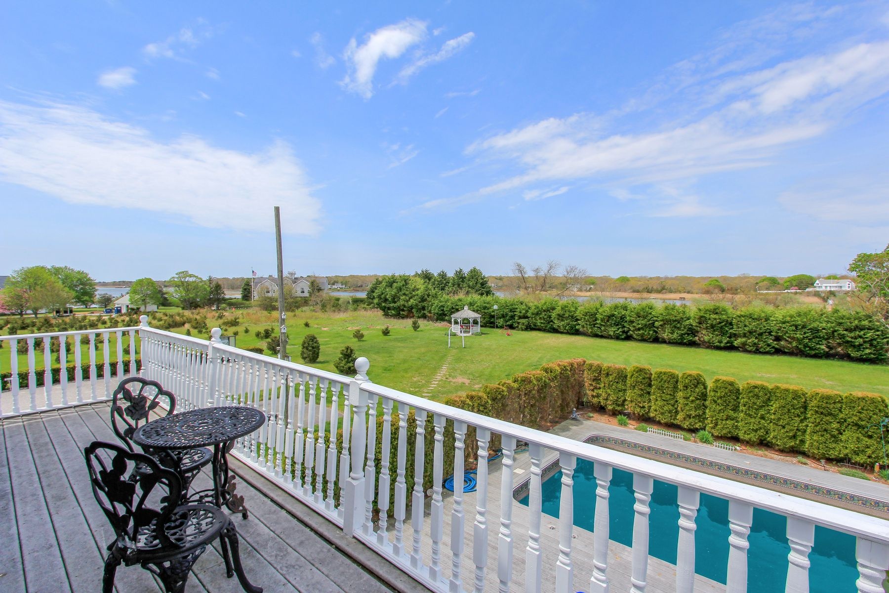 Spacious Victorian Built In 1998 On 1.53 Acres with panoramic Bay views. 8500 Sqft, 8 Bedrooms, 8.5 Baths, In-Ground Pool, Hot Tub, Fitness Center, Room For Tennis , Boat Ramp 400Ft To Your Door. Tremendous Value Bordering Remsenburg / Westhampton Beach Just Minutes To Ocean Beaches, Adjacent 1.5 acres available as well.