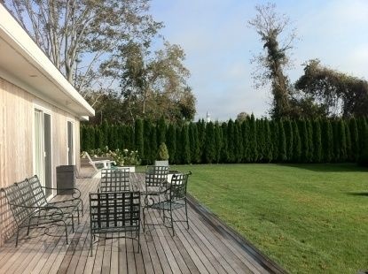 Enter into this Bridgehampton South home and be wowed by the design, the light and the land. Designed for easy living both indoors and out, this one-story four bedroom home on .6 acres has been renovated from top to bottom with custom designed finishes. Set around a courtyard, letting the light and the outdoors in, stand the living room, the kitchen, dining area, and the passage leading to the bedrooms. The living room with a wood-burning fireplace is the perfect spot for relaxing hearthside, reading a book or just enjoying time with loved ones. The top-of- the- line kitchen was devised for cooking by yourself, or with a host of helpers. Set separately are four bedrooms, two of which are en-suite. Three of the bedrooms open up to the deck with views of the lush lawn, heated gunite pool and pool house. The pool house, with two bathrooms of its' own is there for your enjoyment in the summer as a cabana room, or in the winter as a cozy getaway to relax by the second wood-burning fireplace. Pretty, pristine and perfect clearly define this home, just seconds from the village and moments from the ocean.