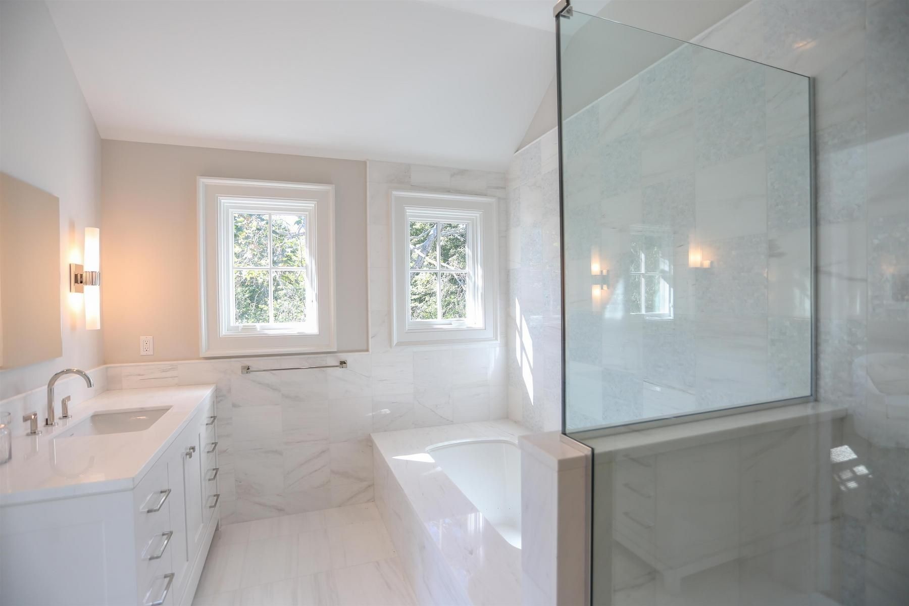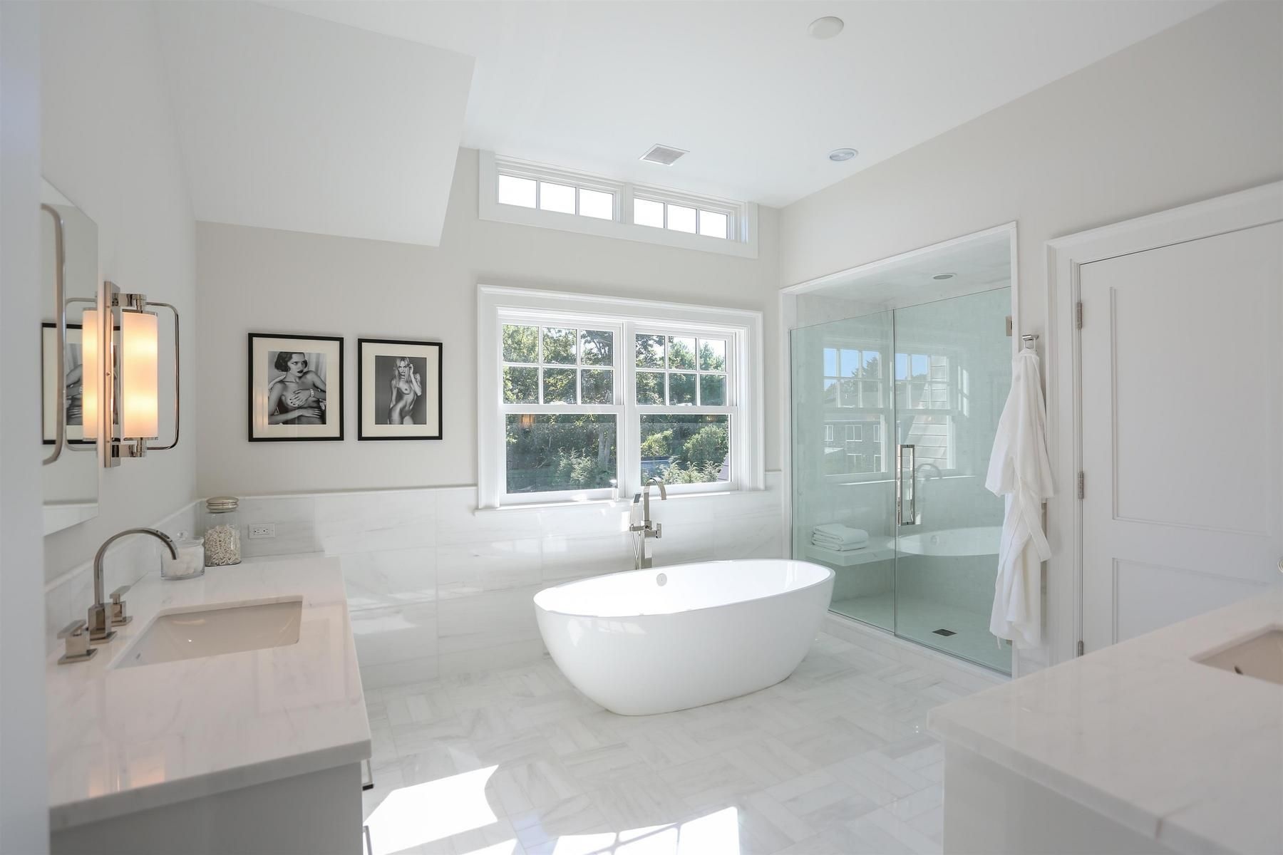 Fully completed, this stunning home situation on a private acre in Southampton Village is close to village and beaches. With over 5300 sq. ft with an additional 2000 sq ft of lower level living space, this 7 bedroom, 7 bathroom home has everything you could possibly want. A double height entry welcomes you to the beautiful white oak floors that include a great room with fireplace, state of the art eat in kitchen, large living area and a 16' X 17' dining room. The first floor is complete with a 3 car garage, powder room, mud room and pantry. Upstairs you will find the master suite that includes another fireplace, designer bathroom with spa bath, walk in closet and private balcony. A laundry room, 4 additional bedrooms and another private balcony complete the 2nd floor. The 2000 sq. ft lower level offers a gym, media room, recreational room and staff suite. Outside, both covered and uncovered patios overlook a heated, in-ground, gunite pool, a spa and professional landscaping. A must see.
