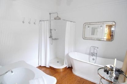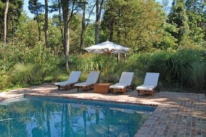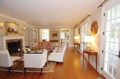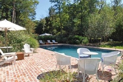 Beautifully appointed and furnished home tucked away in a quiet location offers a spacious living room with fireplace that flows out to a covered porch overlooking the magnificent heated, gunite pool surrounded by brick patios. There's a fully outfitted, center-island kitchen with breakfast area, formal dining room, 5 bedrooms (including first and second floor masters, both with fireplaces), 5 full baths and 2 half baths, laundry room, central air conditioning, The property sits on 1.3 Acres with beautiful landscaping and tall pine trees that afford privacy and tranquility.