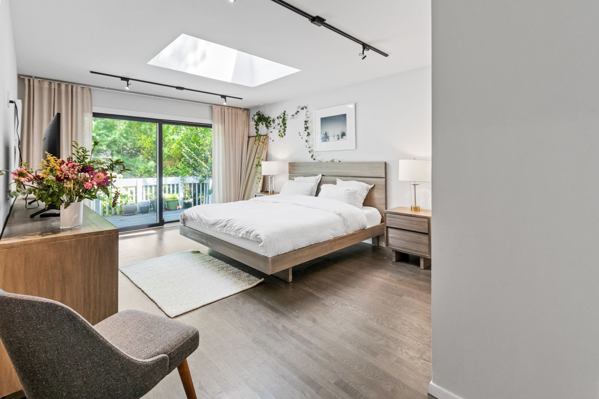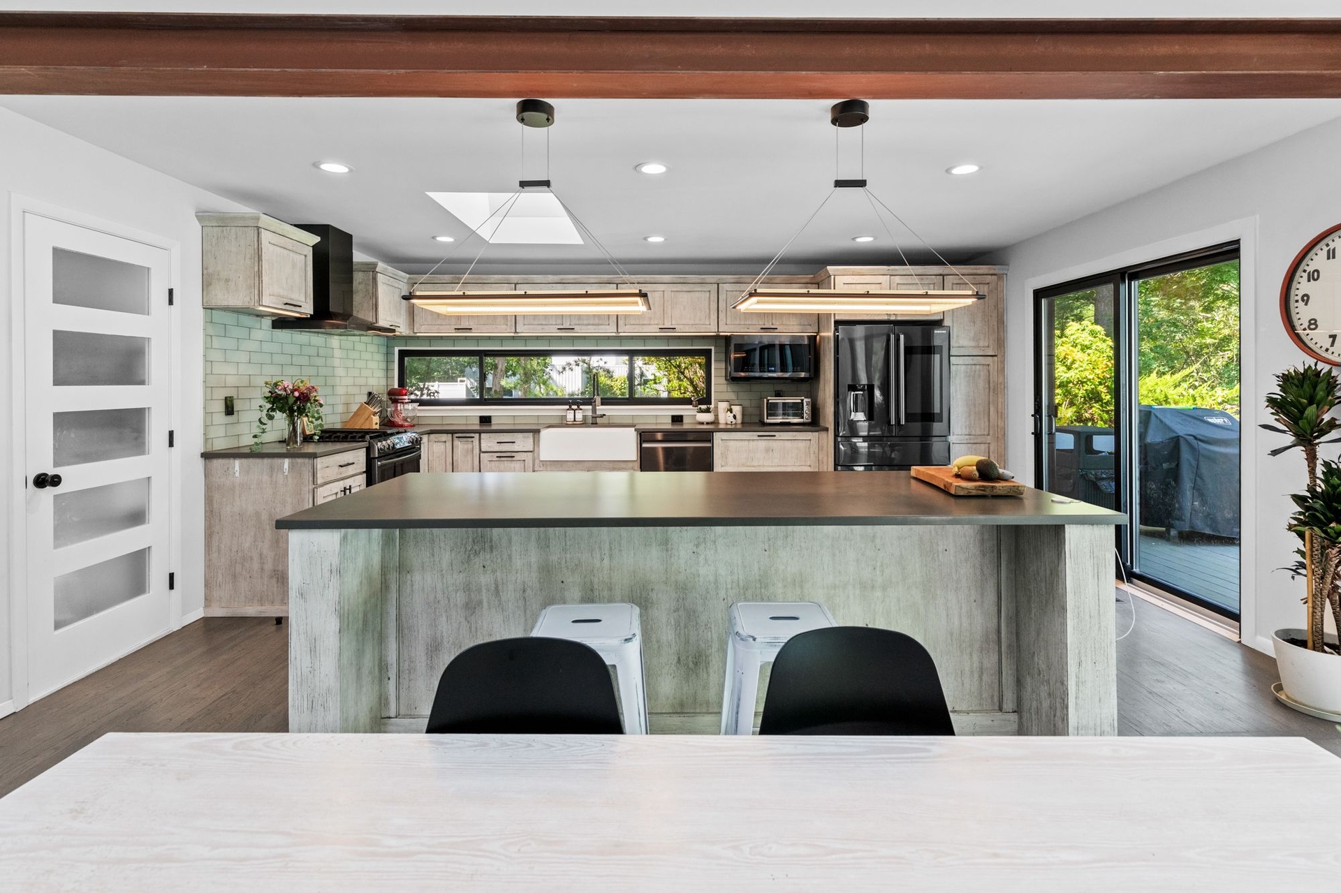 This exceptional property has been meticulously renovated and is turn key for your immediate enjoyment. As you enter you are welcomed by tall ceilings and exceptional natural light that floods in through brand new Anderson sliding doors and windows. The airy living room features a 360 degree fireplace and flows into a brand new kitchen with modern appliances and island.