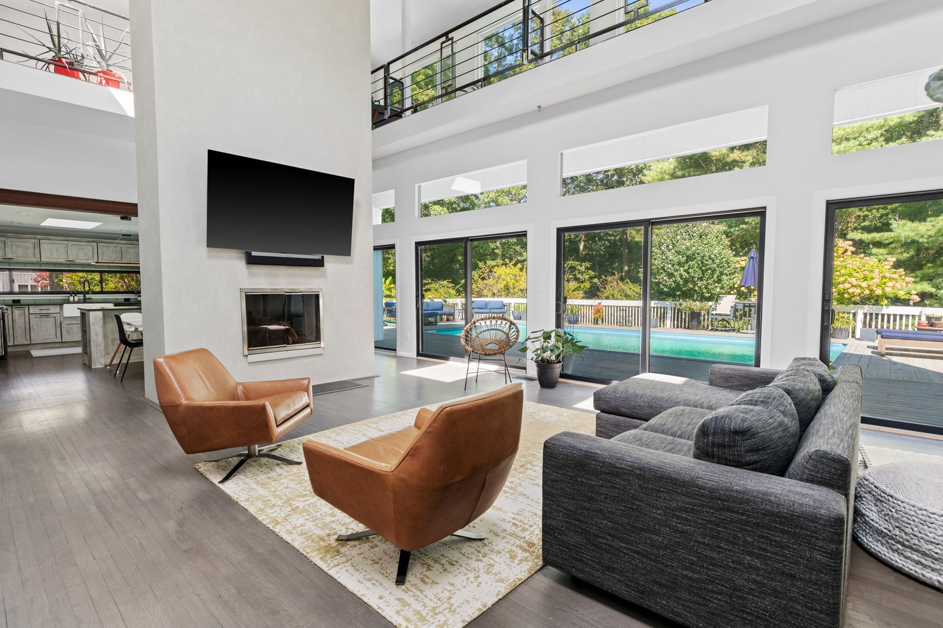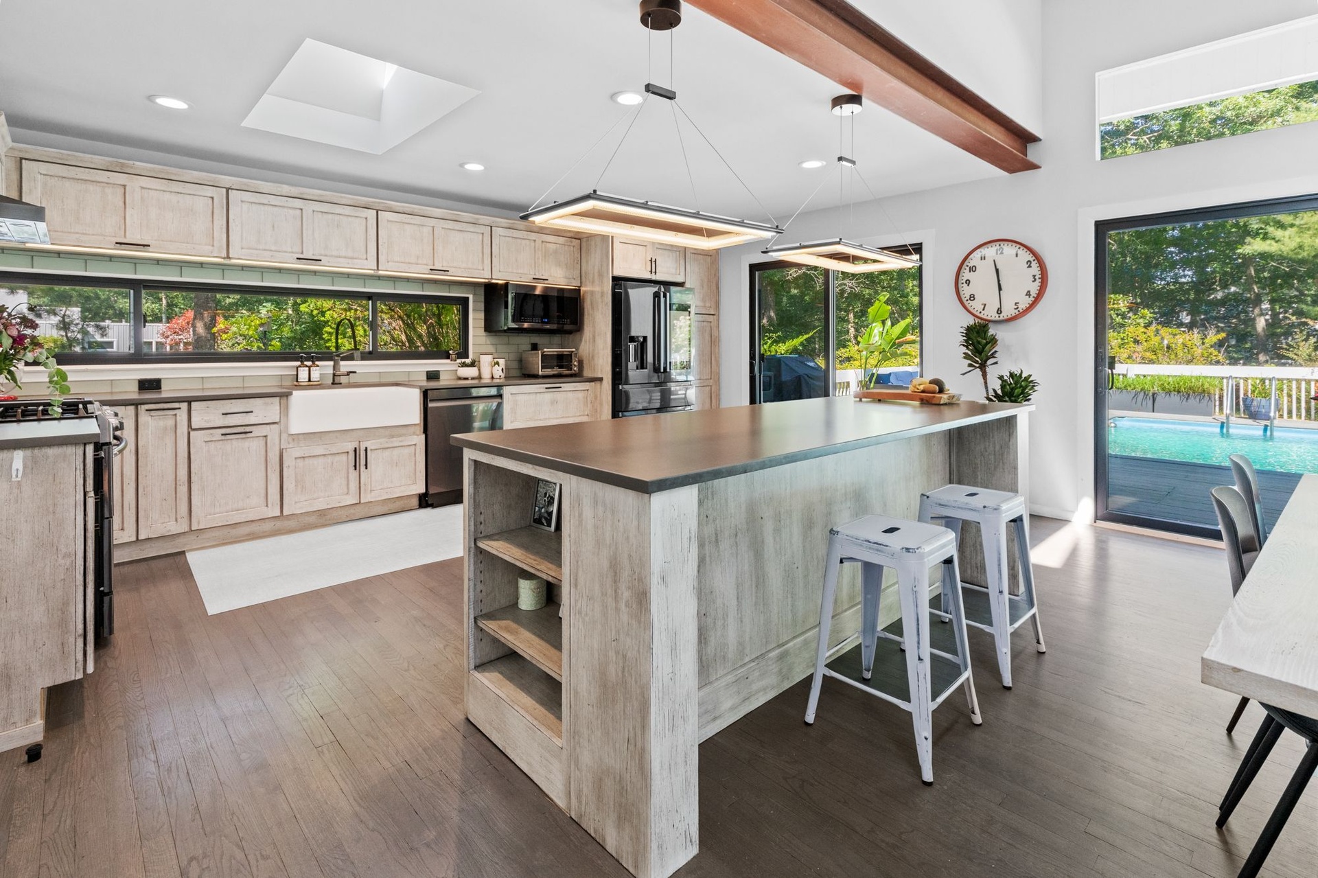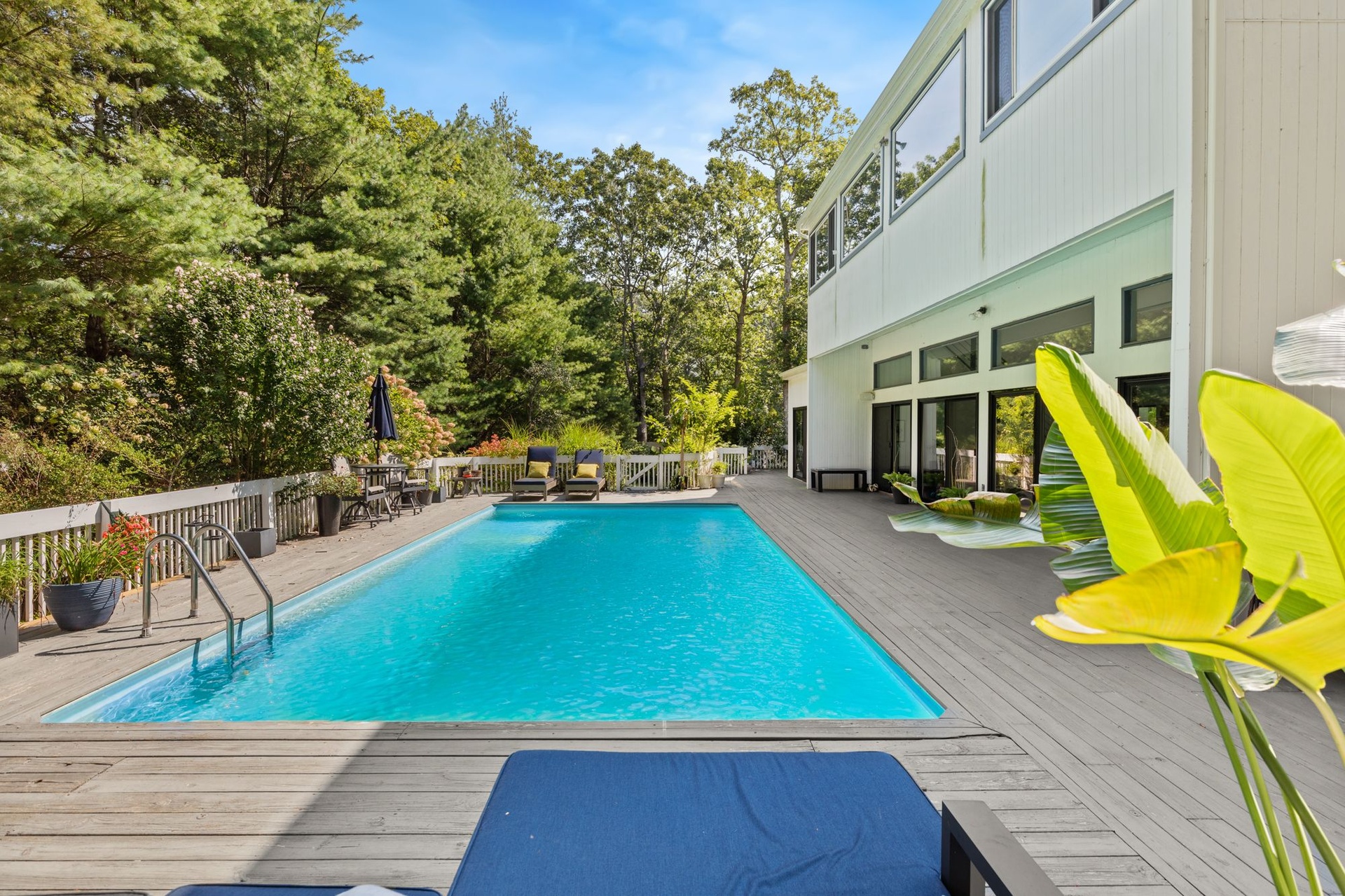The heated pool and large deck are accessed directly from the main living space, offering unparalleled indoor/outdoor living and entertaining.