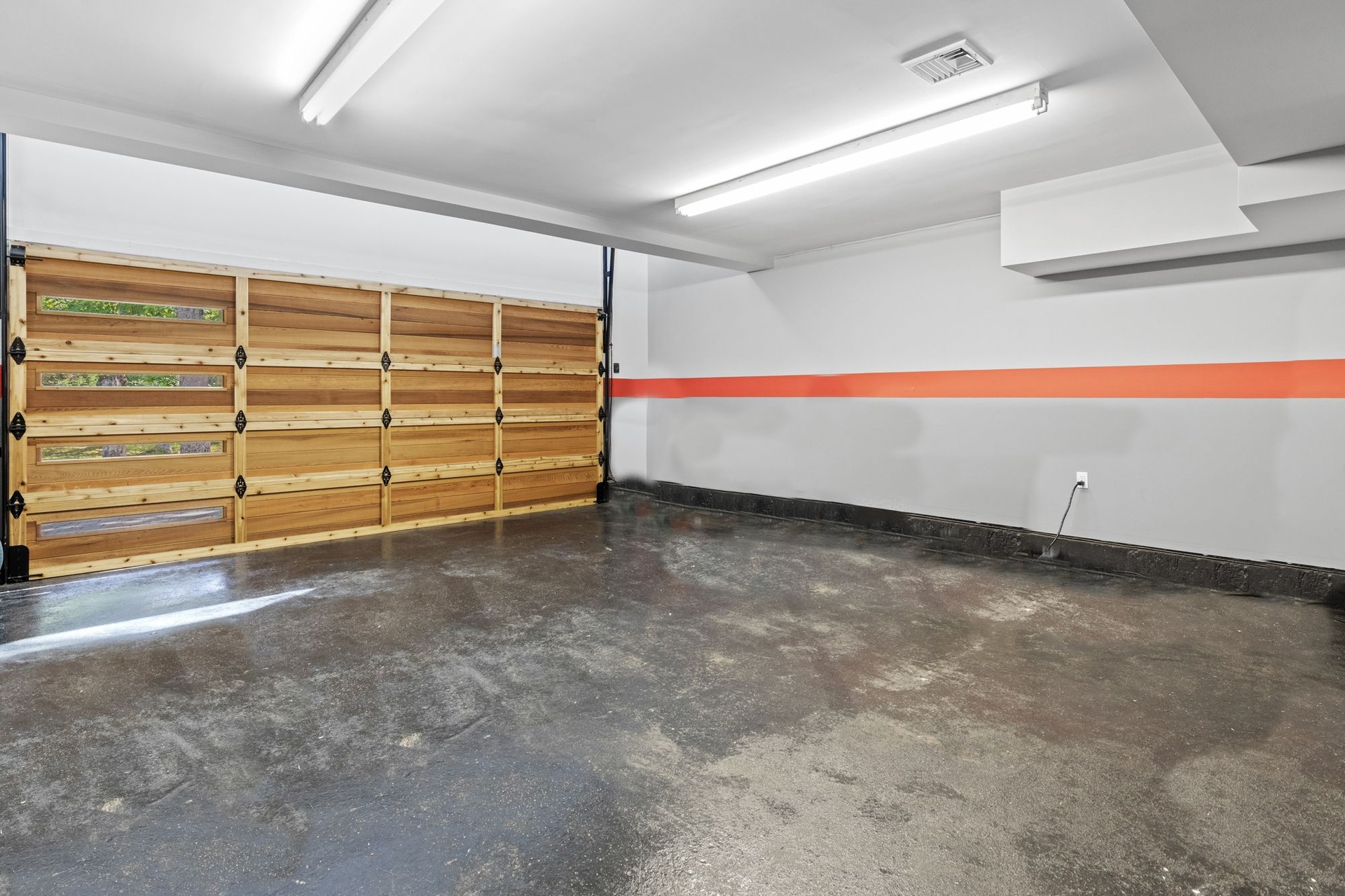 A modern two story, two car detached garage with HVAC features a custom staircase that leads to a second story finished area which can be utilized as a home office or art studio and flows out to a private deck which rounds out this unique offering.