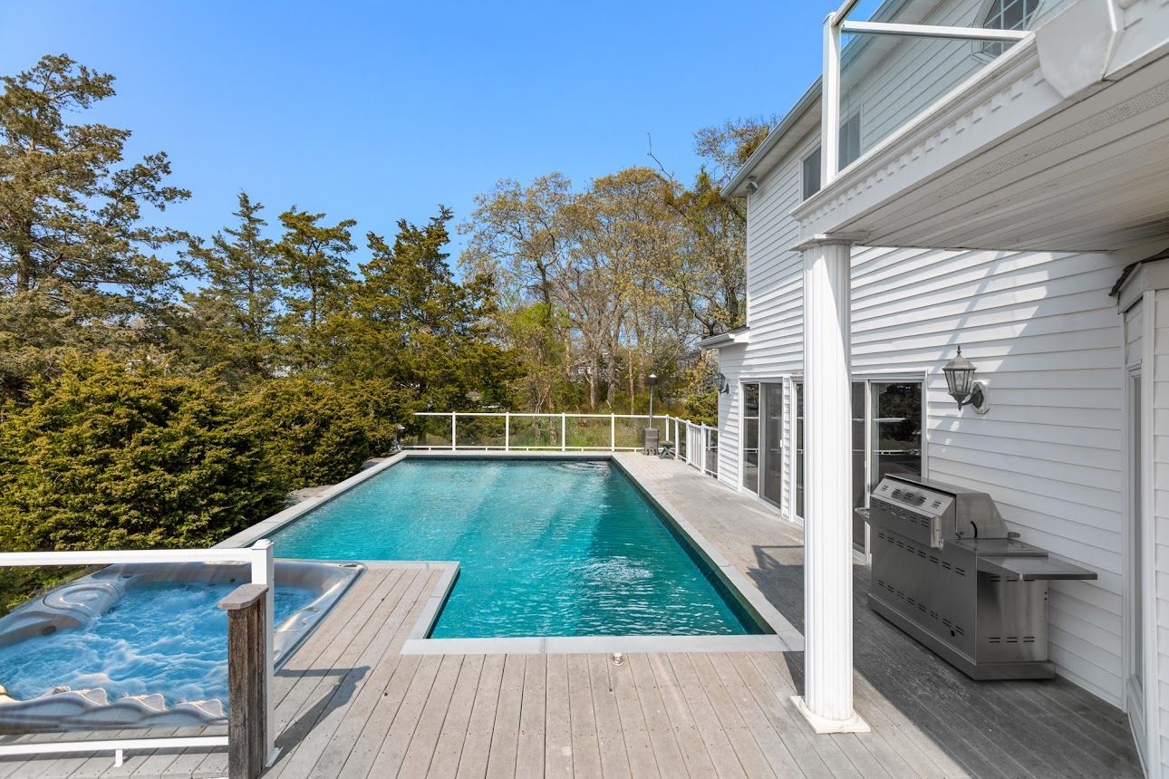 Indulge in the ultimate relaxation with the luxurious amenities this home has to offer. Take a dip in the refreshing pool, unwind in the soothing jacuzzi, or simply bask in the sun on your spacious outdoor deck. The nine-foot ceilings throughout the house create an ambiance of grandeur, while the impressive fifteen-foot ceilings in the primary bedroom provide a sense of elegance and spaciousness.