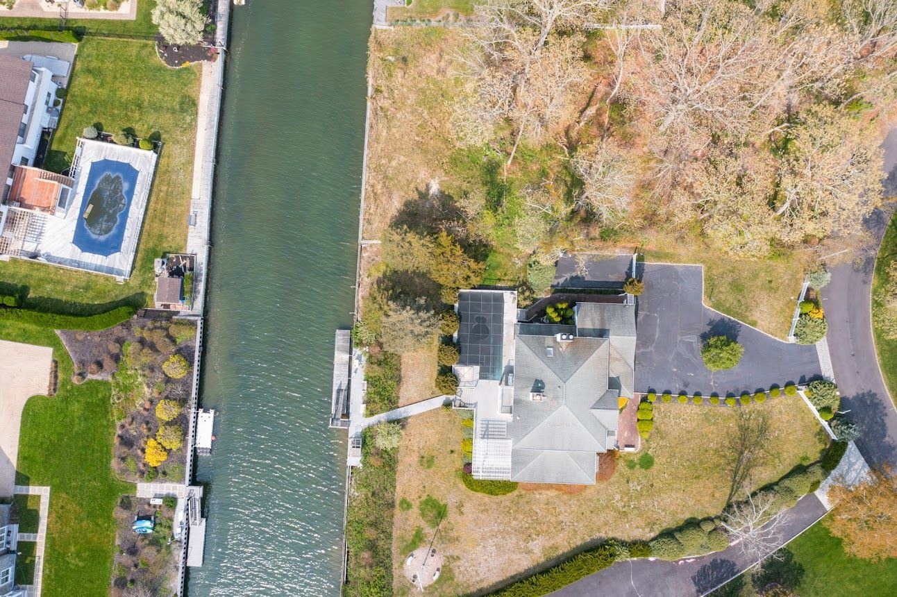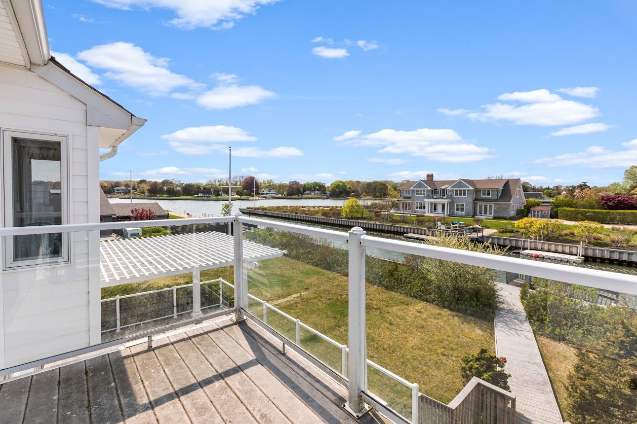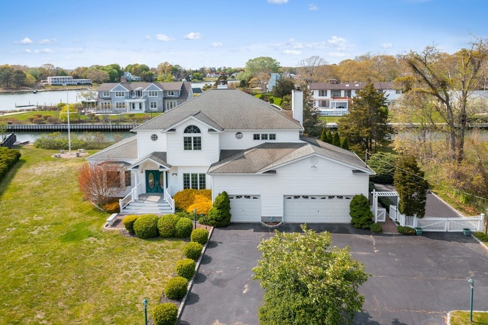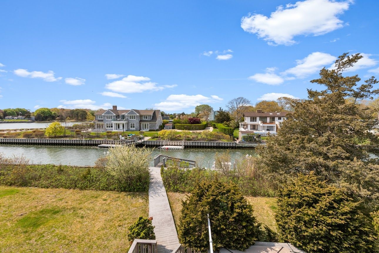 Welcome to your waterfront oasis in Hampton Bays! Nestled on an expansive .60-acre parcel of land within a prestigious private community, this exceptional residence offers an unparalleled coastal living experience. Situated on a serene cul-de-sac, the home boasts breathtaking panoramic views of the ocean, complemented by your very own private dock and an impressive 180 feet of bulkhead.