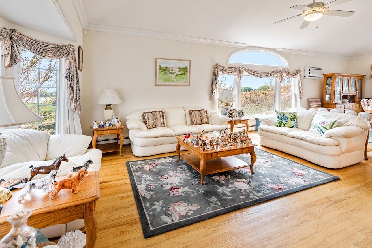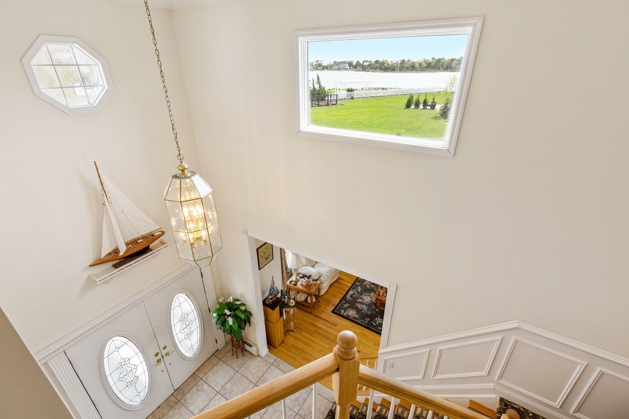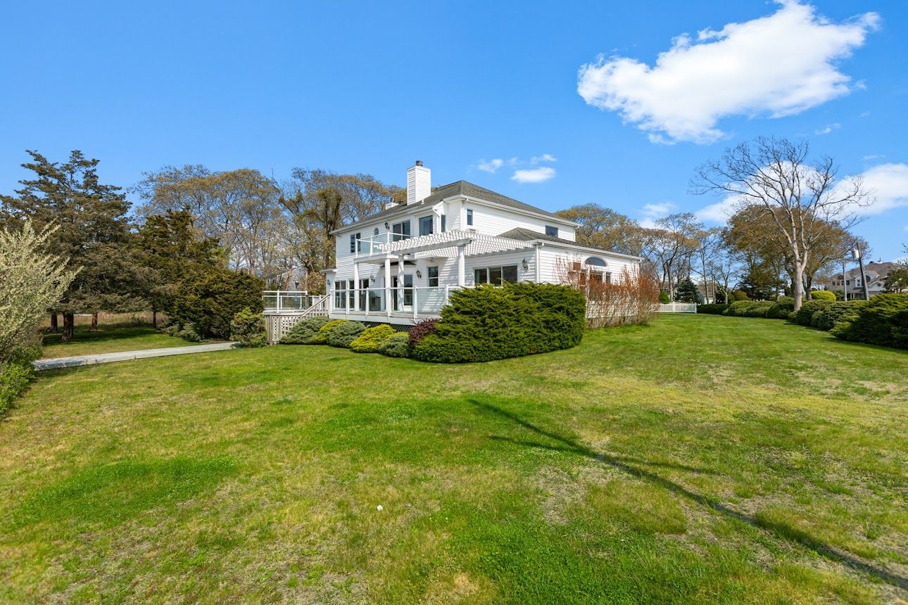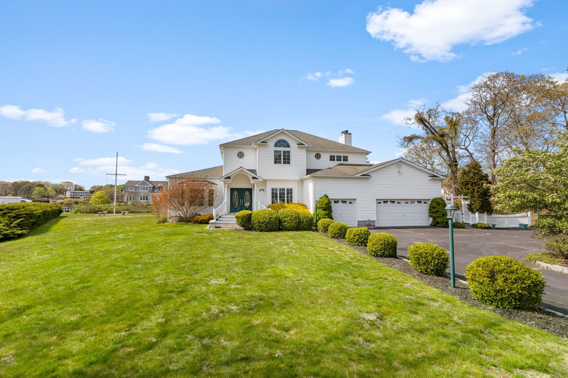Welcome to your waterfront oasis in Hampton Bays! Nestled on an expansive .60-acre parcel of land within a prestigious private community, this exceptional residence offers an unparalleled coastal living experience. Situated on a serene cul-de-sac, the home boasts breathtaking panoramic views of the ocean, complemented by your very own private dock and an impressive 180 feet of bulkhead.