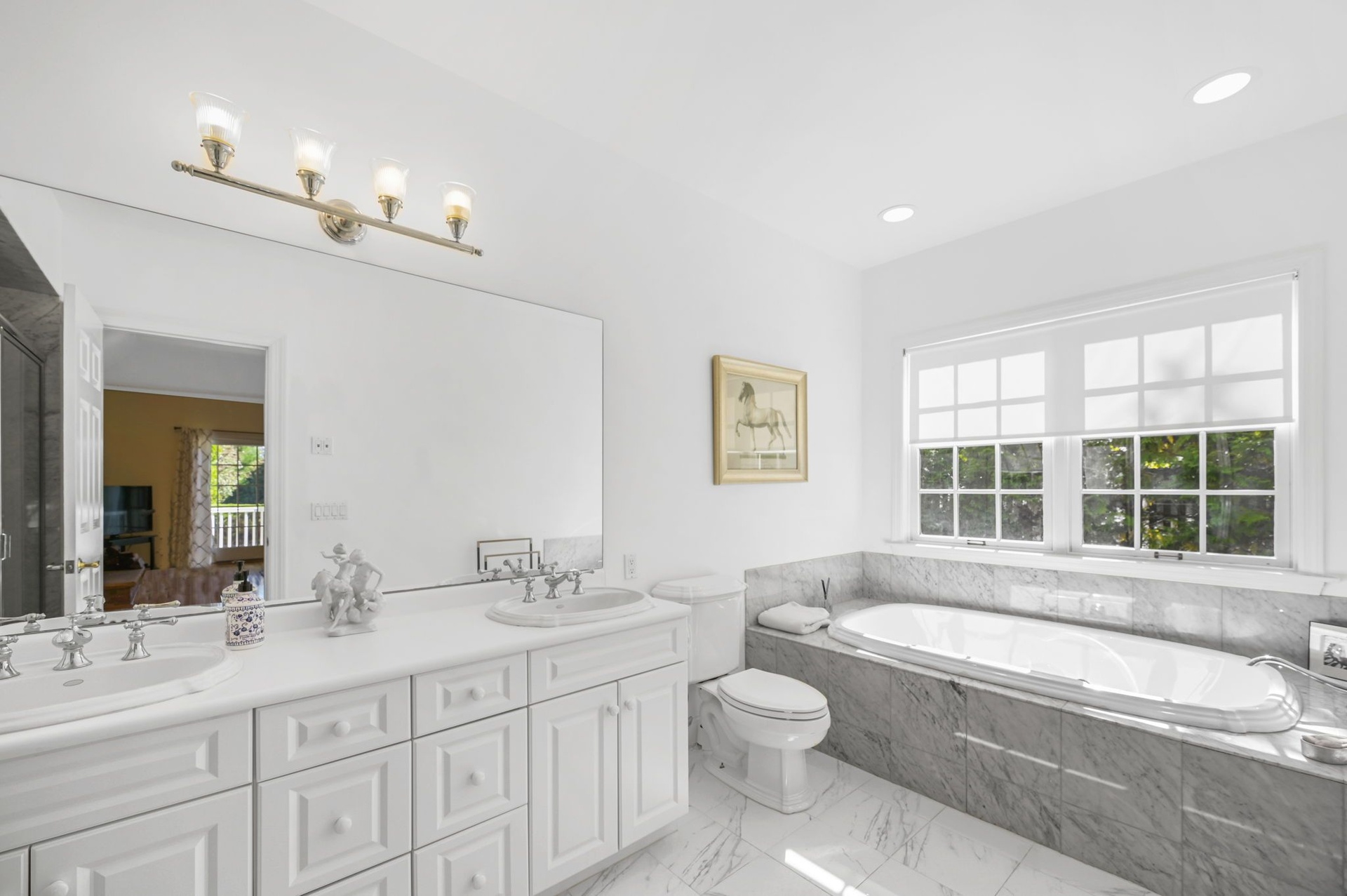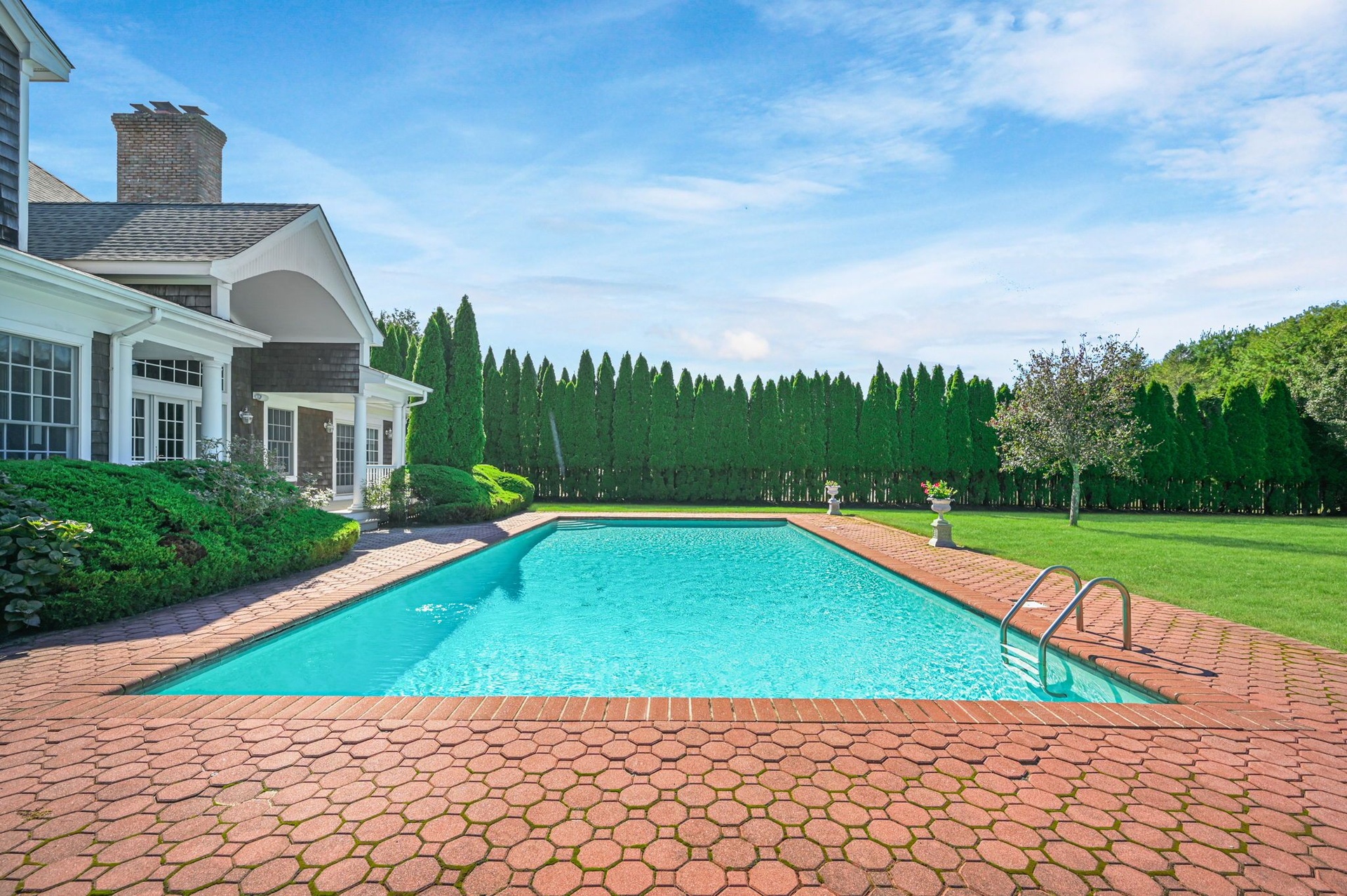 This beautiful nearly 4,000 sq ft traditional offers so much more than its prime, yet private south of the highway location. This home features a two-car attached garage, a large kitchen with island seating, breakfast area, formal dining room, living/family room, master bath with jacuzzi tub, and full basement perfect for finishing. Light-filled living areas include living room with glass doors to outdoor deck, & immaculate kitchen. Outdoors enjoy the heated gunite 20x40 pool, multiple seating areas, and meticulously maintained yard. Ocean beaches are just minutes away, and Bridgehampton and Southampton Village are in easy reach. Just 2 miles to Flying Point Beach on just under 1 acre of land.