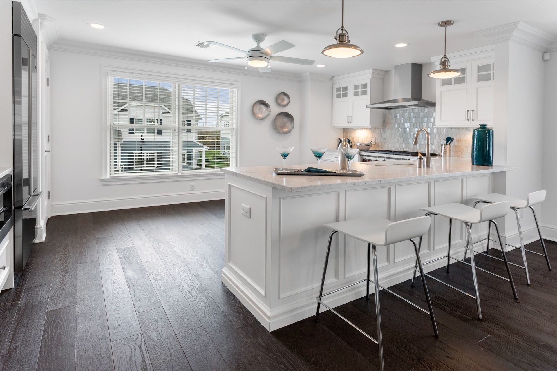 The wide open kitchens features Quartz Counter Tops and breakfast areas, Wolf Gas Range, Sub Zero Refrigerator and Microwave as well as a Bosch Dishwasher. The living rooms with gas fireplaces and wall mounted entertainment screens flows with the dining areas in the spirit of casual, easy living and luxury entertaining. The large Master Bedroom Suites have large walk-in closets, en-suite bathrooms with double sinks and large walk-in full featured showers.