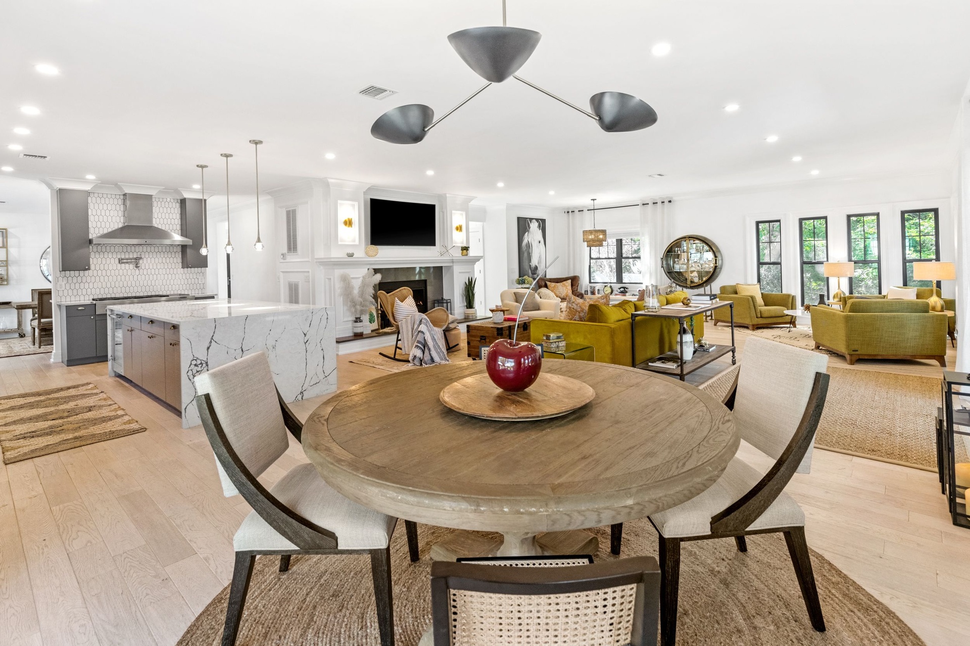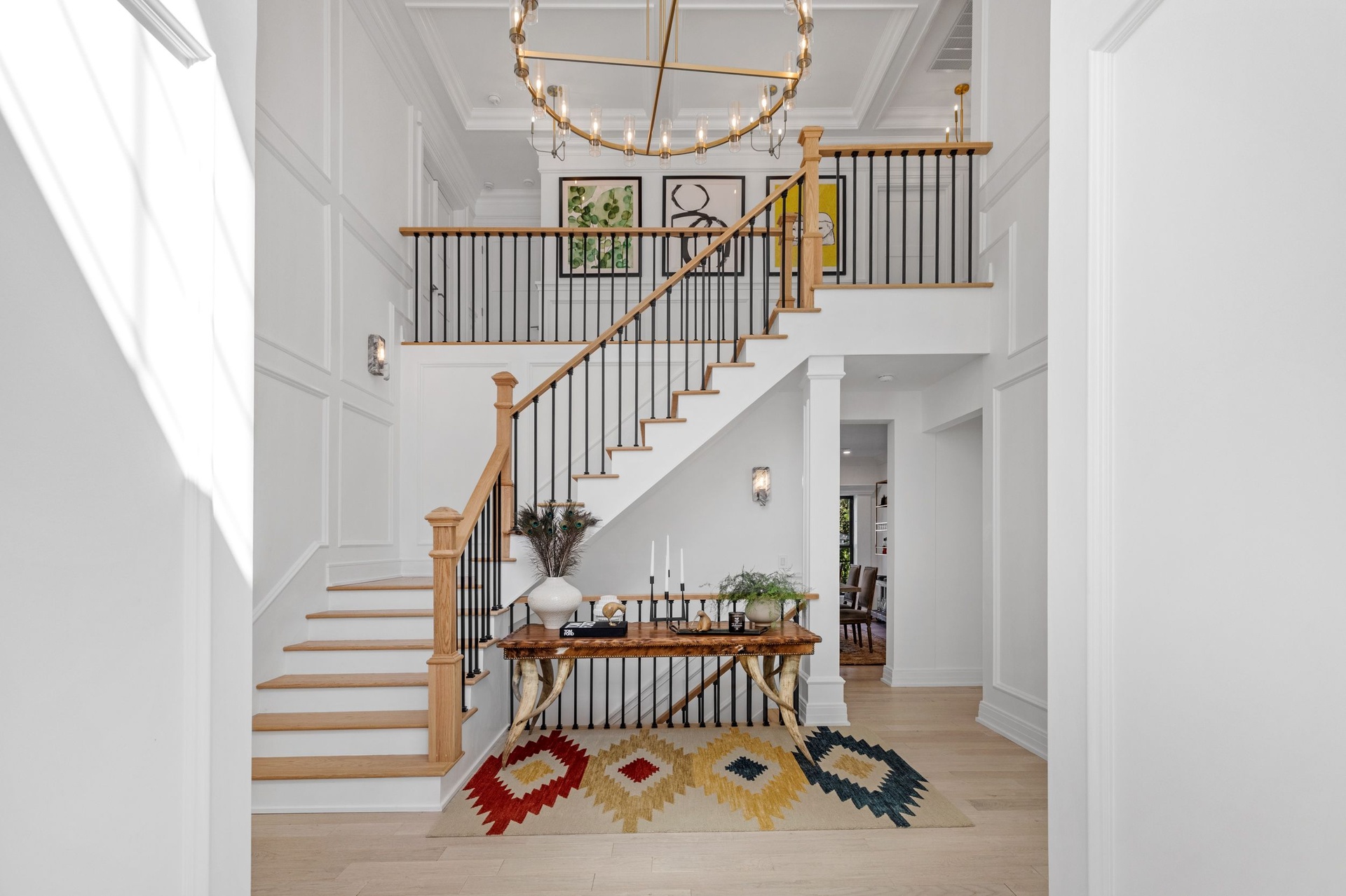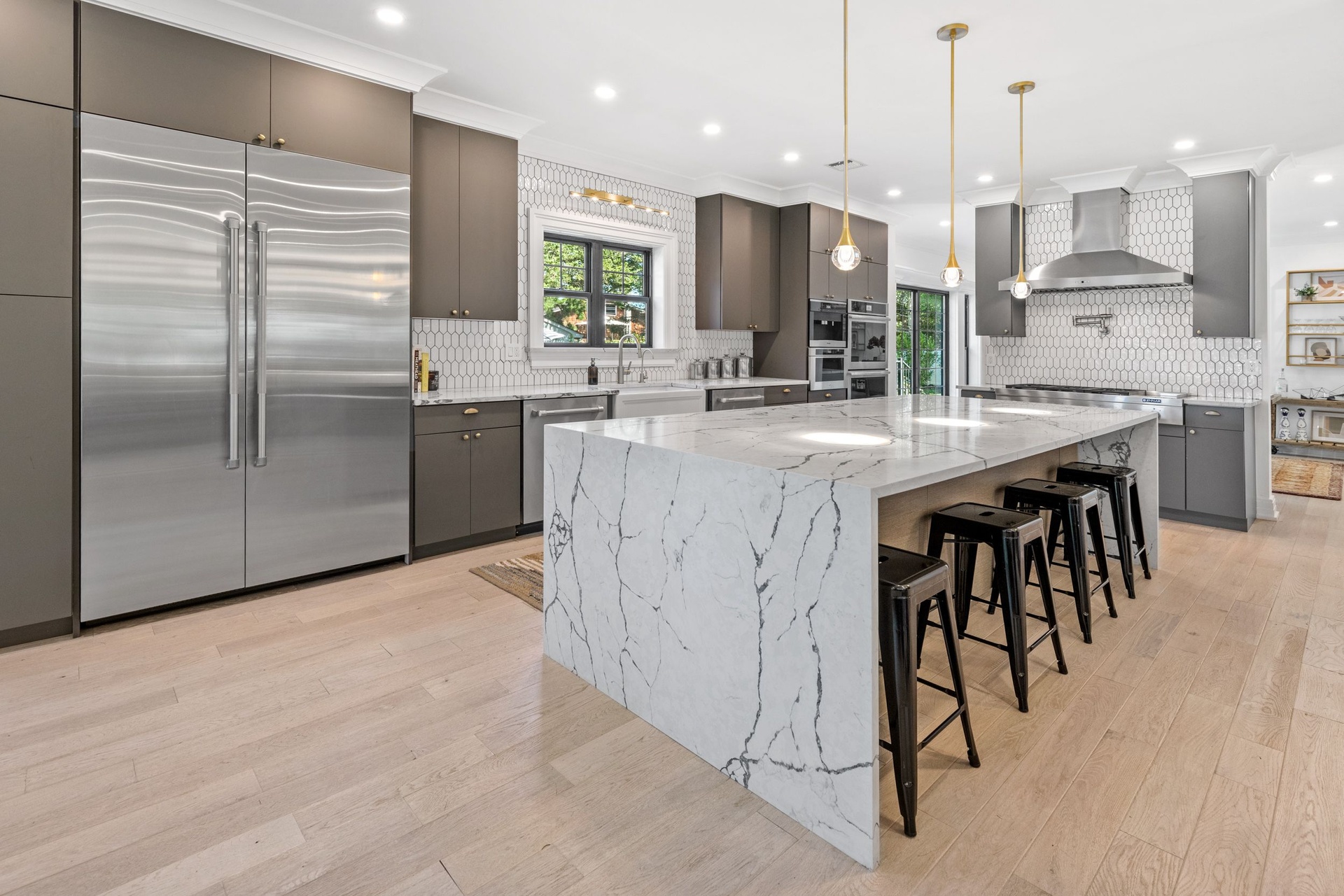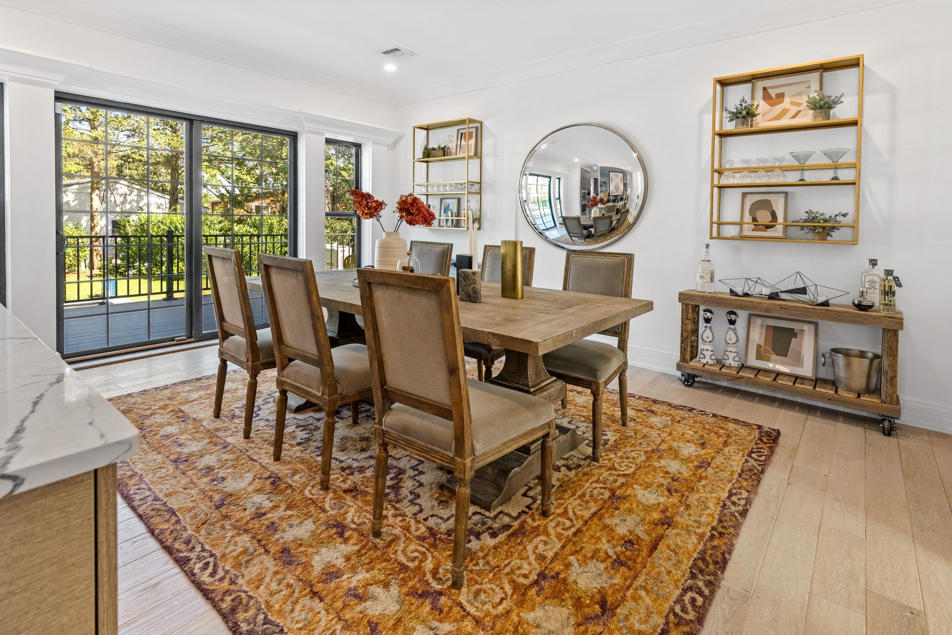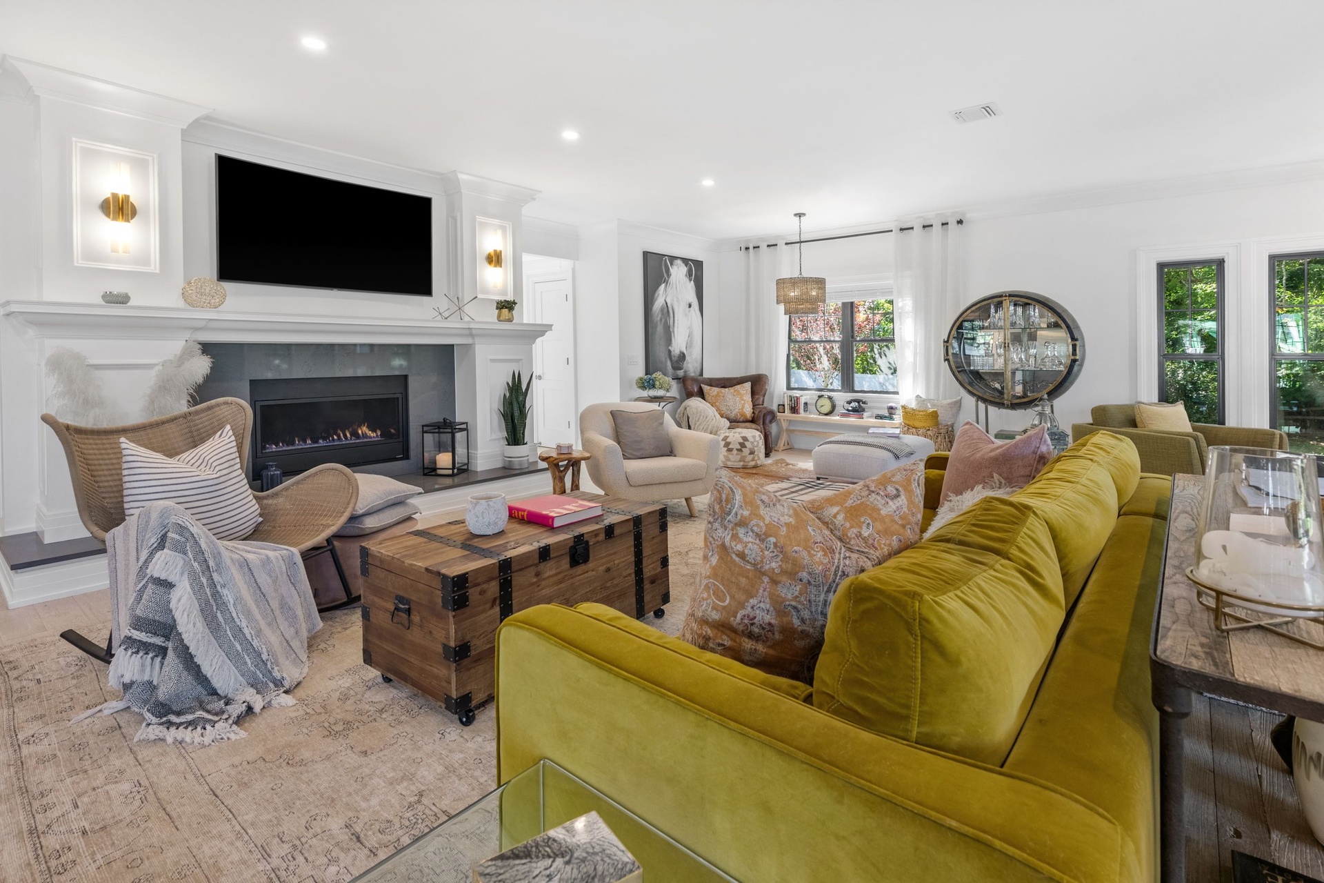 The long driveway takes you through the 1.6 acres of park like grounds, that lead to this enchanting home nicknamed "The Treehouse". Surrounded by nature, this completely renovated, three level home offers everything you will need in a Hamptons getaway. Enter the main level through the steel and glass double doors that open to a soaring double height foyer with custom woodwork throughout the walls and ceiling. The main level was deigned for entertainment so each room effortlessly flows both indoors and outdoors, offering plenty of space to gather. The living room is anchored by a commanding, custom made, gas fireplace which creates a cozy atmosphere in a space that offers plenty of room to spread out and relax. The completely open, custom kitchen comes equipped with all high-end appliances including a 48 inch built-in fridge, two dishwashers, a wine fridge, built-in microwave, two wall ovens, a plumbed Miele coffee maker, and a six burner gas cooktop. This is finished with an over 9 foot quartz waterfall island with cabinet storage on both sides. A separate formal dining, with wet bar, is directly off the kitchen for those special occasions. Finishing the main level is a guest suite, with custom closets, an en-suite bathroom, and a private courtyard. On the second level, you'll find the primary suite, which is the entire left wing of the home. It includes another custom built gas fireplace, two custom closets, an en-suite bathroom featuring a soaking tub, double vanity, and a double walk-in shower. This suite also includes a private deck that overlooks the treetops, with views of Peconic Bay that are perfect for the most beautiful sunsets. The right wing includes two guest bedrooms, a full bathroom with walk-in shower and soaking tub, and a laundry room with two washers and dryers. Down the staircase to the lower level you'll enter the full bar which features another quartz island, bar fridge, wine fridge, and ice maker. Off the bar, you can enter the 4 car garage that also includes a giant storage room. Off the other side of the bar, you'll find the media room and the gym, which includes another full bathroom. The best part of the house waits for you outside where you'll find the gunite salt water pool with built-in spa. Decks wrap around two sides of the house and overlook the grounds, are perfect for outdoor dining or for lounging around in the morning. All of this is surrounded by Cold Spring Pond where you can enjoy swimming, water sports, and shellfishing, steps from your front door. Located just minutes from Southampton Village, restaurants, and award winning beaches.