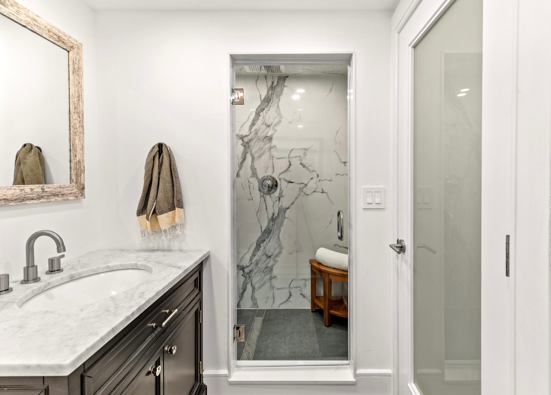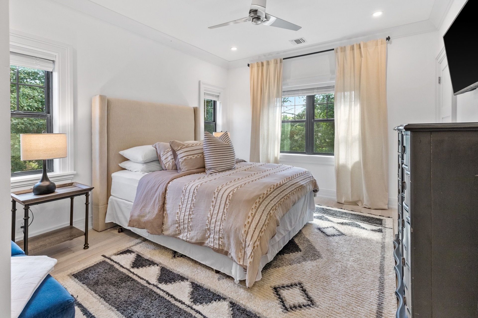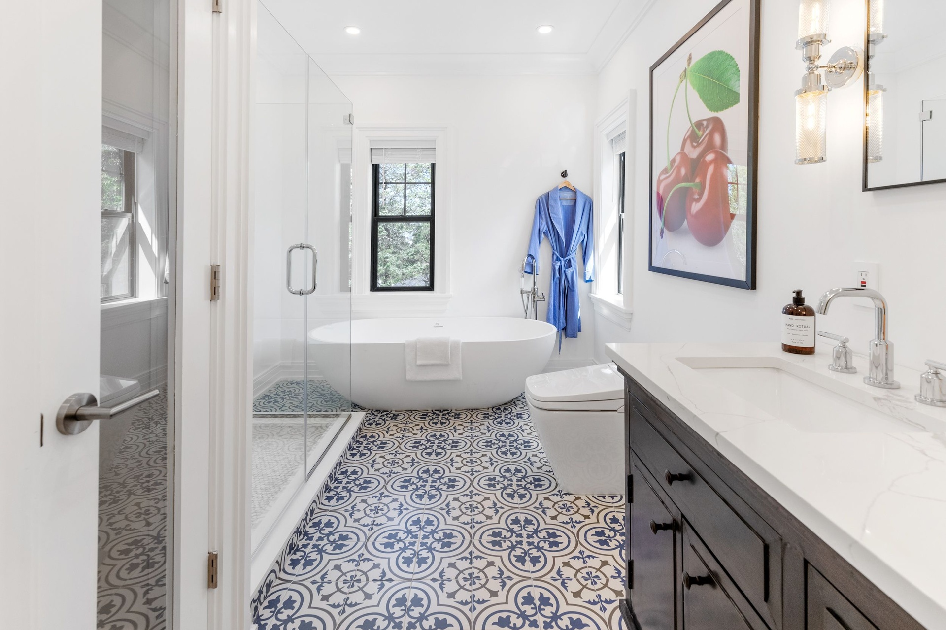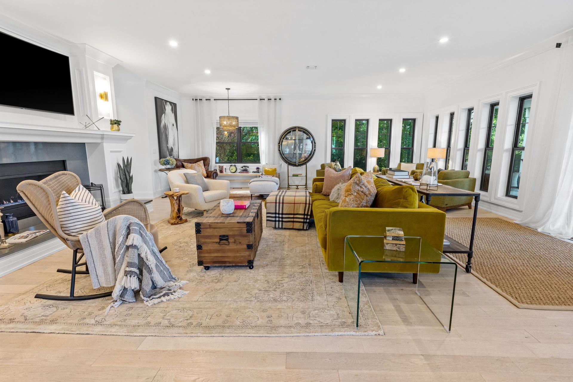The long driveway takes you through the 1.6 acres of park like grounds, that lead to this enchanting home nicknamed "The Treehouse". Surrounded by nature, this completely renovated, three level home offers everything you will need in a Hamptons getaway. Enter the main level through the steel and glass double doors that open to a soaring double height foyer with custom woodwork throughout the walls and ceiling. The main level was deigned for entertainment so each room effortlessly flows both indoors and outdoors, offering plenty of space to gather. The living room is anchored by a commanding, custom made, gas fireplace which creates a cozy atmosphere in a space that offers plenty of room to spread out and relax. The completely open, custom kitchen comes equipped with all high-end appliances including a 48 inch built-in fridge, two dishwashers, a wine fridge, built-in microwave, two wall ovens, a plumbed Miele coffee maker, and a six burner gas cooktop. This is finished with an over 9 foot quartz waterfall island with cabinet storage on both sides. A separate formal dining, with wet bar, is directly off the kitchen for those special occasions. Finishing the main level is a guest suite, with custom closets, an en-suite bathroom, and a private courtyard. On the second level, you'll find the primary suite, which is the entire left wing of the home. It includes another custom built gas fireplace, two custom closets, an en-suite bathroom featuring a soaking tub, double vanity, and a double walk-in shower. This suite also includes a private deck that overlooks the treetops, with views of Peconic Bay that are perfect for the most beautiful sunsets. The right wing includes two guest bedrooms, a full bathroom with walk-in shower and soaking tub, and a laundry room with two washers and dryers. Down the staircase to the lower level you'll enter the full bar which features another quartz island, bar fridge, wine fridge, and ice maker. Off the bar, you can enter the 4 car garage that also includes a giant storage room. Off the other side of the bar, you'll find the media room and the gym, which includes another full bathroom. The best part of the house waits for you outside where you'll find the gunite salt water pool with built-in spa. Decks wrap around two sides of the house and overlook the grounds, are perfect for outdoor dining or for lounging around in the morning. All of this is surrounded by Cold Spring Pond where you can enjoy swimming, water sports, and shellfishing, steps from your front door. Located just minutes from Southampton Village, restaurants, and award winning beaches.