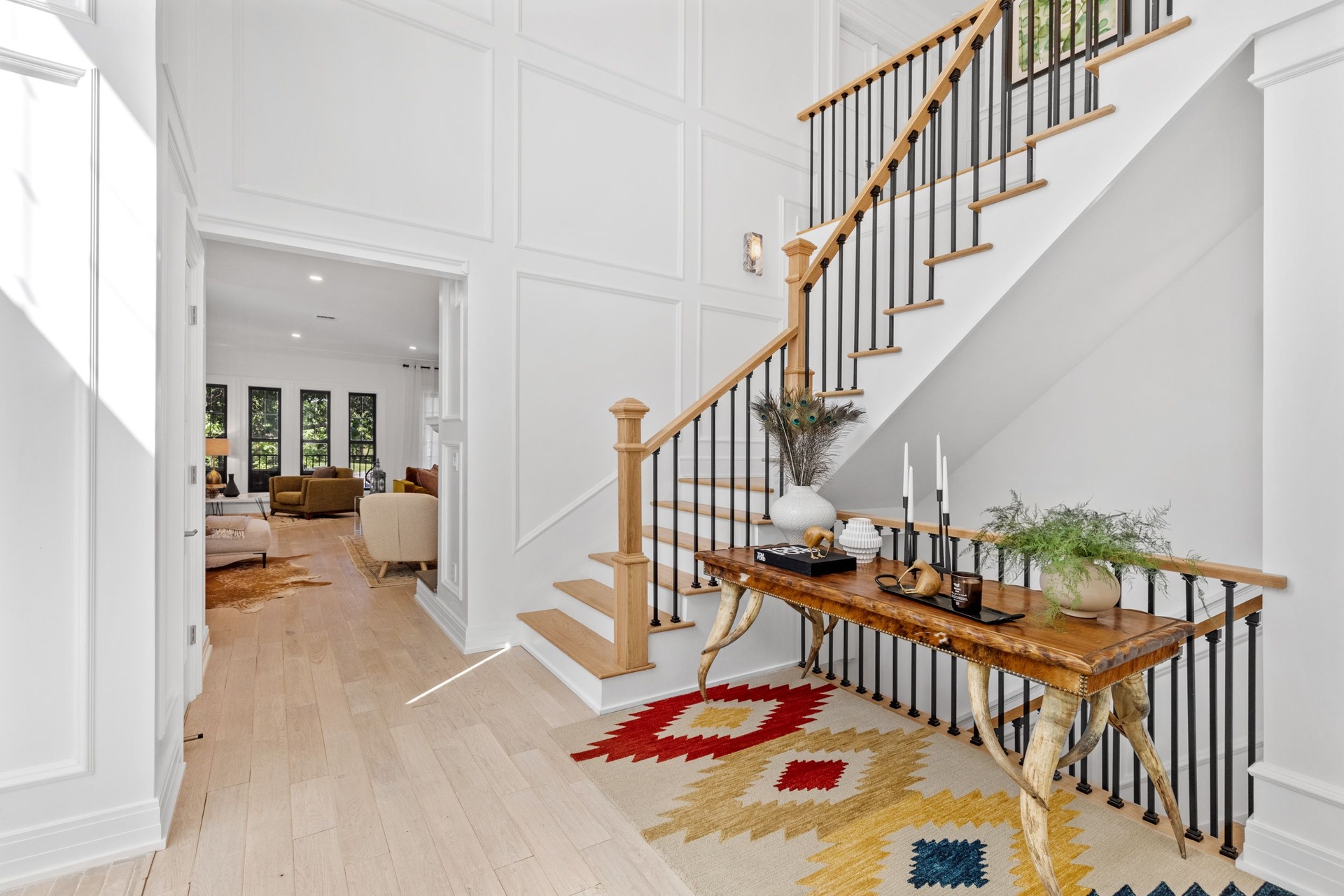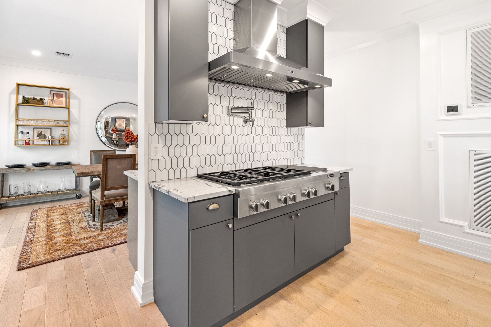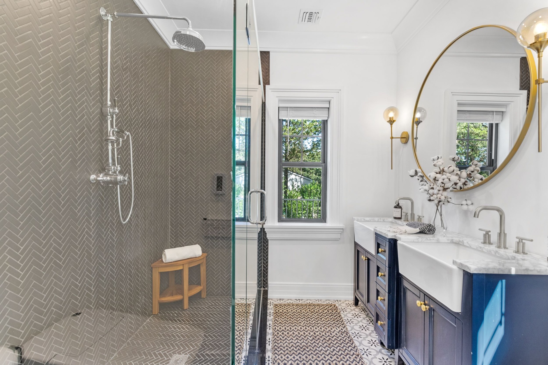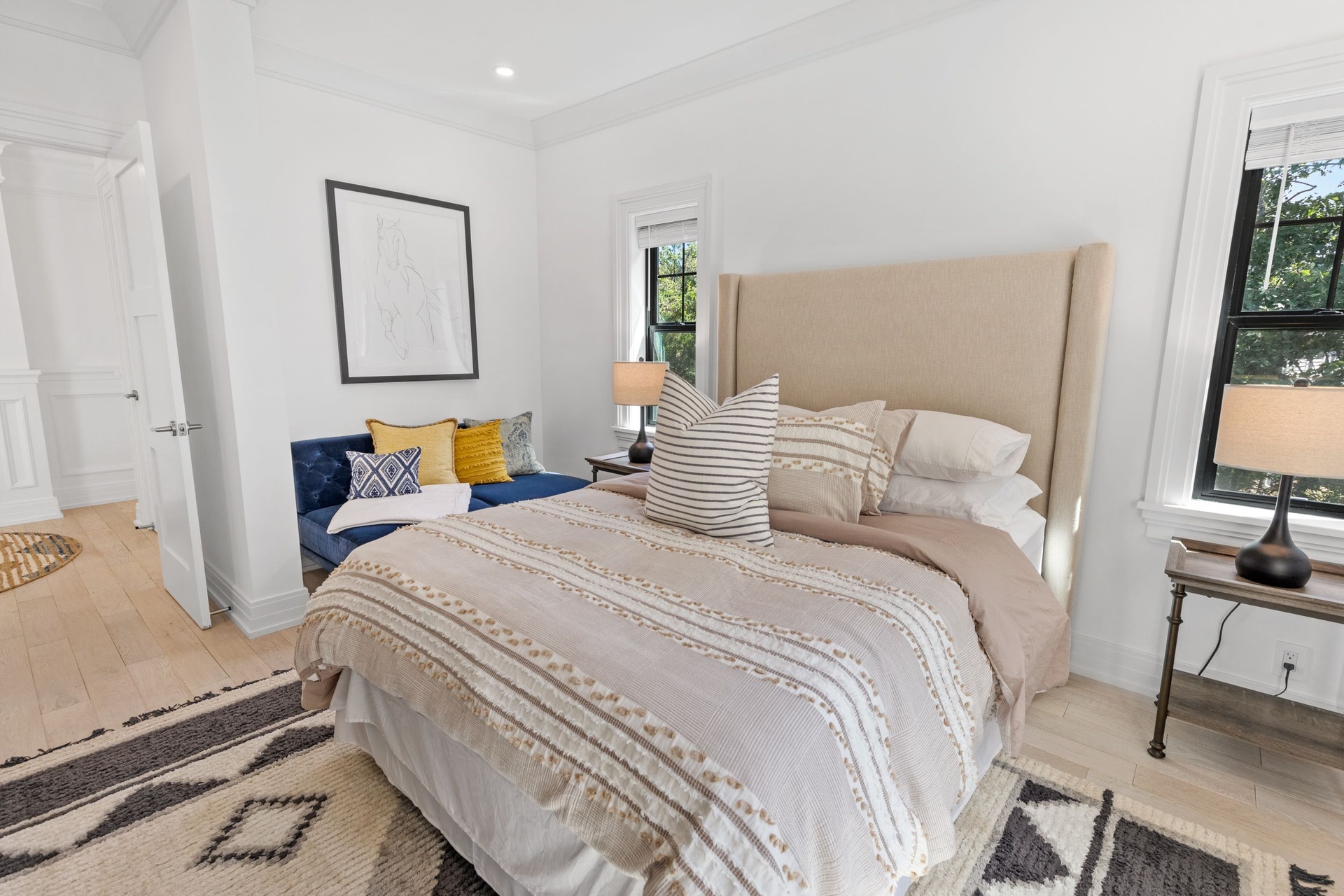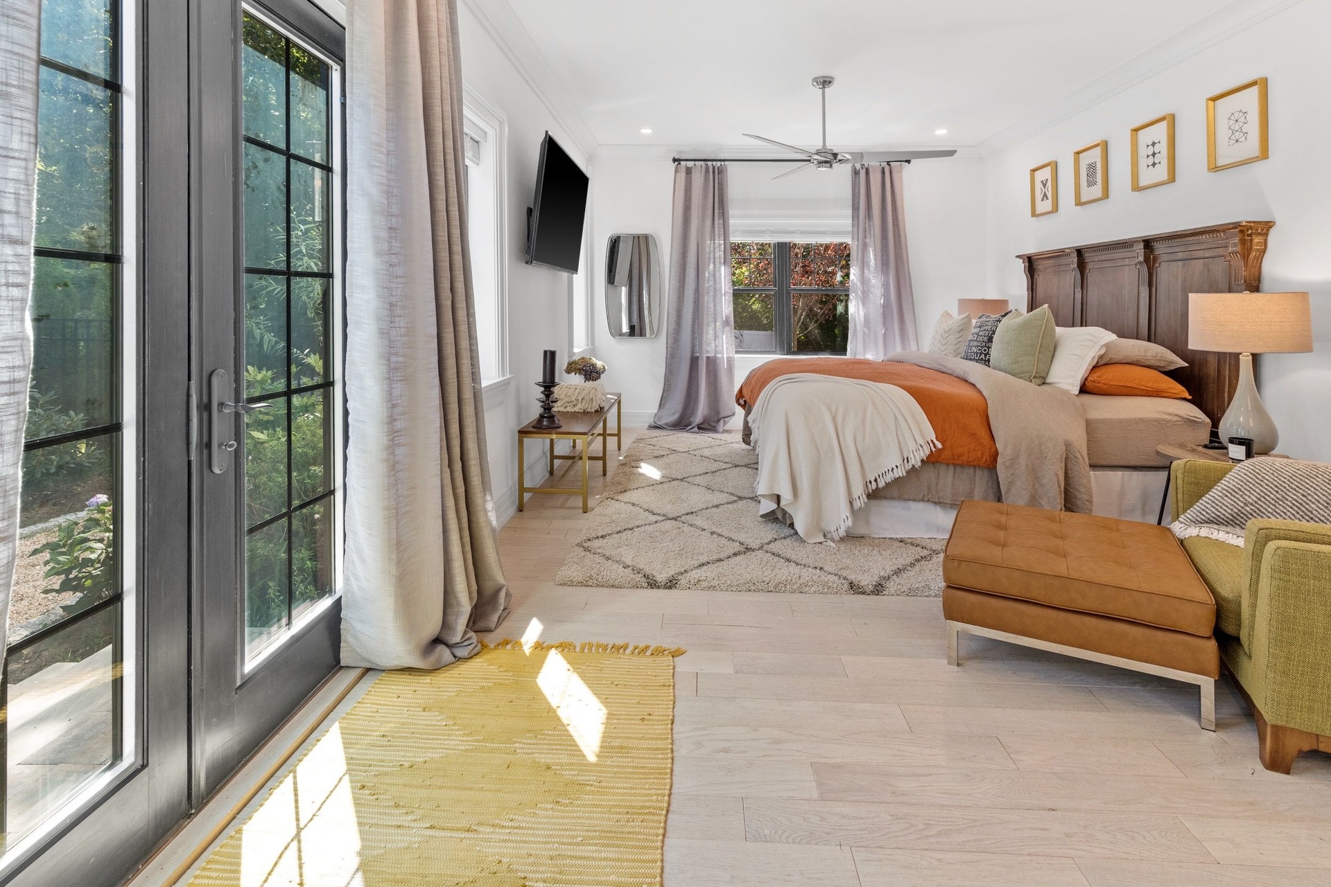 The long driveway takes you through the 1.6 acres of park like grounds, that lead to this enchanting home nicknamed "The Treehouse". Surrounded by nature, this completely renovated, three level home offers everything you will need in a Hamptons getaway. Enter the main level through the steel and glass double doors that open to a soaring double height foyer with custom woodwork throughout the walls and ceiling. The main level was deigned for entertainment so each room effortlessly flows both indoors and outdoors, offering plenty of space to gather. The living room is anchored by a commanding, custom made, gas fireplace which creates a cozy atmosphere in a space that offers plenty of room to spread out and relax. The completely open, custom kitchen comes equipped with all high-end appliances including a 48 inch built-in fridge, two dishwashers, a wine fridge, built-in microwave, two wall ovens, a plumbed Miele coffee maker, and a six burner gas cooktop. This is finished with an over 9 foot quartz waterfall island with cabinet storage on both sides. A separate formal dining, with wet bar, is directly off the kitchen for those special occasions. Finishing the main level is a guest suite, with custom closets, an en-suite bathroom, and a private courtyard. On the second level, you'll find the primary suite, which is the entire left wing of the home. It includes another custom built gas fireplace, two custom closets, an en-suite bathroom featuring a soaking tub, double vanity, and a double walk-in shower. This suite also includes a private deck that overlooks the treetops, with views of Peconic Bay that are perfect for the most beautiful sunsets. The right wing includes two guest bedrooms, a full bathroom with walk-in shower and soaking tub, and a laundry room with two washers and dryers. Down the staircase to the lower level you'll enter the full bar which features another quartz island, bar fridge, wine fridge, and ice maker. Off the bar, you can enter the 4 car garage that also includes a giant storage room. Off the other side of the bar, you'll find the media room and the gym, which includes another full bathroom. The best part of the house waits for you outside where you'll find the gunite salt water pool with built-in spa. Decks wrap around two sides of the house and overlook the grounds, are perfect for outdoor dining or for lounging around in the morning. All of this is surrounded by Cold Spring Pond where you can enjoy swimming, water sports, and shellfishing, steps from your front door. Located just minutes from Southampton Village, restaurants, and award winning beaches.