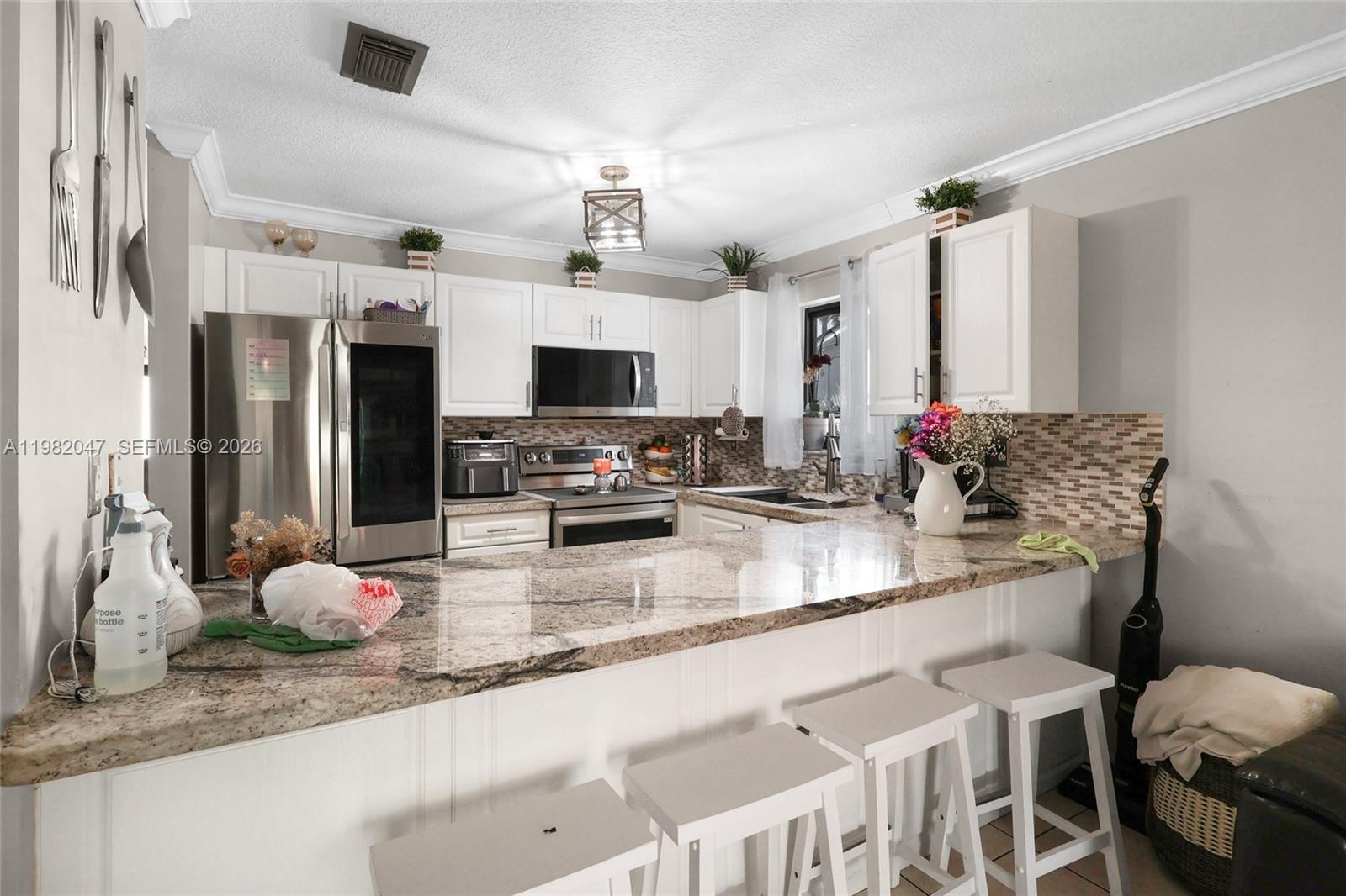 Beautiful 4-bedroom, 2-bathroom single-family home featuring bright and spacious living areas with a functional open layout. The updated kitchen offers granite countertops, stainless steel appliances, ample cabinetry, and a convenient breakfast bar overlooking the main living and dining areas, perfect for entertaining.