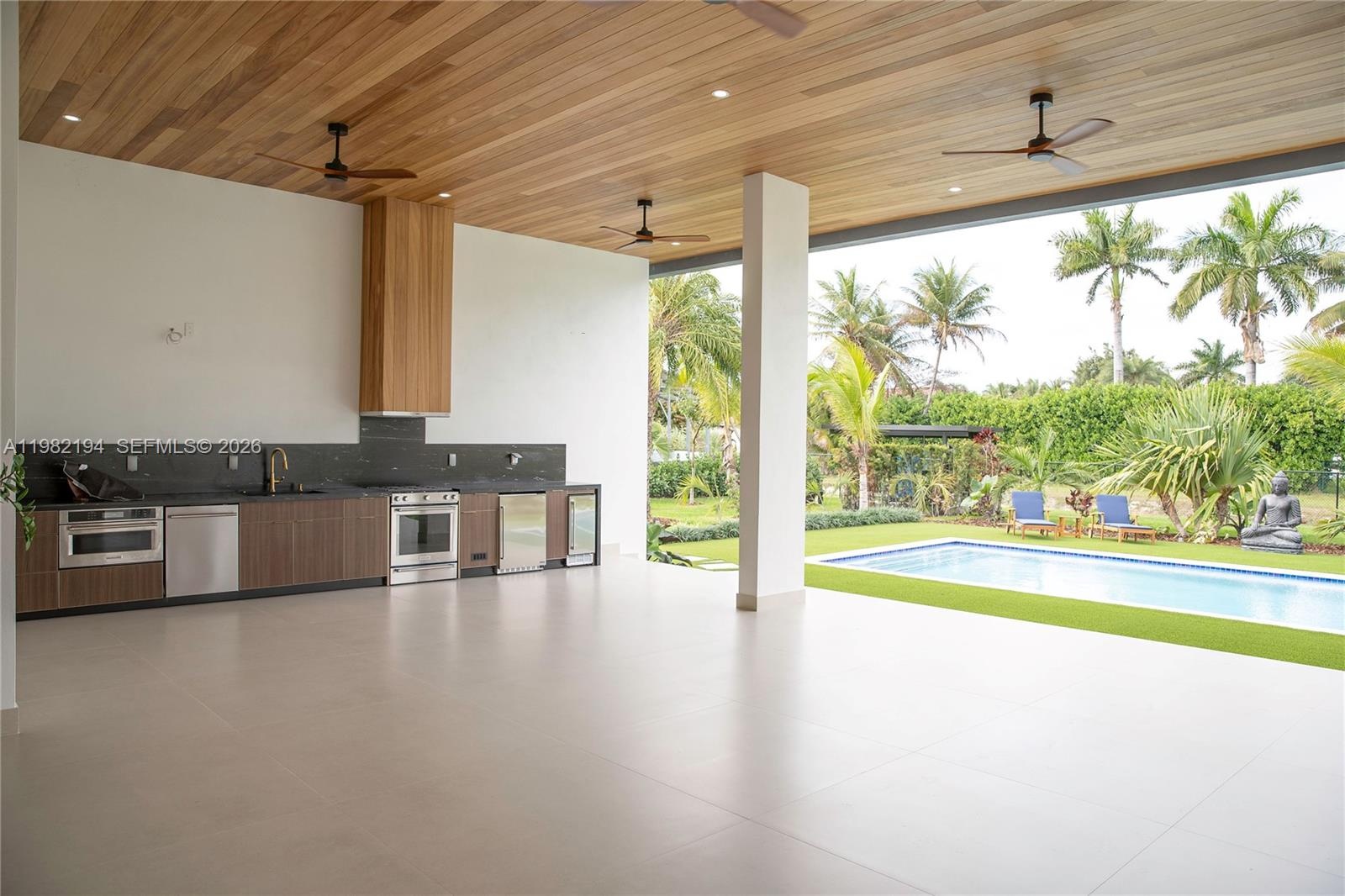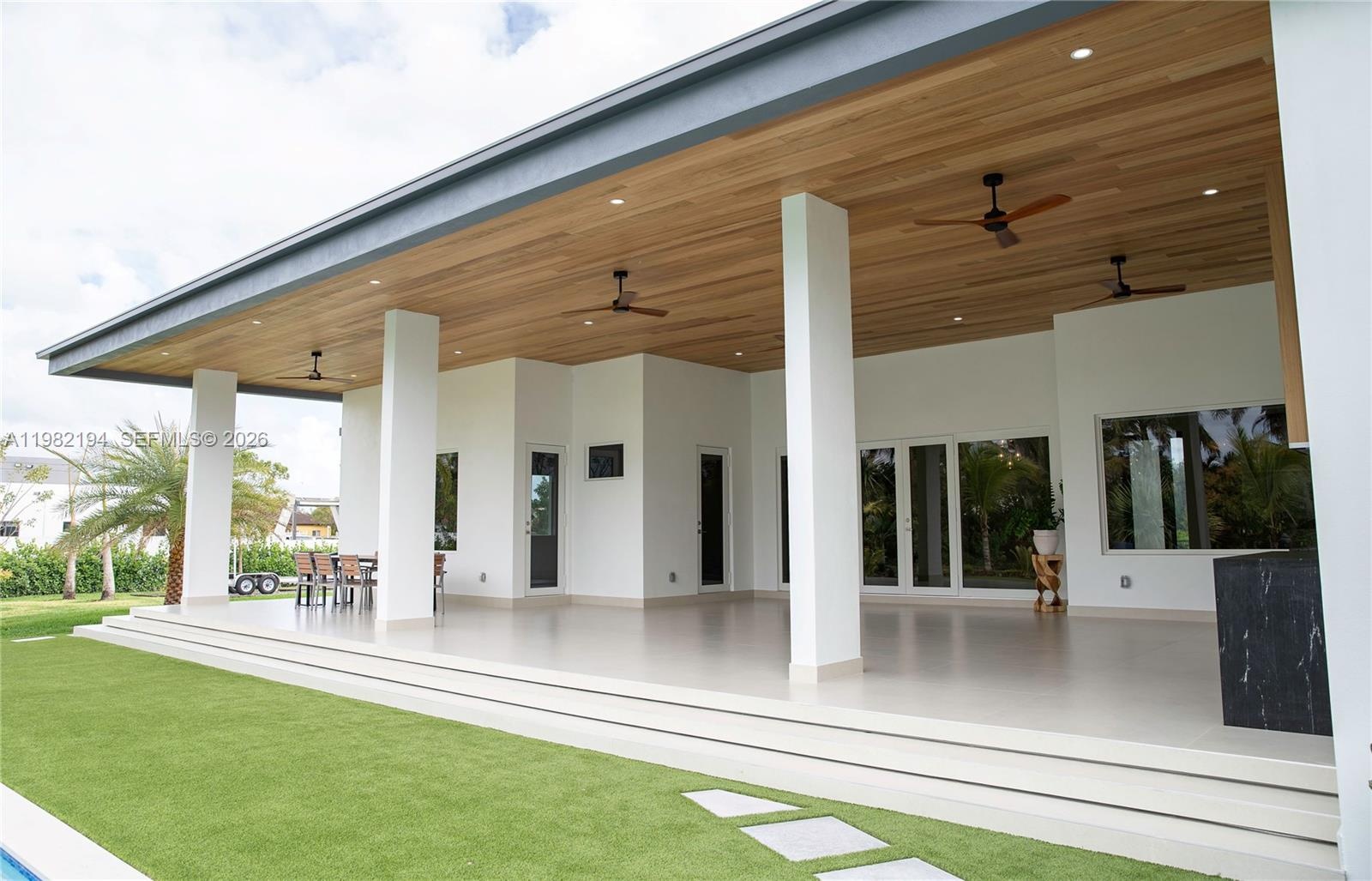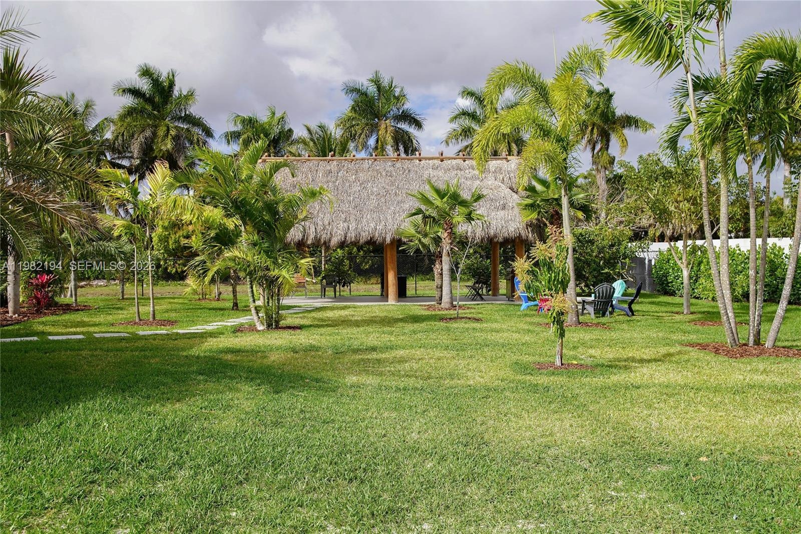 Made your dream home come true with your NEW CONSTRUCTION Modern Architectural design with 6,400 sq ft building and 1.05 ACRE LOT, generating spaces full Harmony located in the quietest and nice area. This house has 5 bedrooms/ 5 bathroom spa-style with two-person shower, Den-office room, luxury Kitchen with coffee station, open-concept living and dining room, laundry room with sink and built-ins, CONCRETE ROOF AND HIGH ELAVATION that help insurance premium, open carport, 2 car garage with 725 sq ft including storage room, PLUS 4,000 SQ FT CONCRETE DRIVE-WAY Outdoor amenities include a pool, covered terrace with 1,200 sq ft, FULL outdoor kitchen equipped with all you need dishwasher/microwave and other, gazebo to relax perfect to enjoy tropical view with your fruits gardens with sprinkler system, custom made fire place. Full fence with rear canal. Enough space for your Boat, Rv or any others.